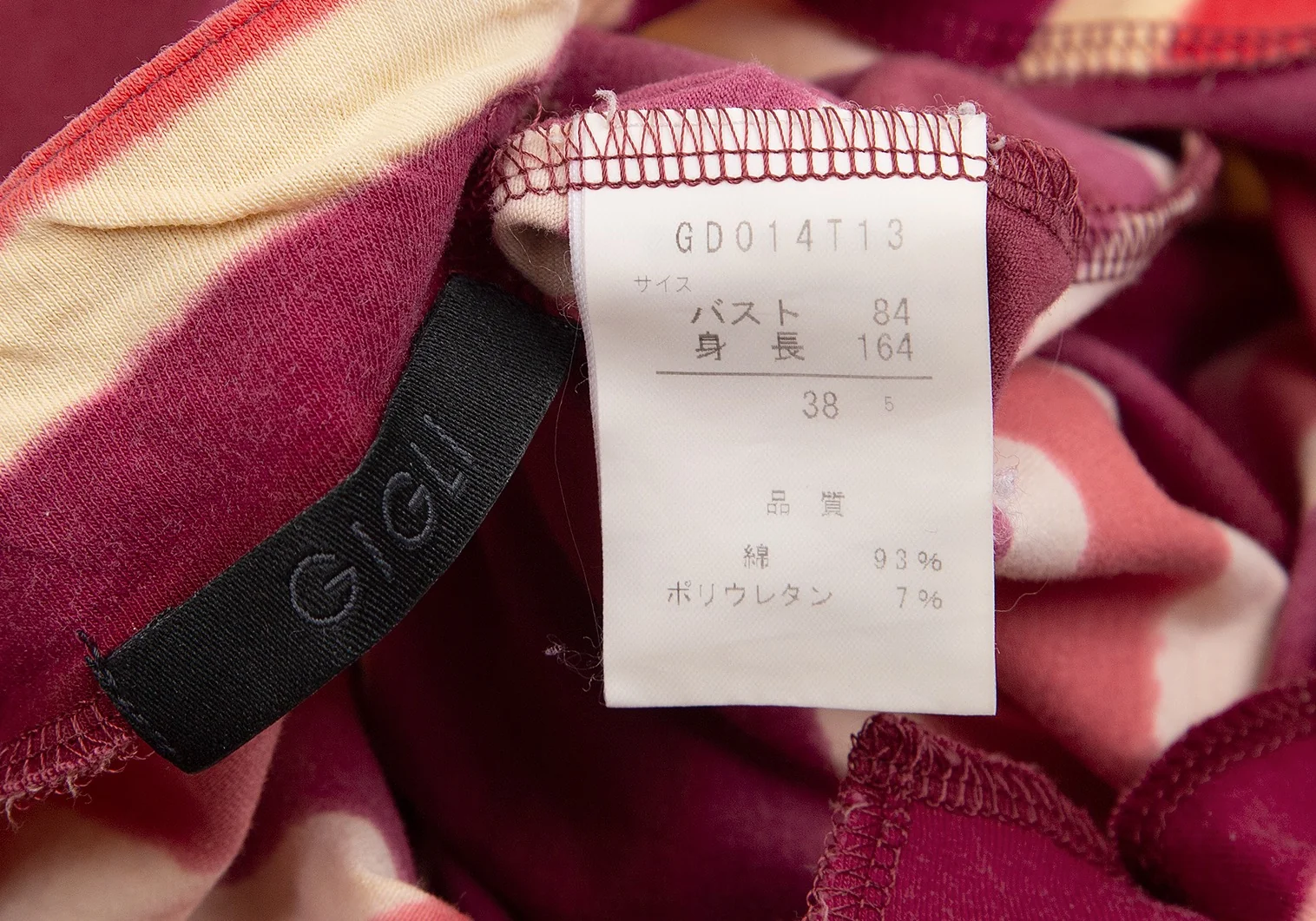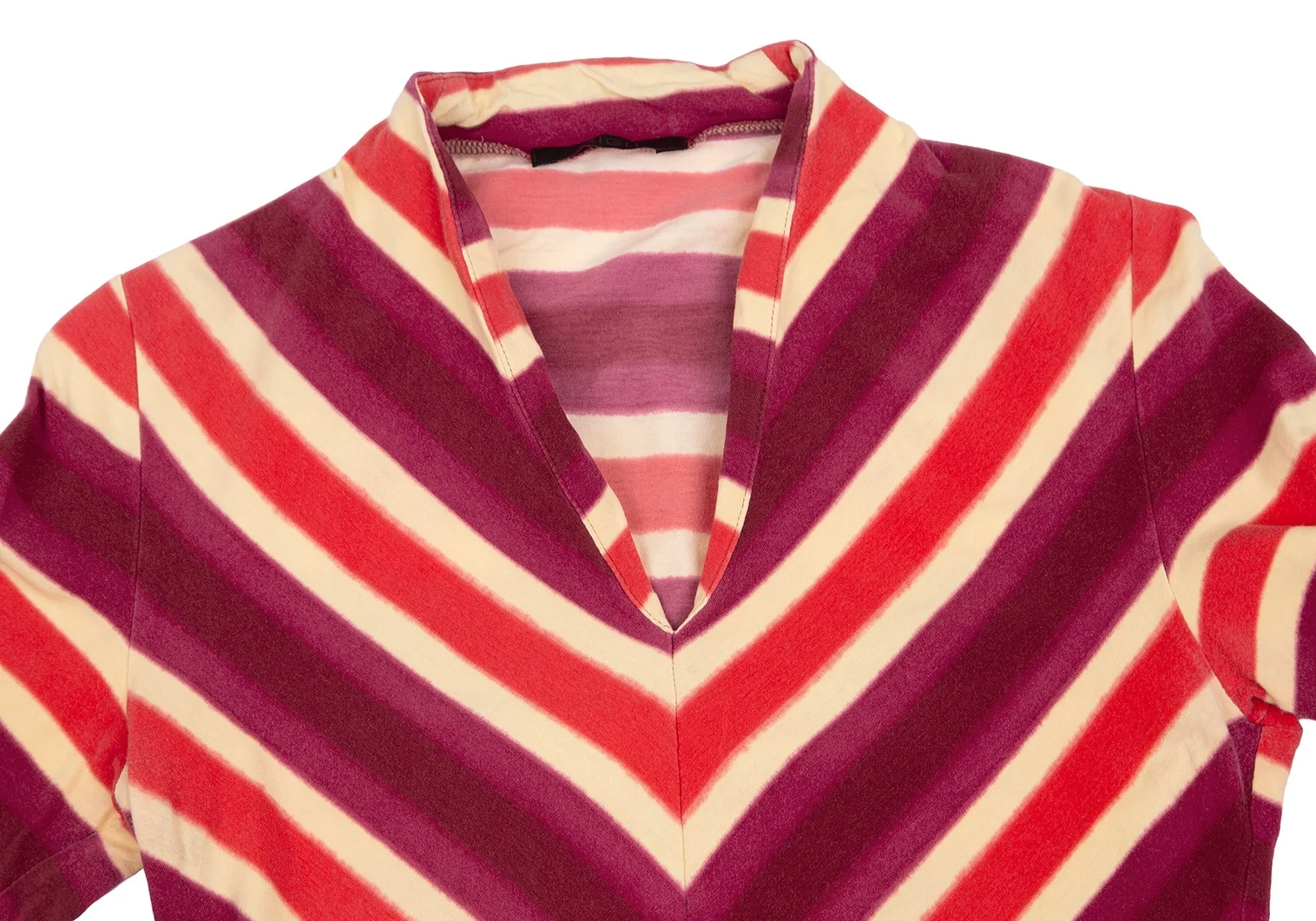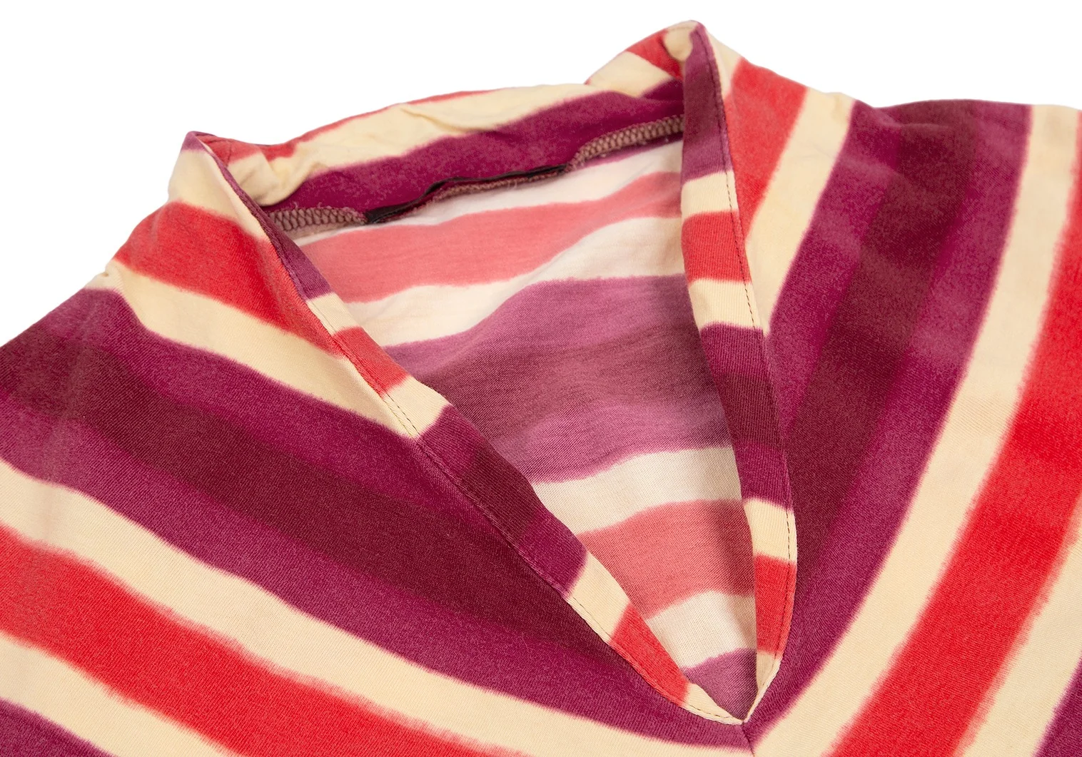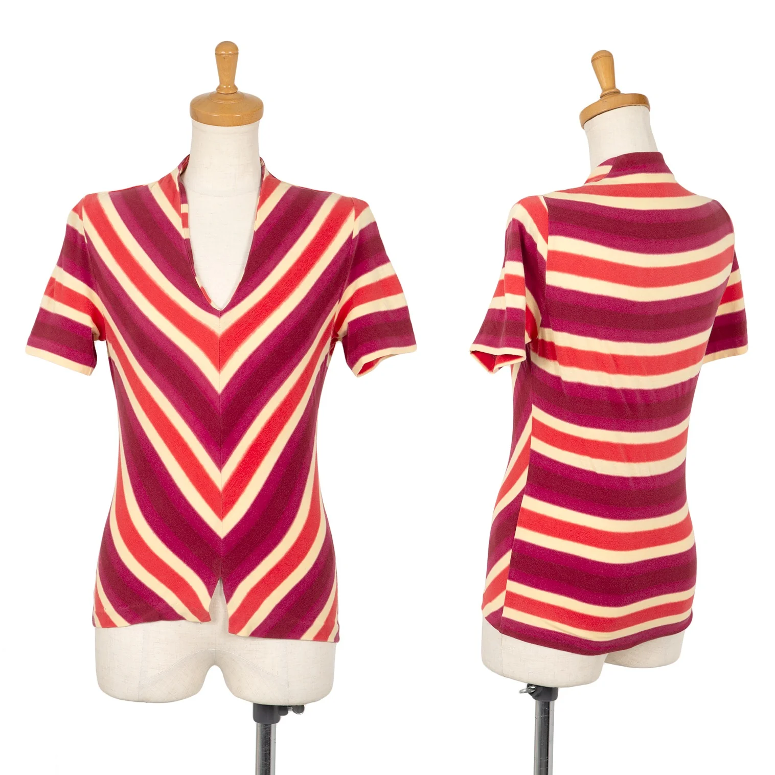 ジジリgigli Vネック前スリットストライプストレッチ半袖カットソー 紫クリーム赤38