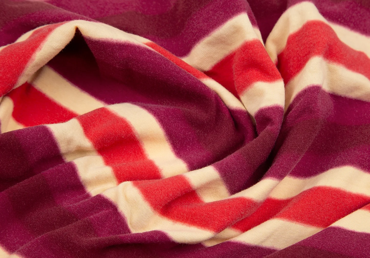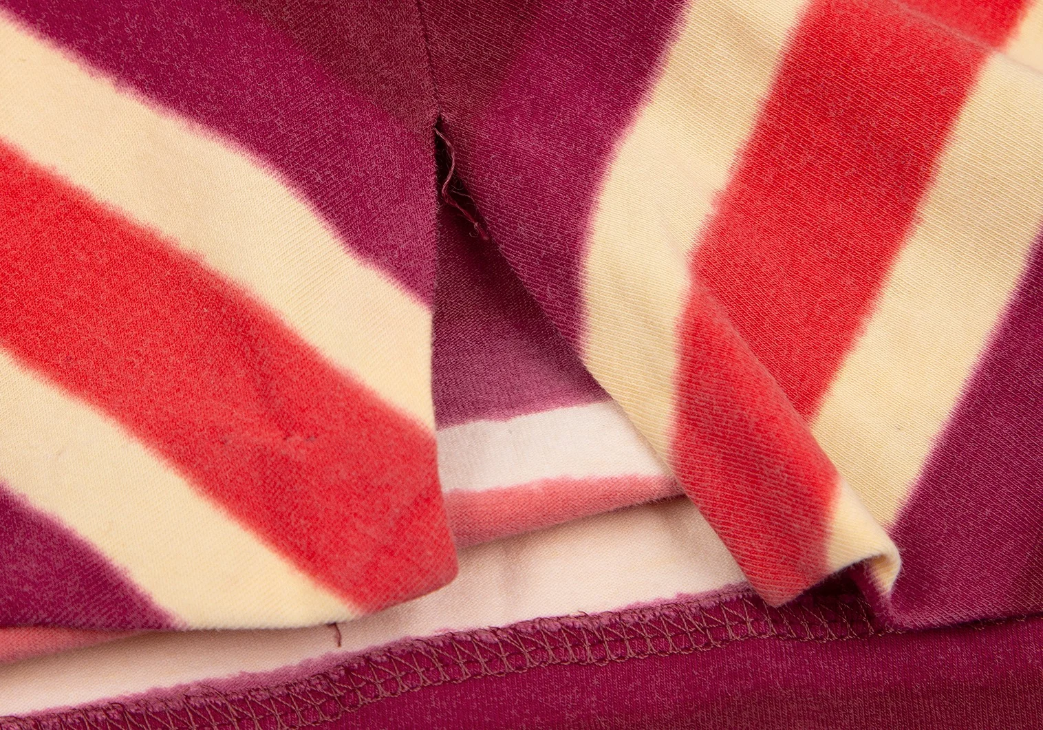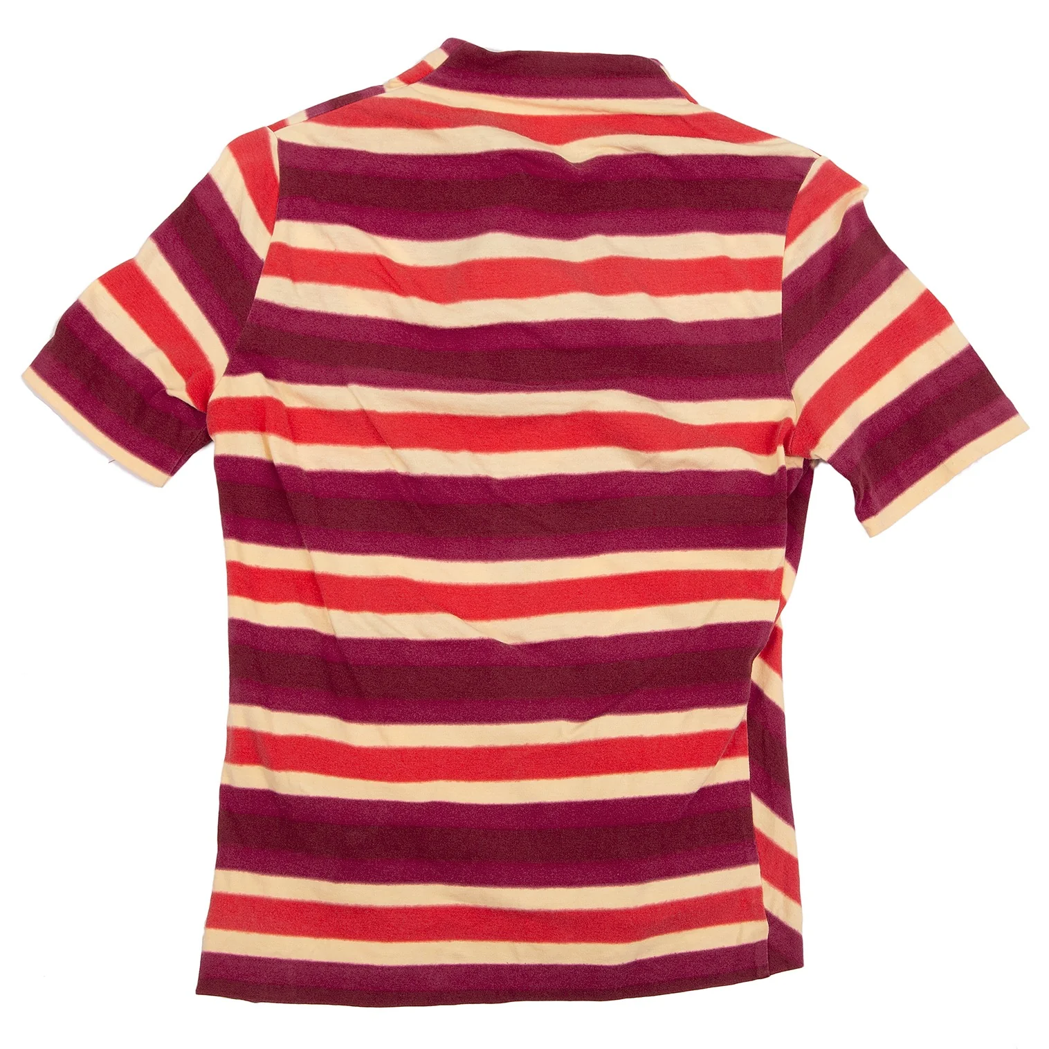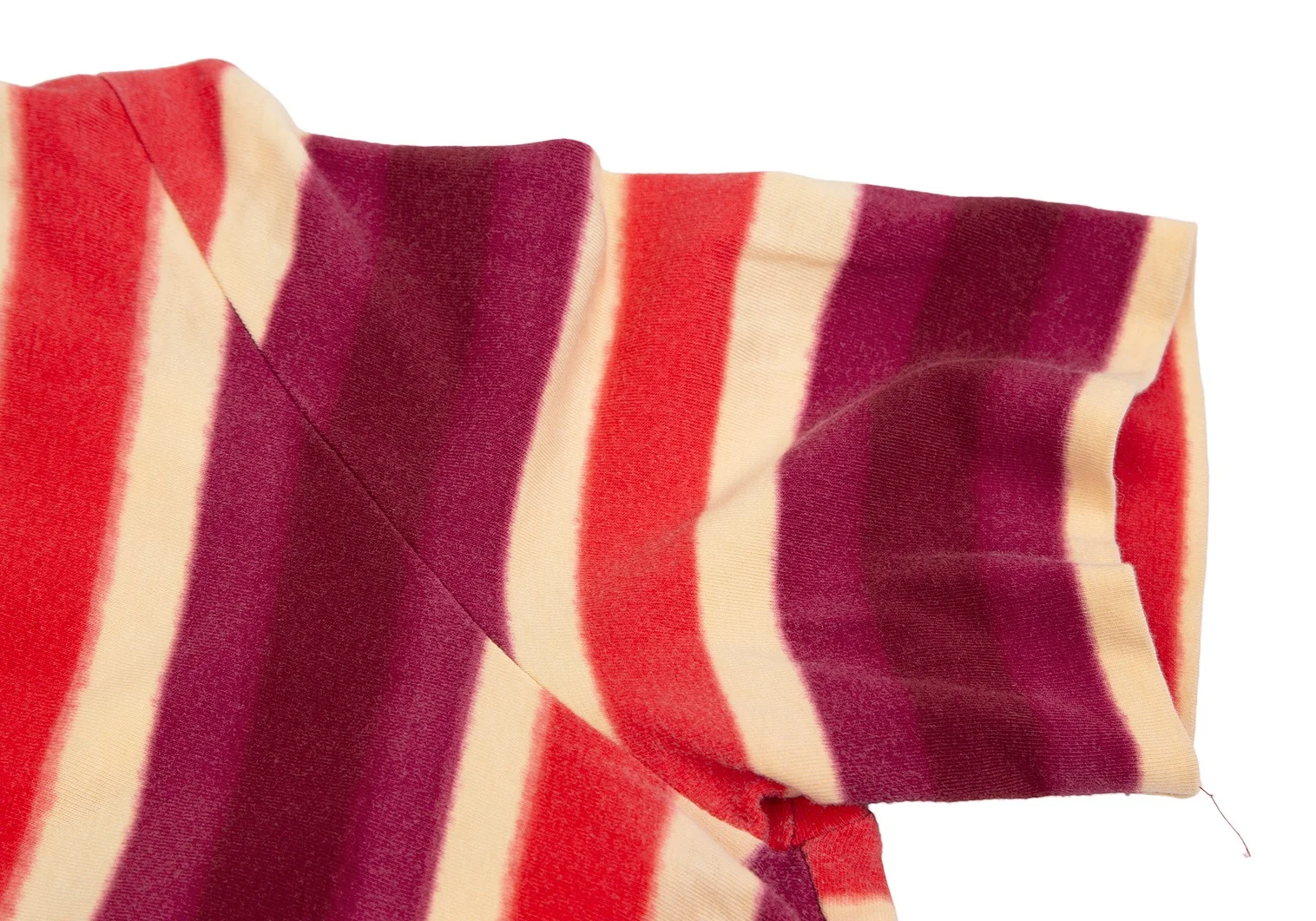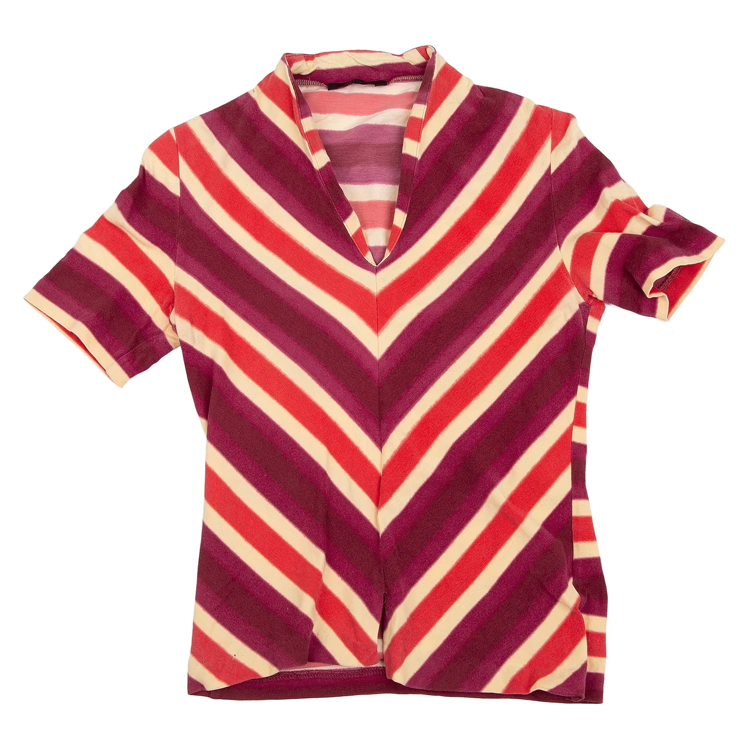 ジジリgigli Vネック前スリットストライプストレッチ半袖カットソー 紫クリーム赤38