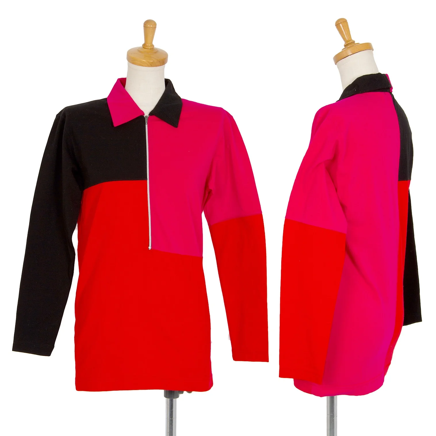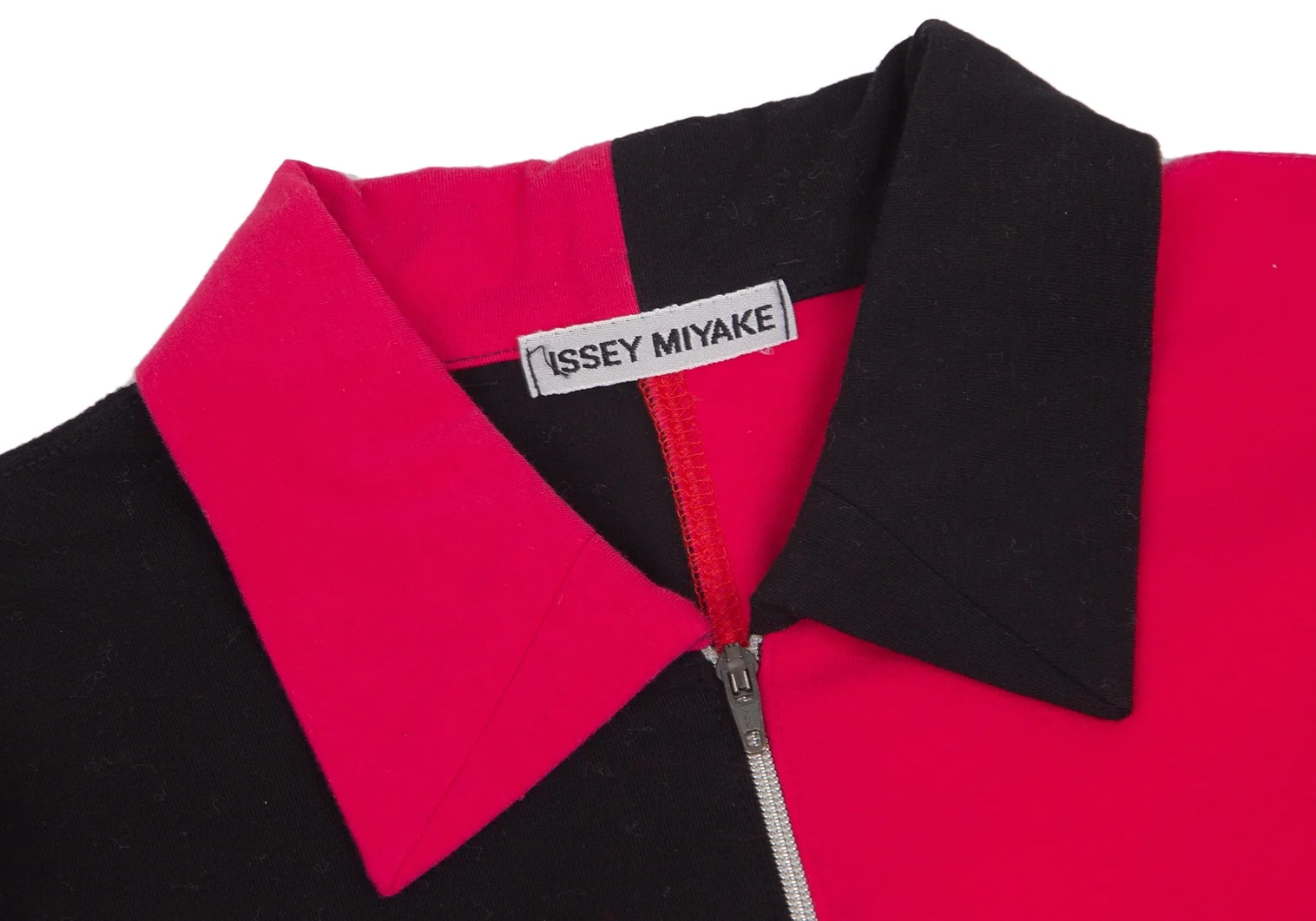 イッセイミヤケISSEY MIYAKE パッチワークハーフジップストレッチポロシャツ 黒赤ピンクM位