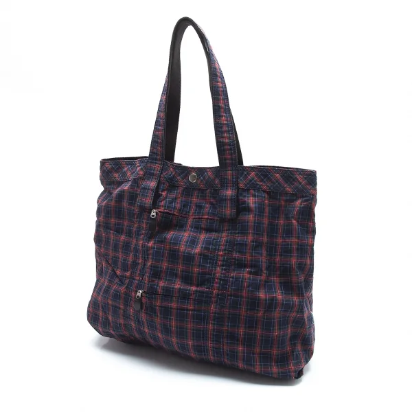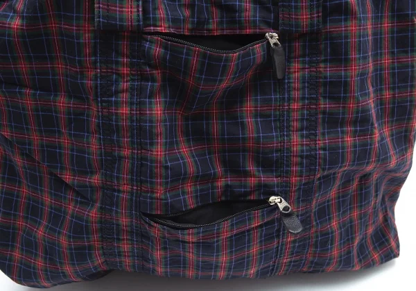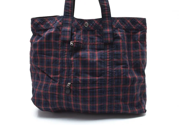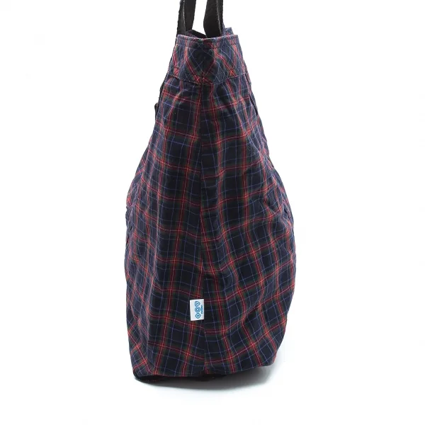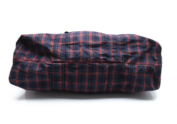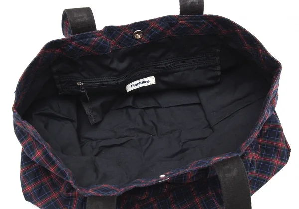 プランテーションPlantation ハンドルロゴマドラスチェックトートバッグ 青赤