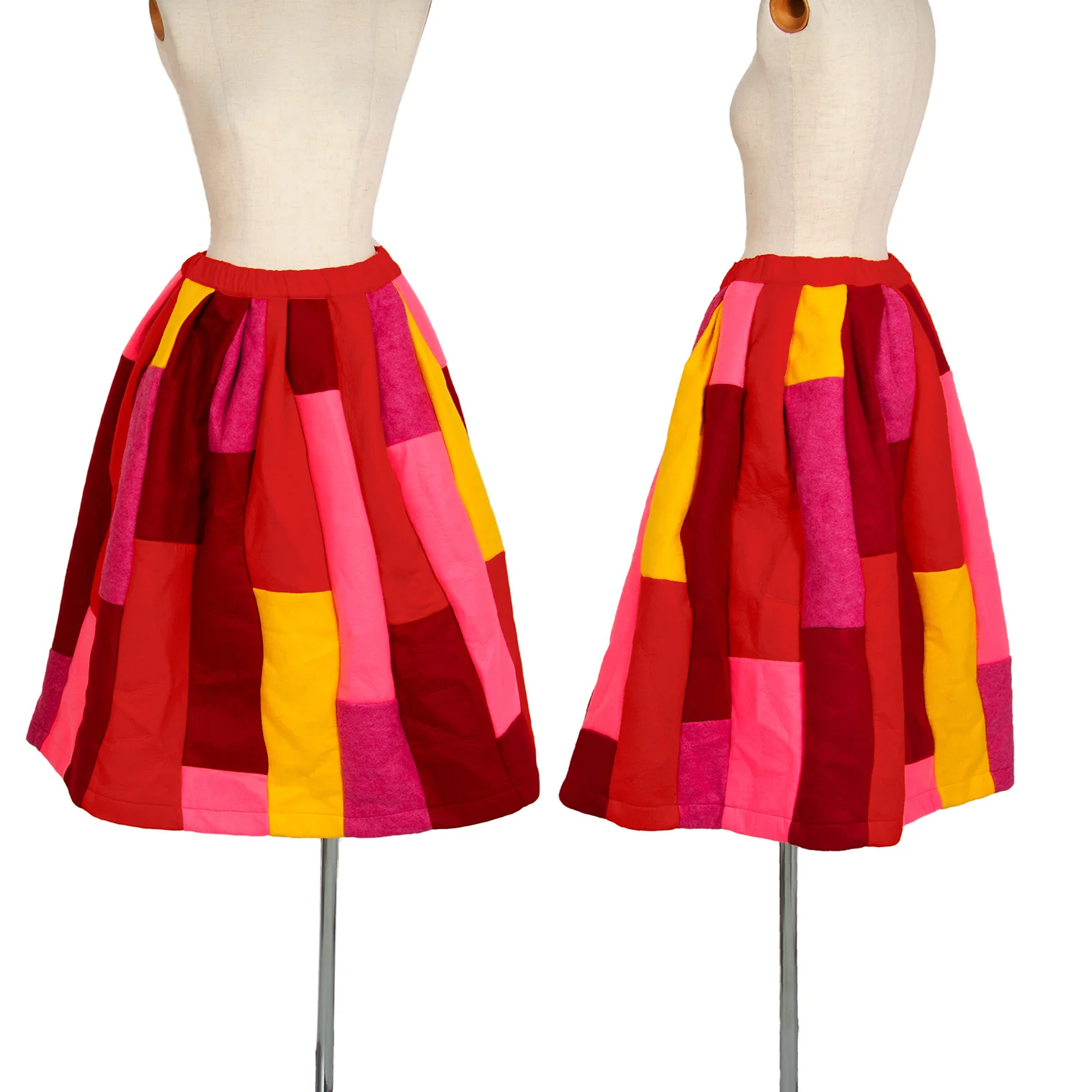 新品!コムコム コムデギャルソンCOMME des GARCONS フェルトパッチワーク切替スカート マルチXS