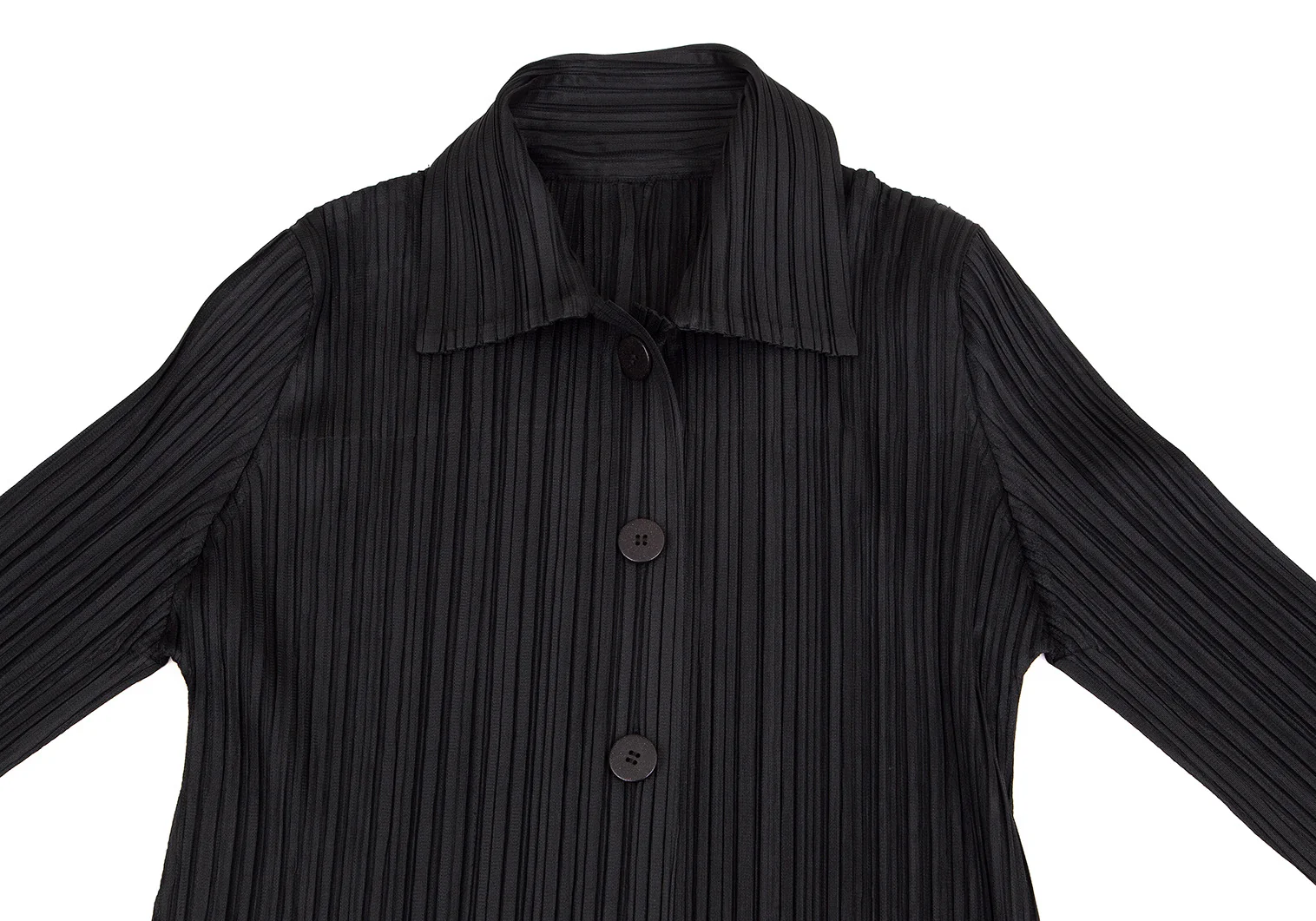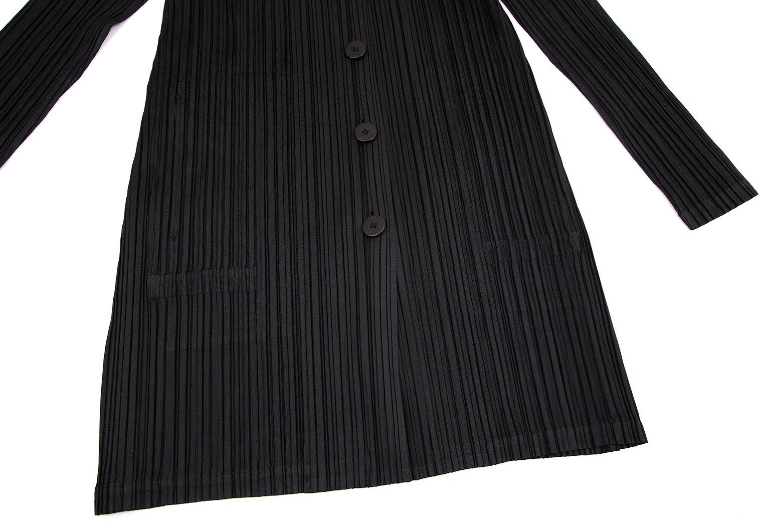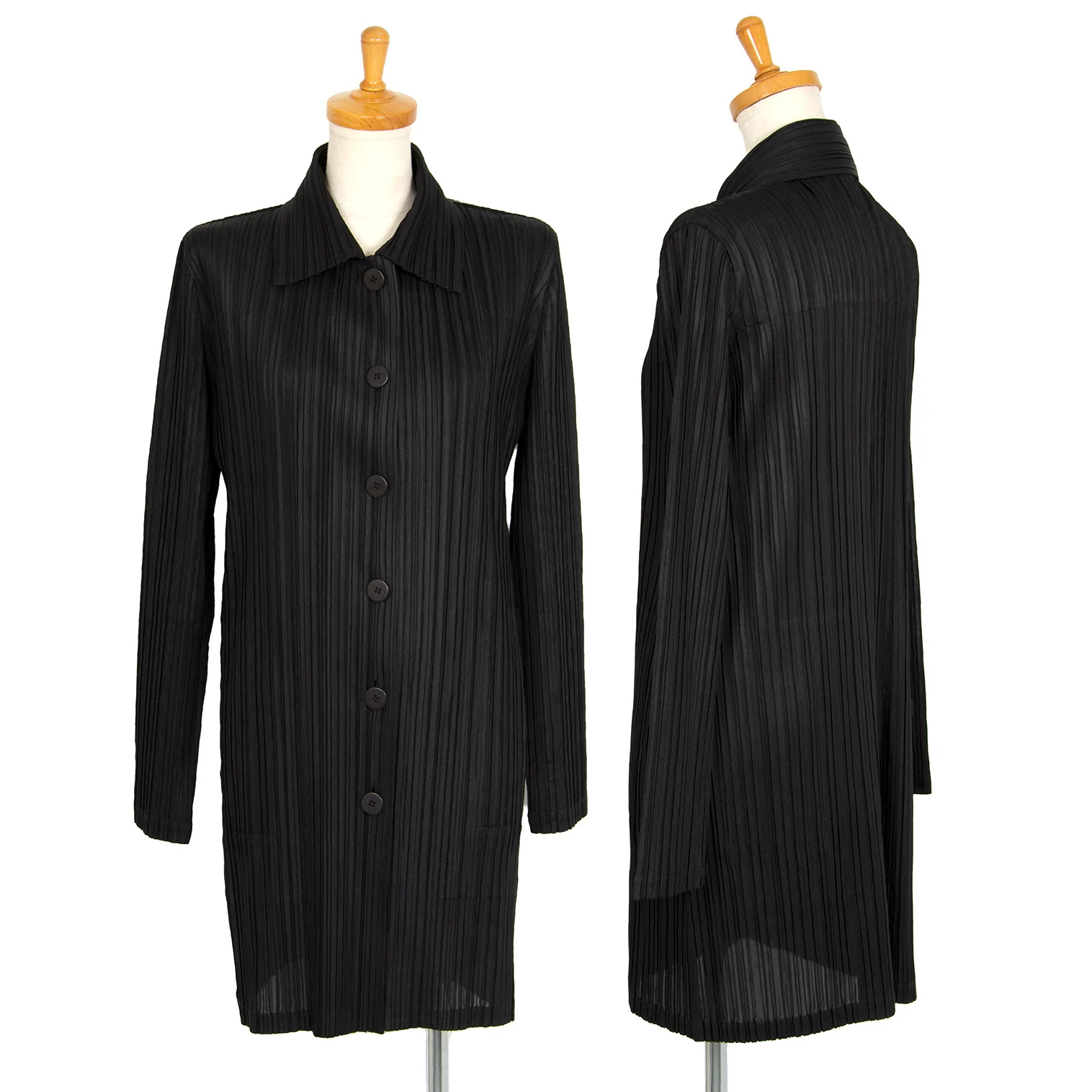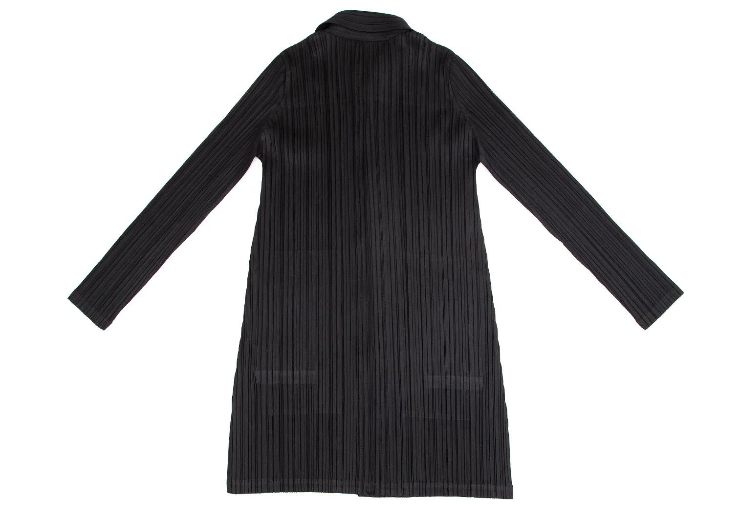 プリーツプリーズPLEATS PLEASE プリーツ6Bステンカラーコート 黒M位