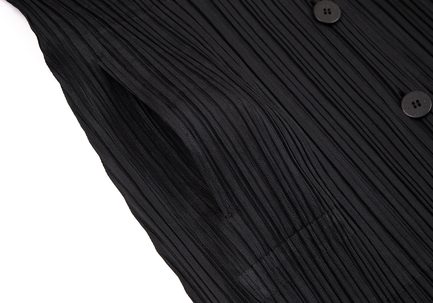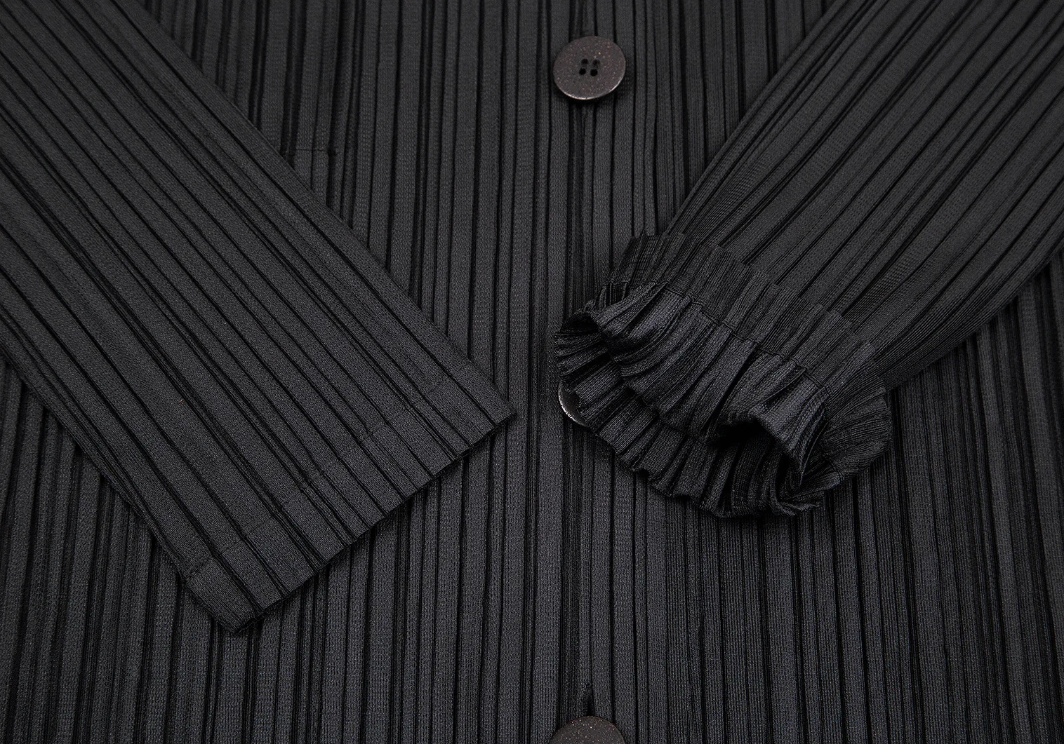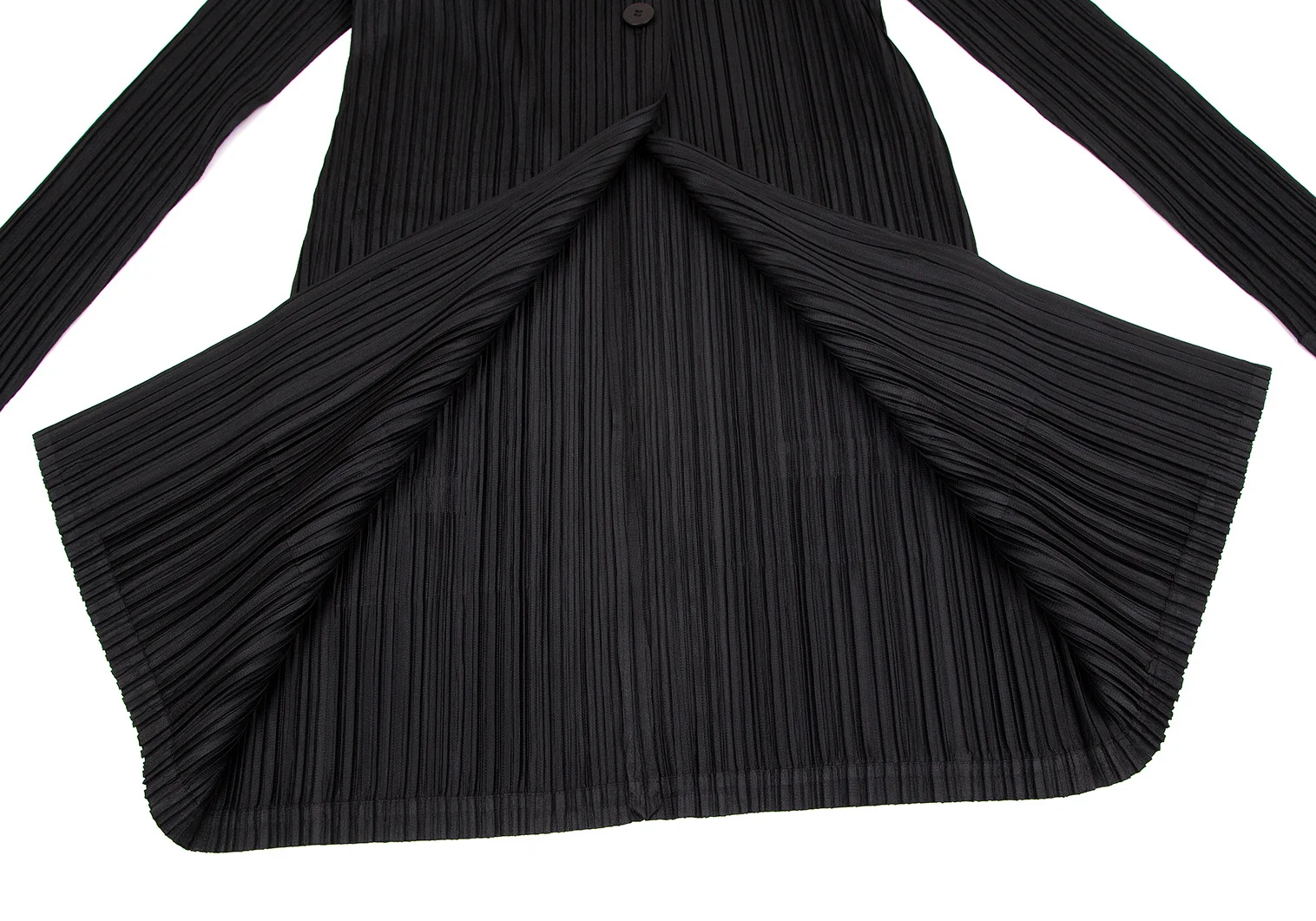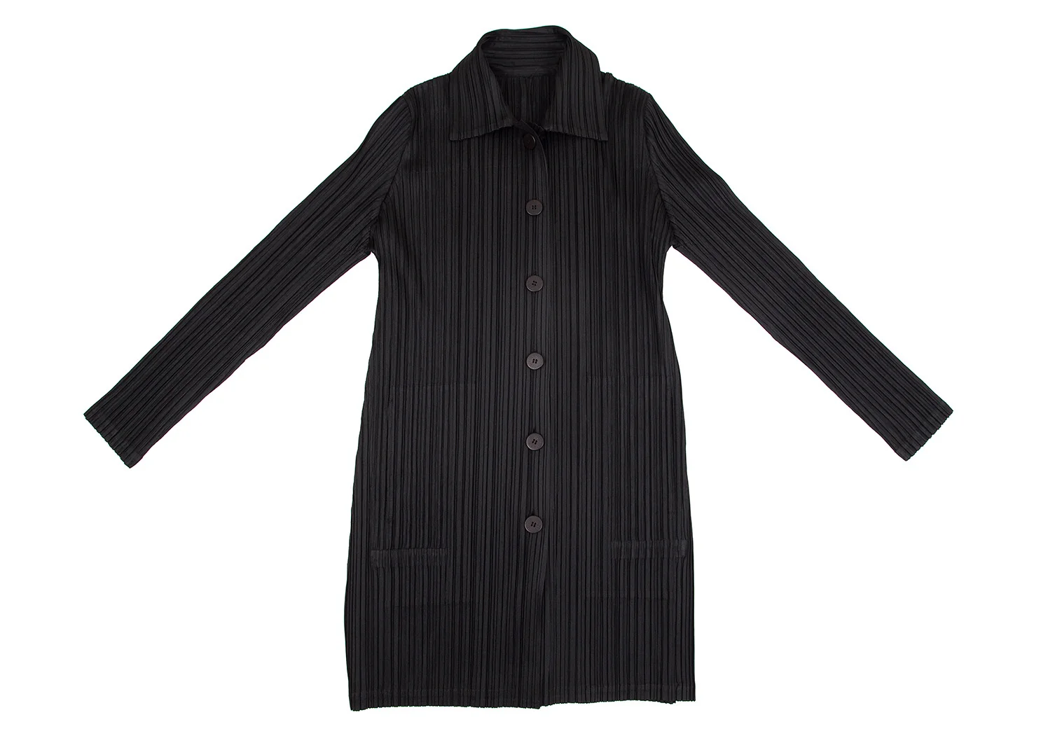 プリーツプリーズPLEATS PLEASE プリーツ6Bステンカラーコート 黒M位