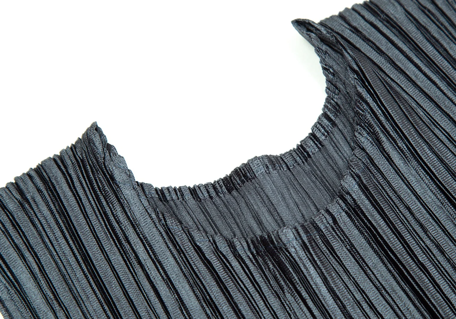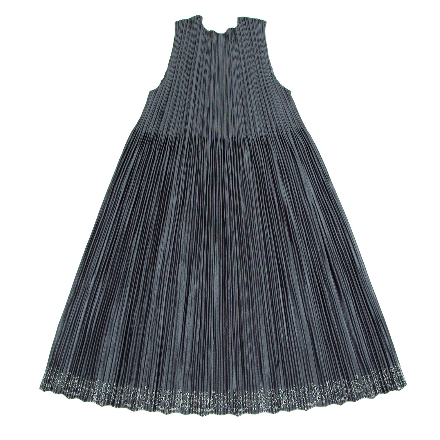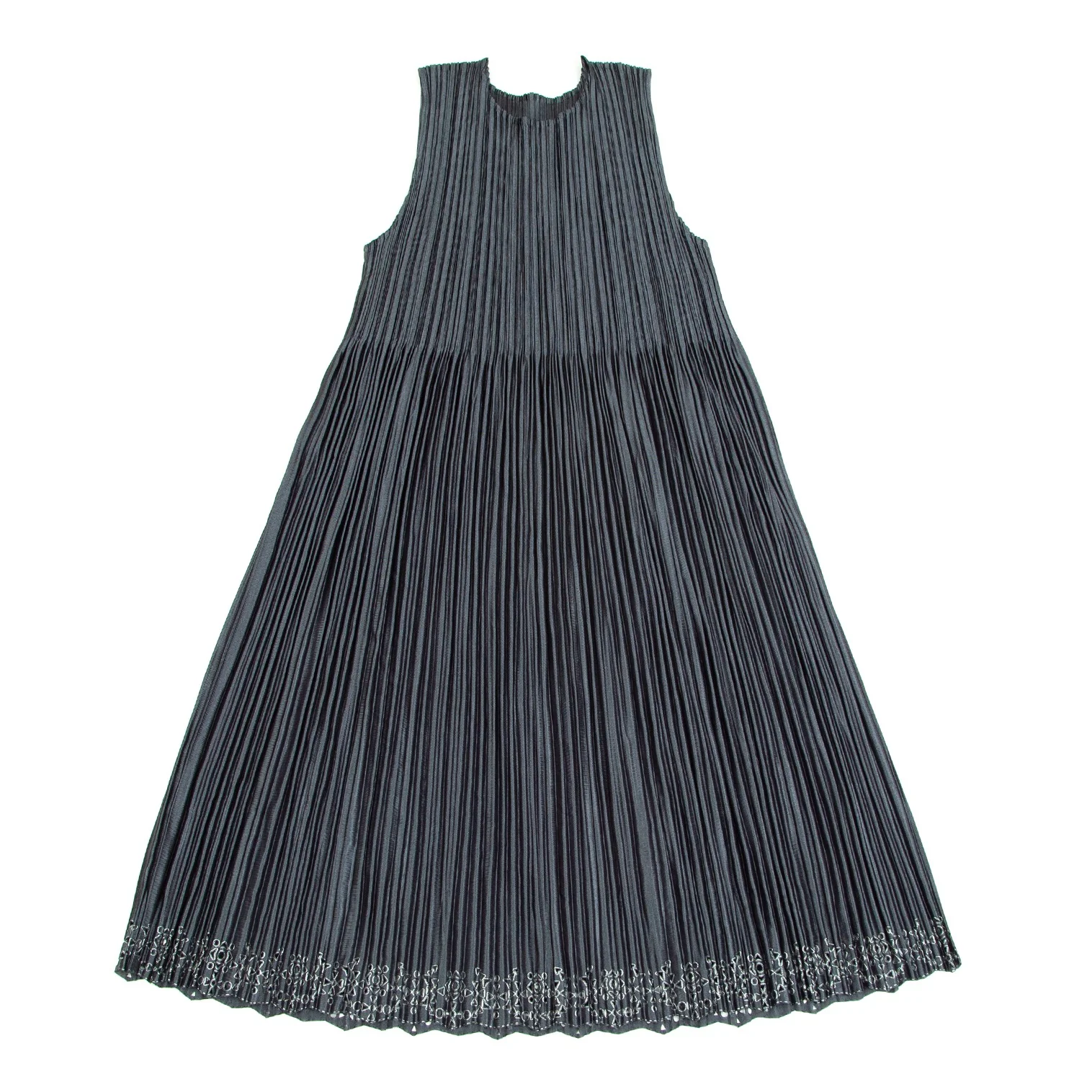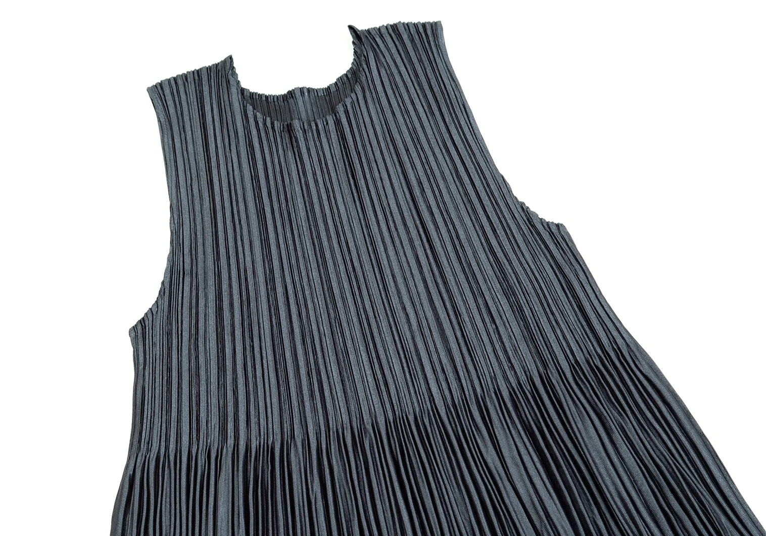 プリーツプリーズPLEATS PLEASE ウエスト切替シャイニーワンピース ネイビーM位