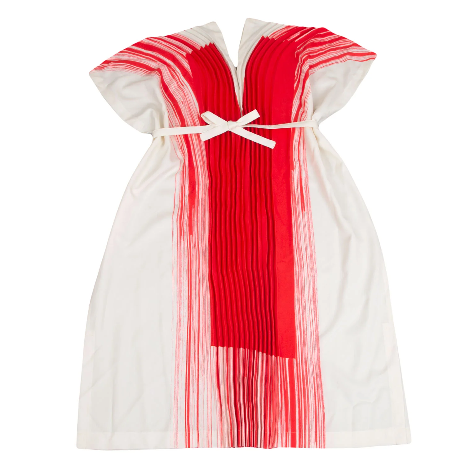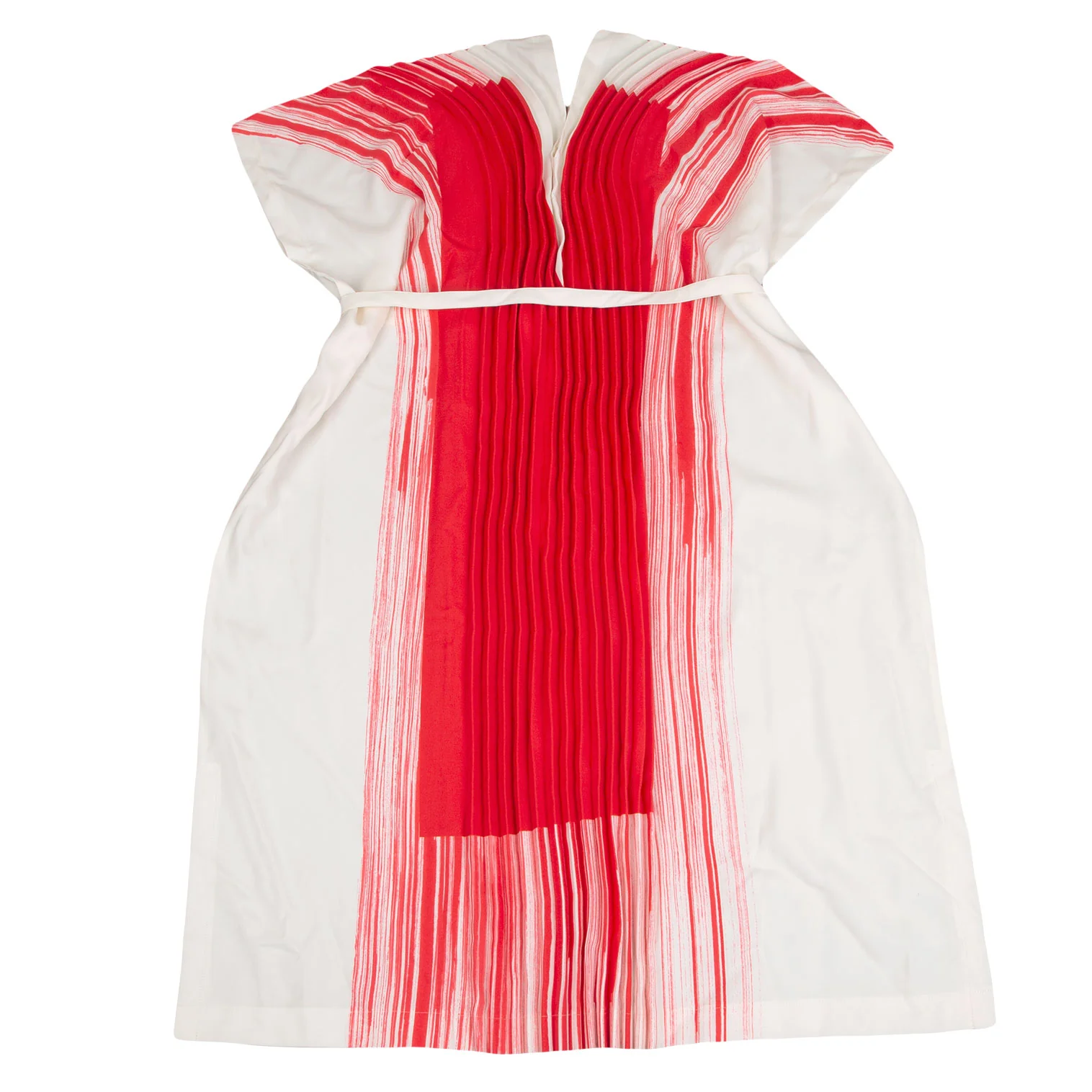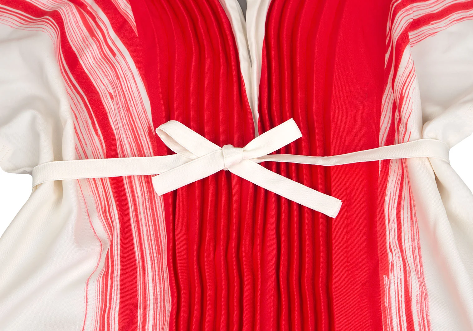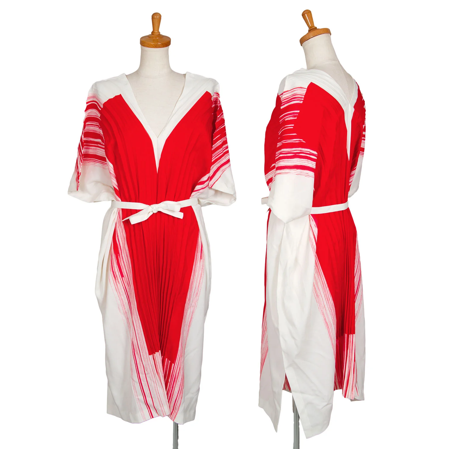 イッセイミヤケISSEY MIYAKE 132 5. ペイントプリーツVネックワンピース 白赤M位