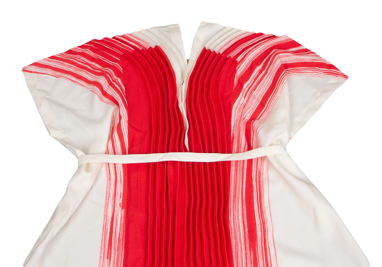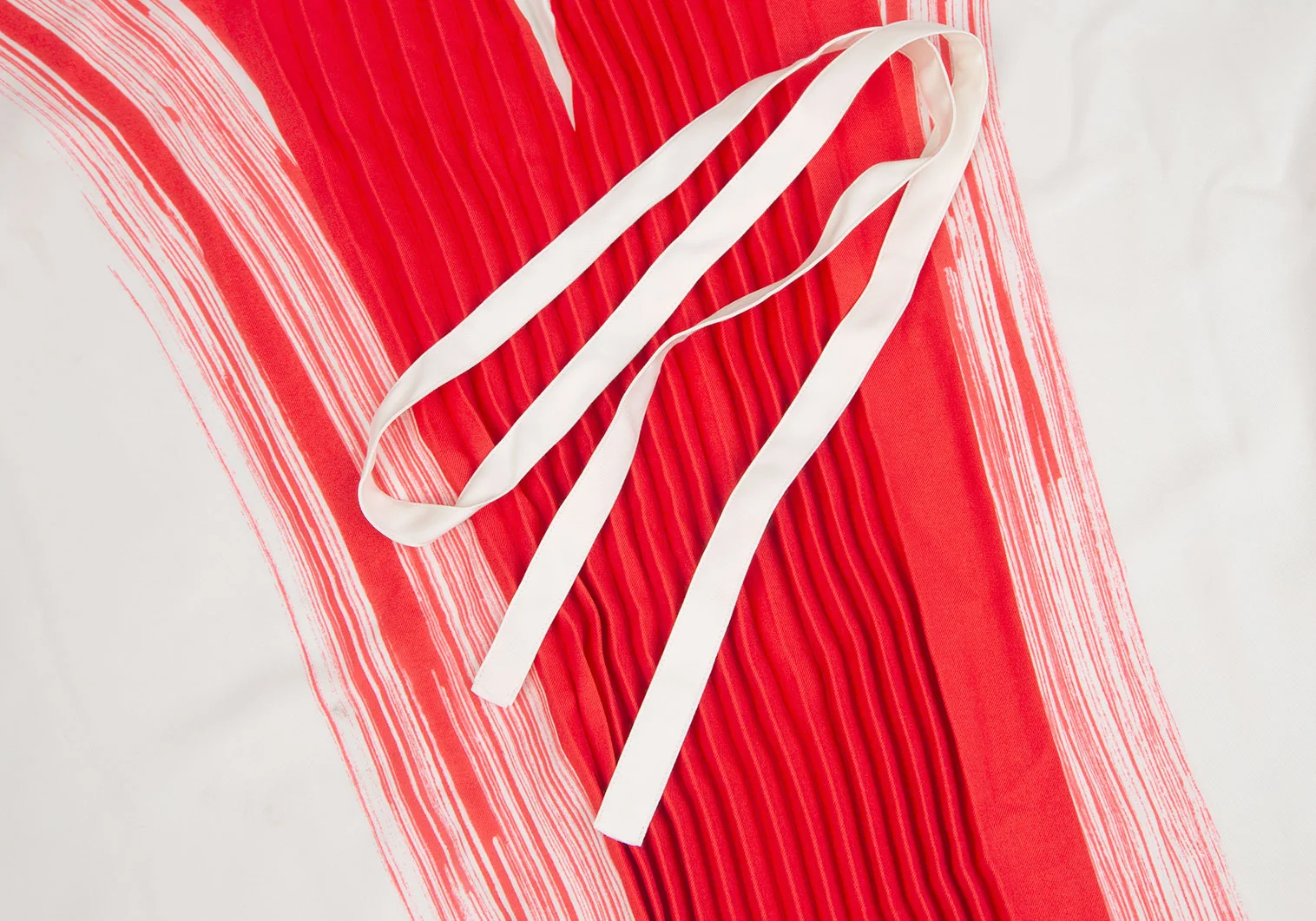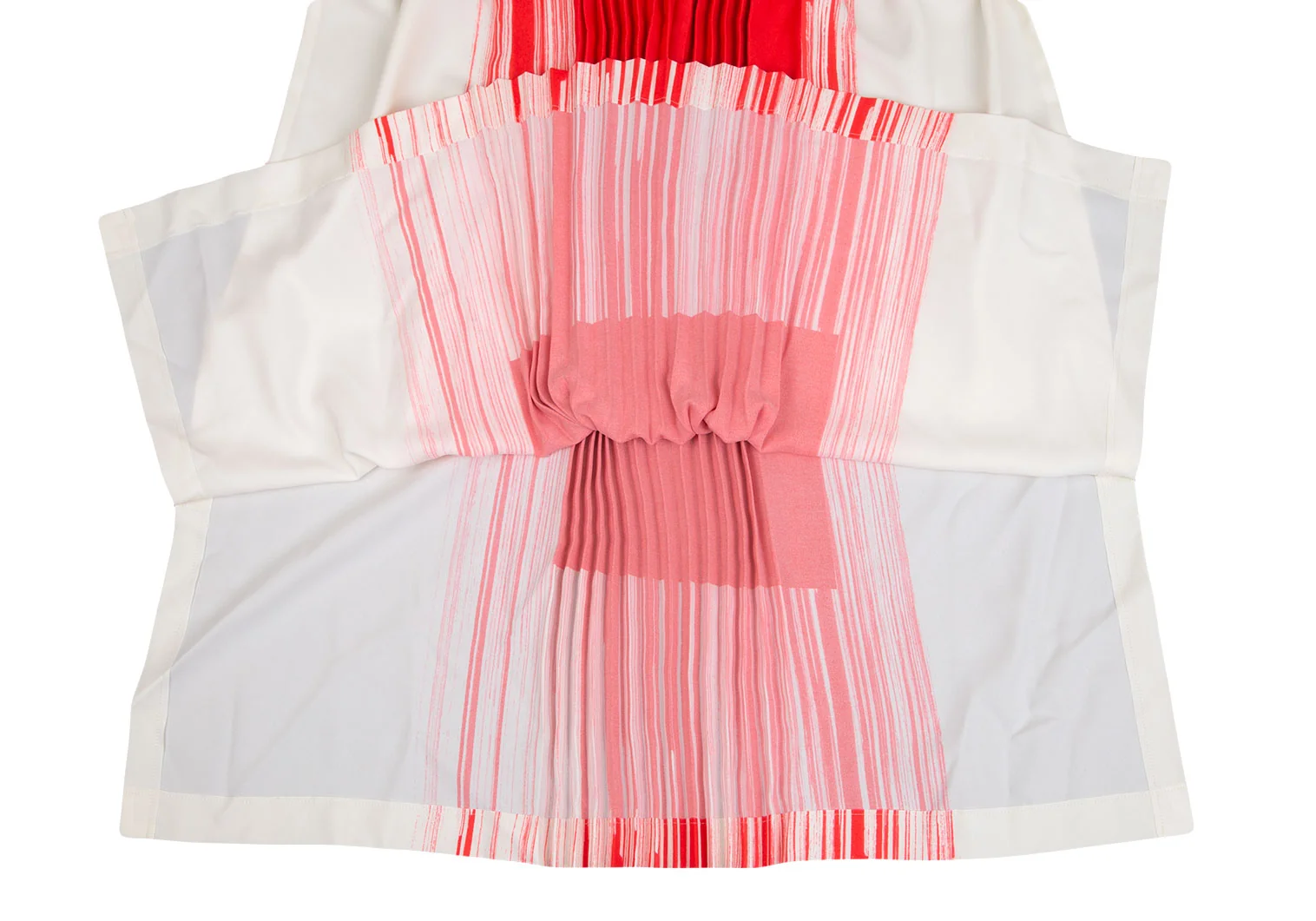 イッセイミヤケISSEY MIYAKE 132 5. ペイントプリーツVネックワンピース 白赤M位