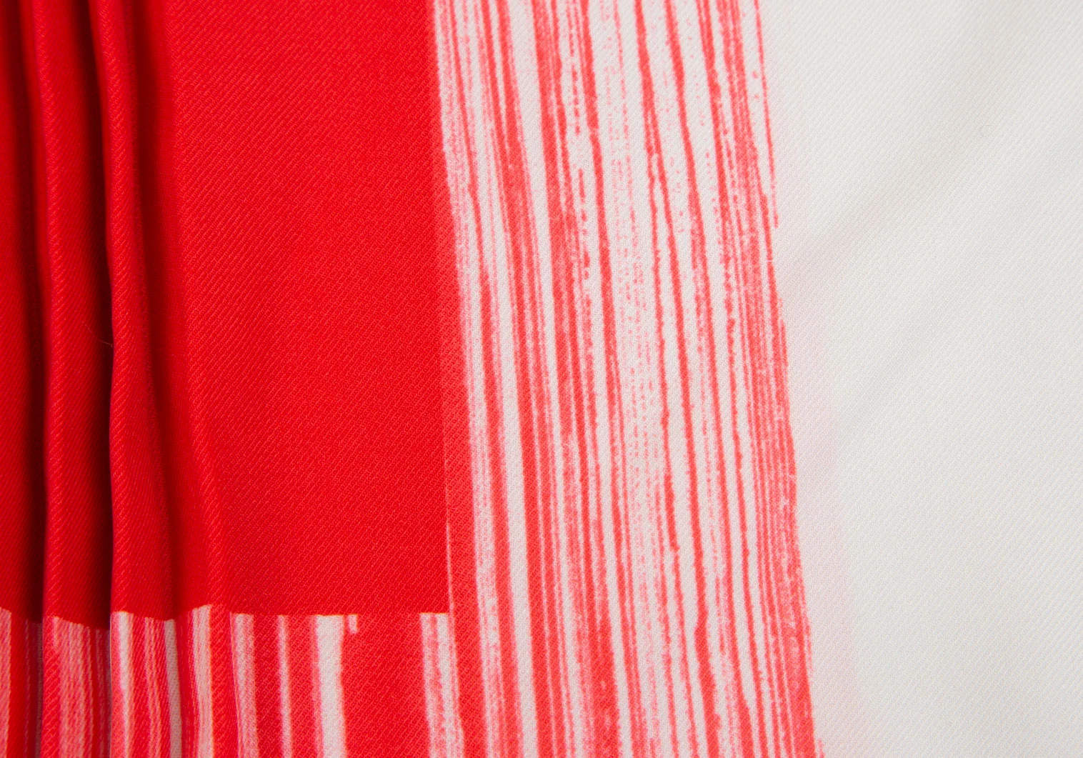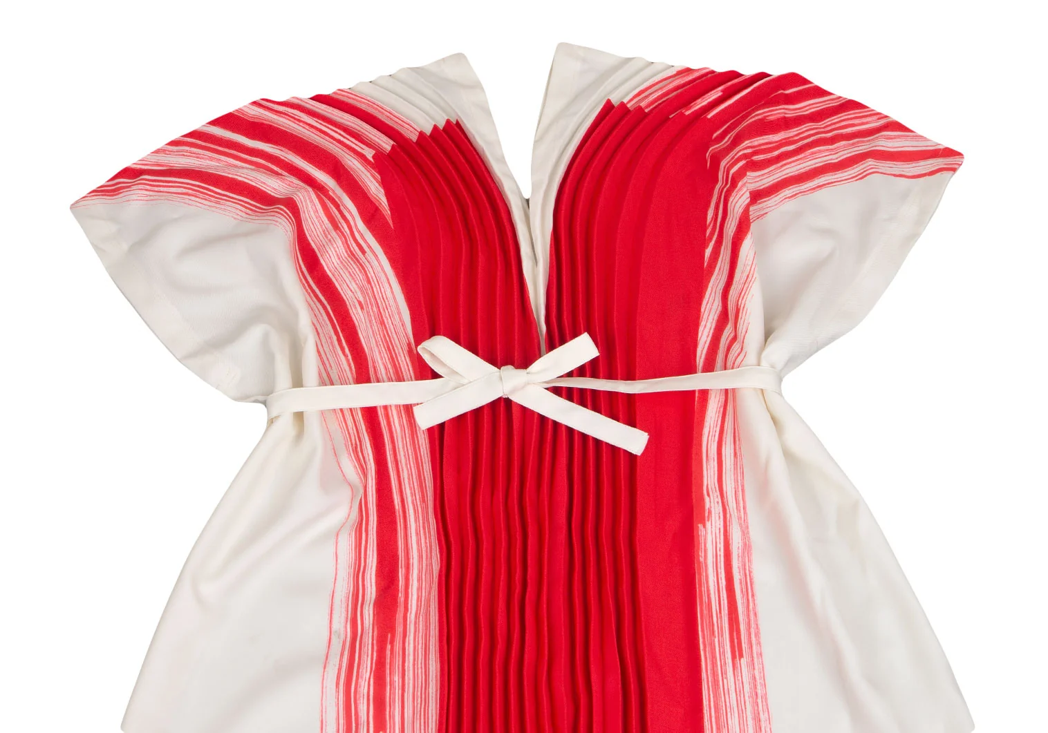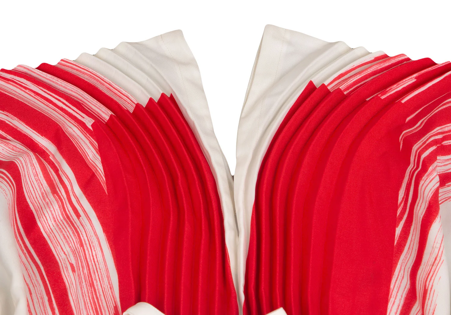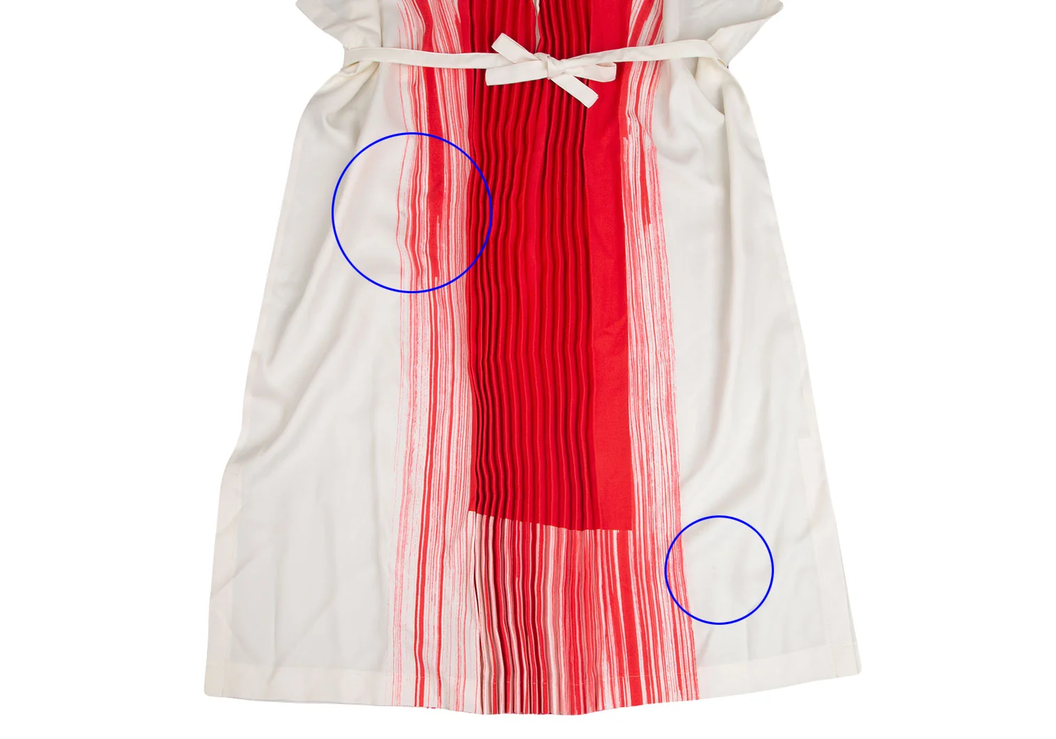 イッセイミヤケISSEY MIYAKE 132 5. ペイントプリーツVネックワンピース 白赤M位