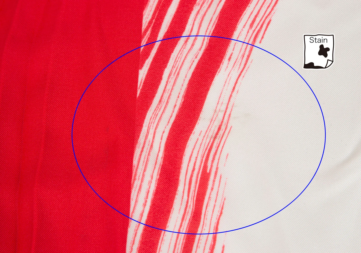ブランドタグ・品質表示タグがありません。若干の透け感があります。身頃・裾に薄汚れがあります(写真参照)。その他に目立ったシミ、汚れ、ほつれ等ありません。クリーニング済み