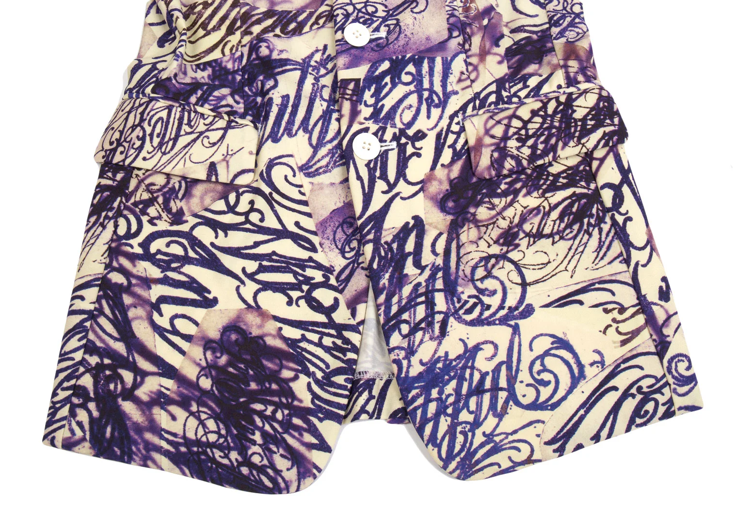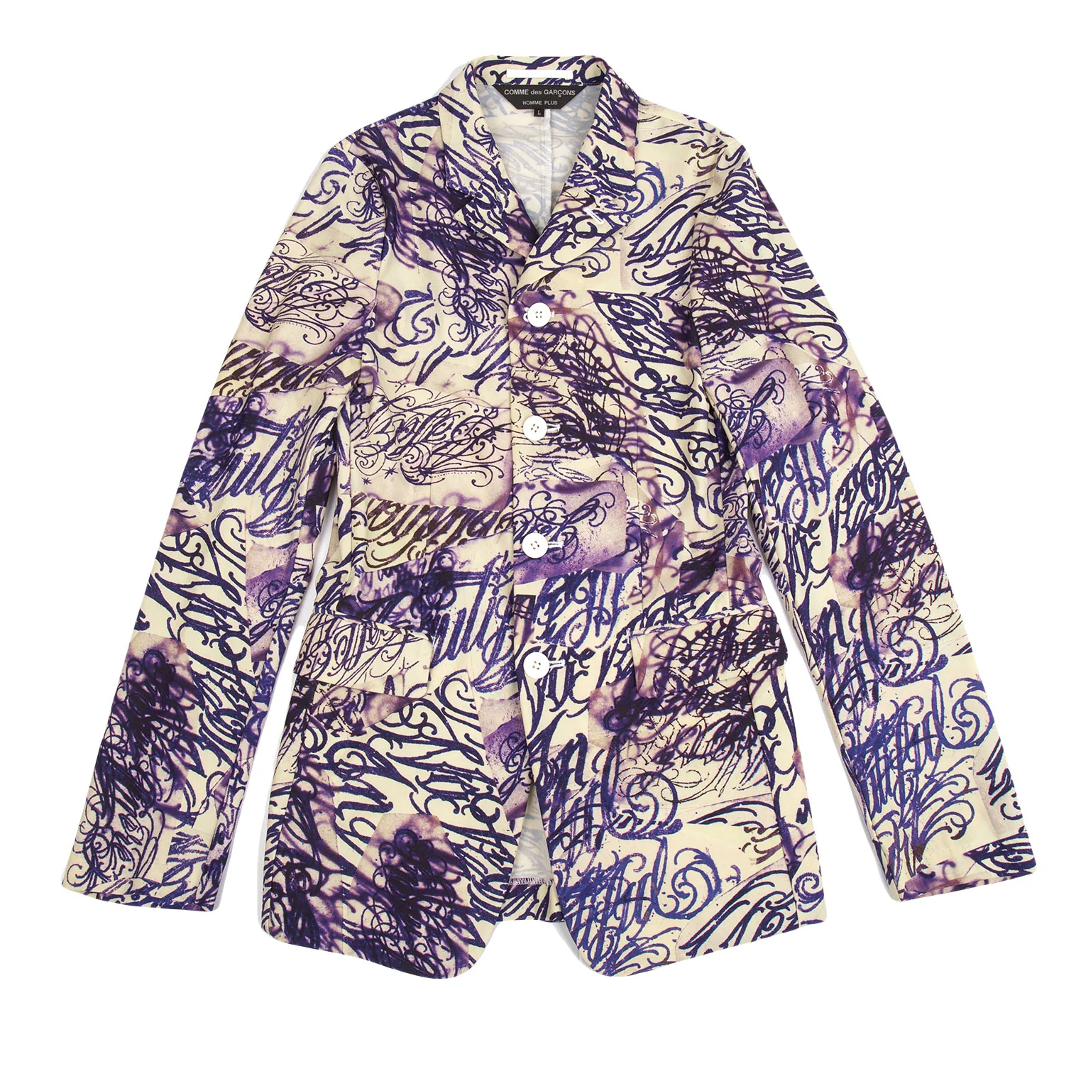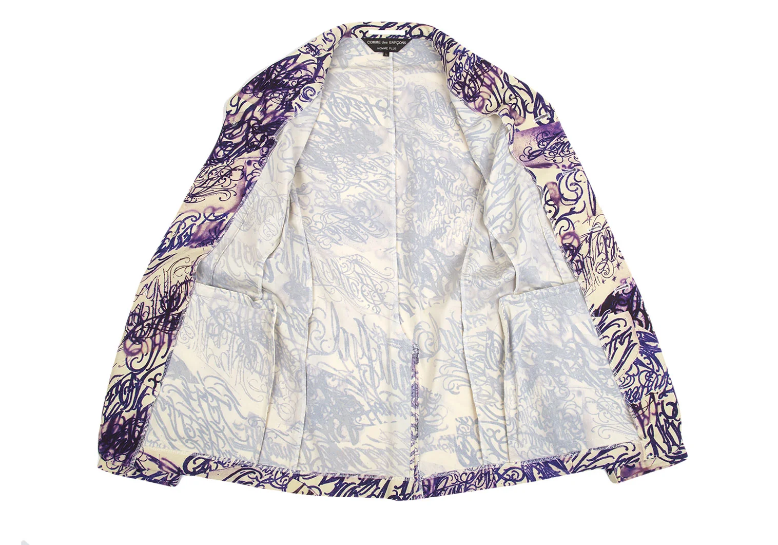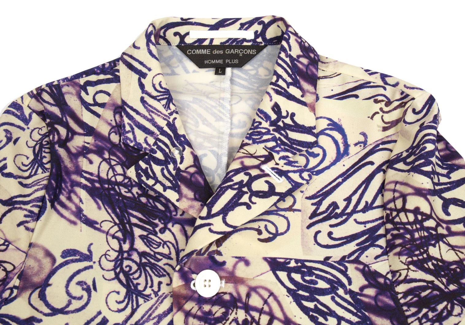 コムデギャルソン オムプリュスCOMME des GARCONS HOMME PLUS ストレッチタトゥープリントジャケット クリーム青L