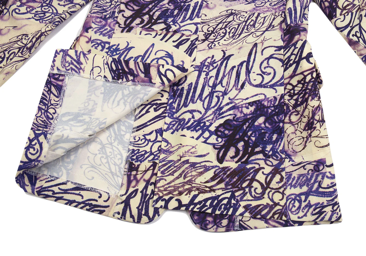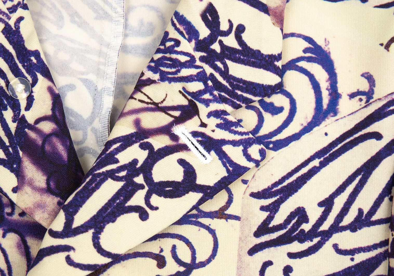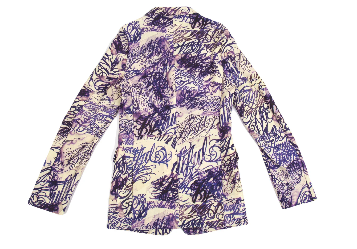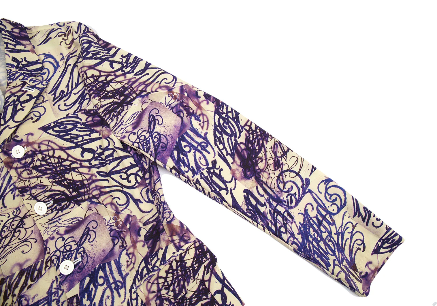 コムデギャルソン オムプリュスCOMME des GARCONS HOMME PLUS ストレッチタトゥープリントジャケット クリーム青L