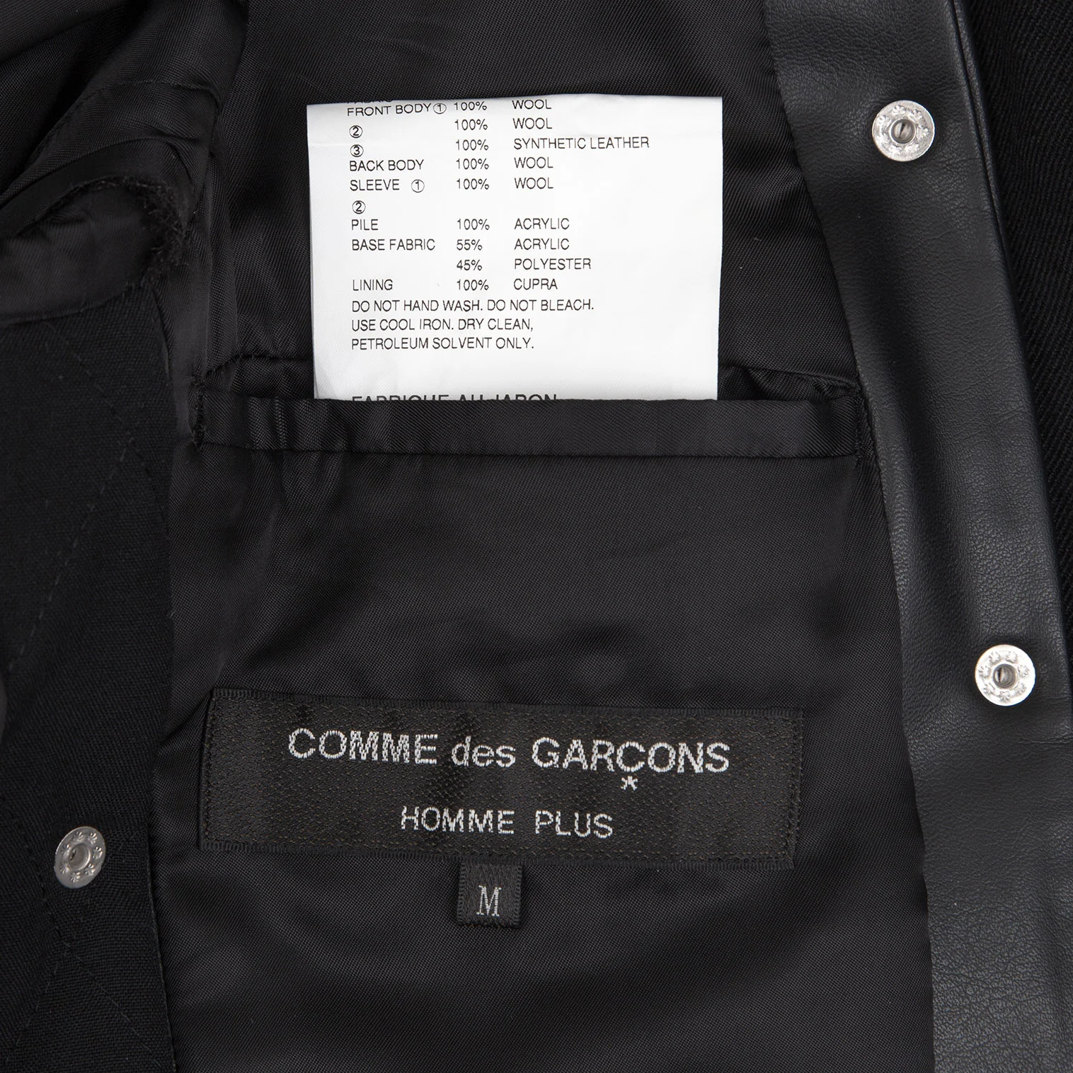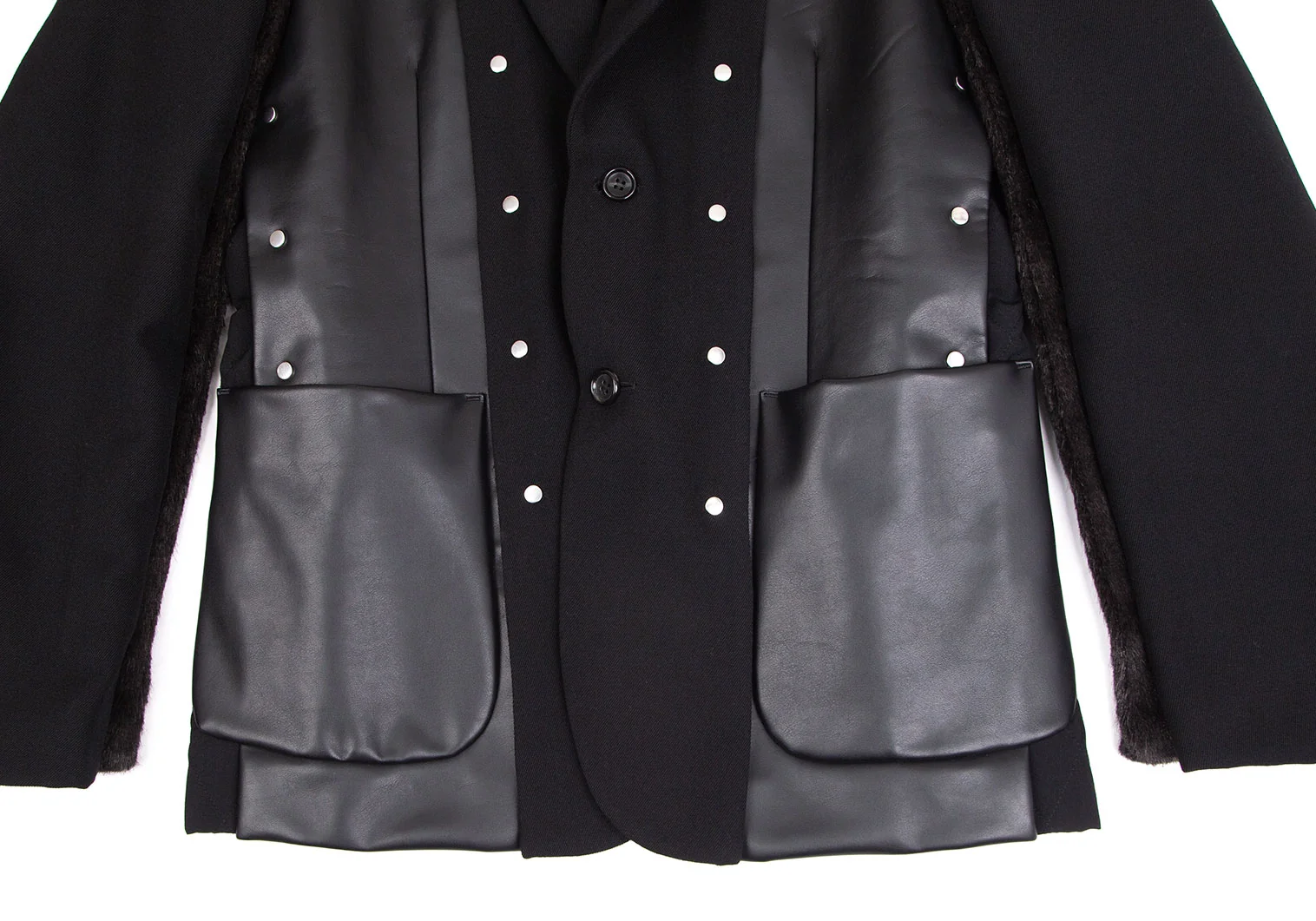 コムデギャルソン オムプリュスCOMME des GARCONS HOMME PLUS 平和の鎧フェイクレザーリベット切替ジャケット 黒M