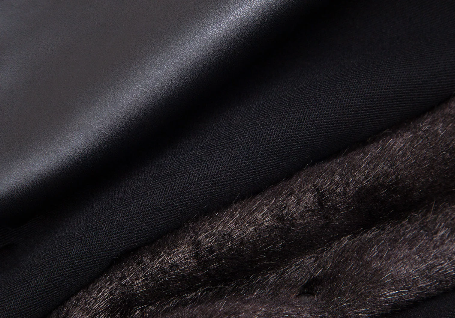 前身頃(1) 毛100% (2)毛100% (3)合成皮革(ポリウレタン樹脂使用) 後身頃 毛100% 袖部分(1)毛100% (2)パイル アクリル100% 基布 アクリル55% ポリエステル45% 裏地 キュプラ100%