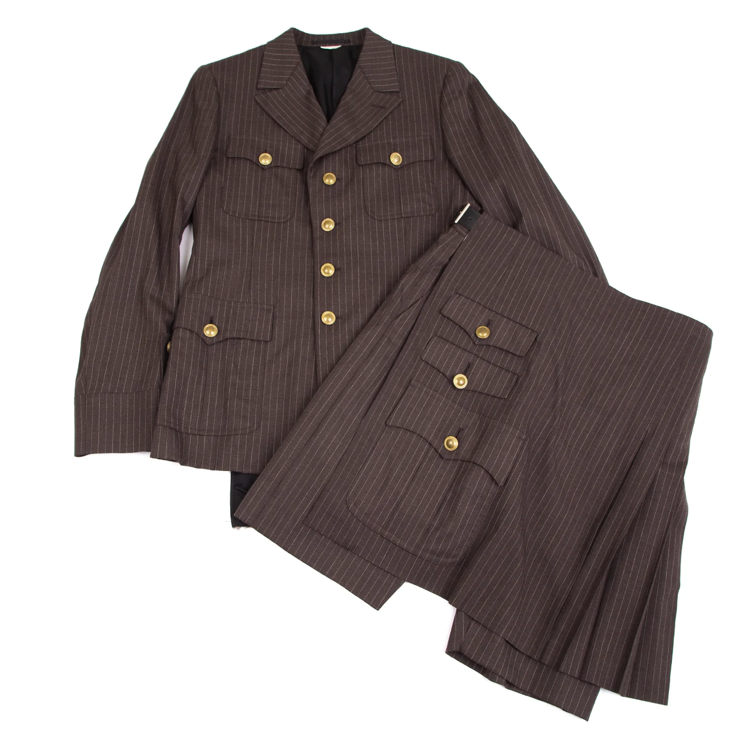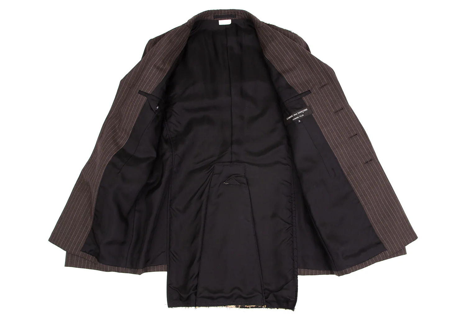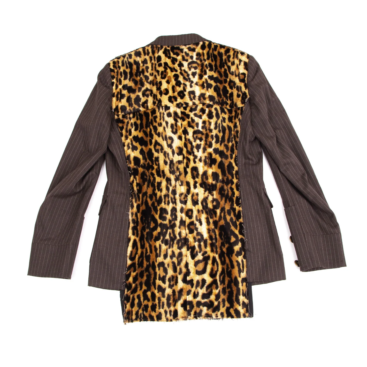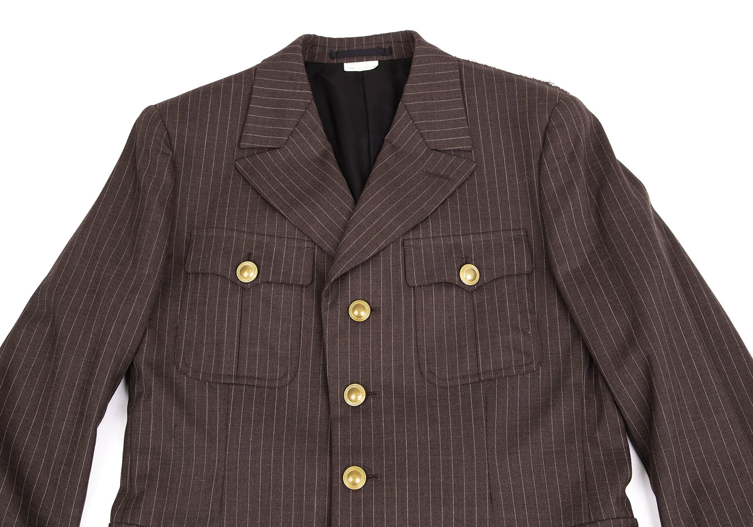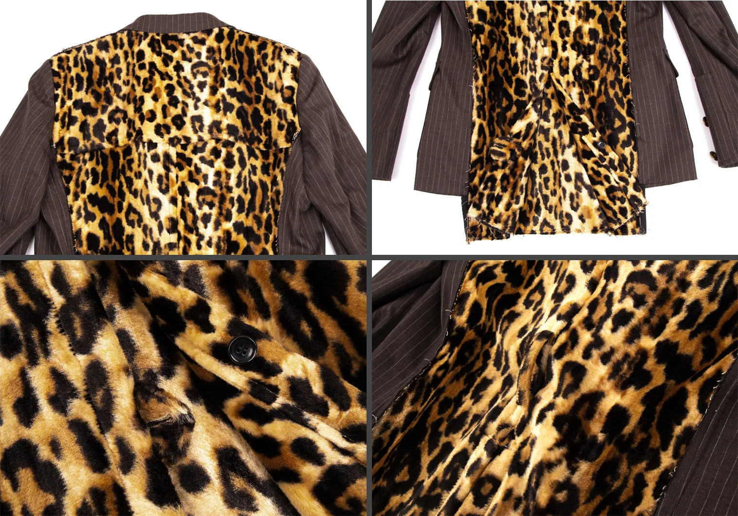 コムデギャルソン オムプリュスCOMME des GARCONS HOMME PLUS バックレオパード切替ストライプオフィサージャケット 茶M