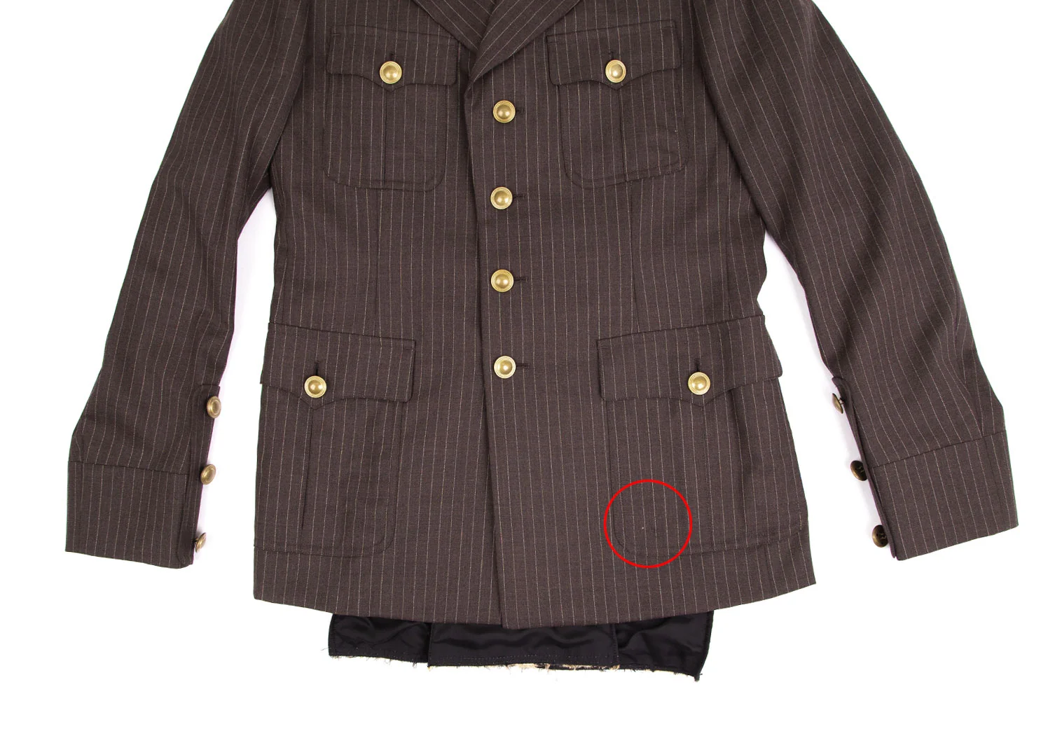 2015S/S コレクション着用アイテムです。肩パッドあり。襟裏に薄汚れ、前裾に小穴があります(写真参照)。その他に目立ったシミ、汚れ、ほつれ等なくいい状態です。クリーニング済み