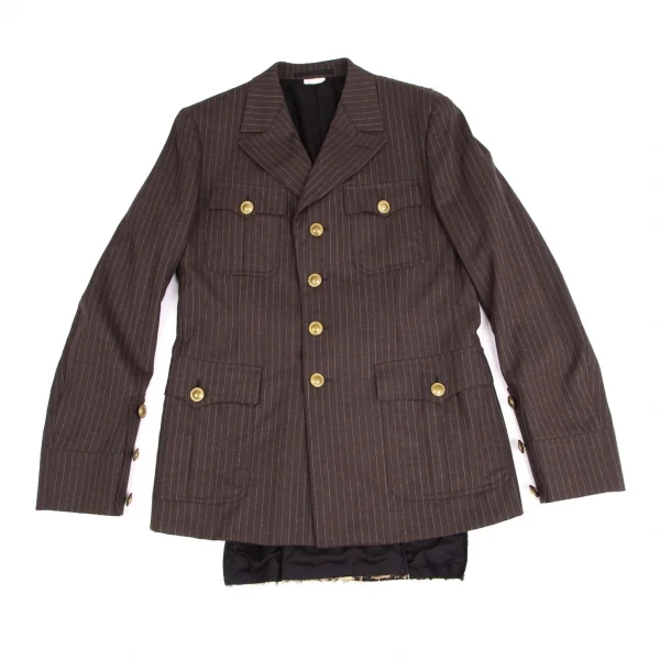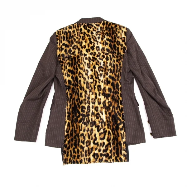 コムデギャルソン オムプリュスCOMME des GARCONS HOMME PLUS バックレオパード切替ストライプオフィサージャケットセットアップ 茶M・L