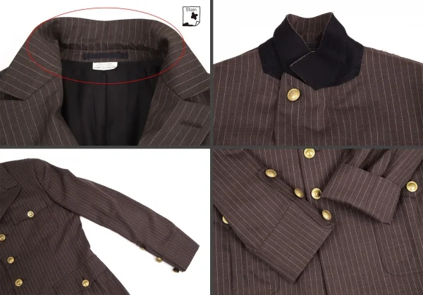 2015S/S コレクション着用アイテムです。ジャケット:肩パッドあり。襟裏に薄汚れ、前裾に小穴があります。パンツ:前開き裏に薄シミがあります。(写真参照)その他に目立ったシミ、汚れ、ほつれ等なくいい状態です。クリーニング済み