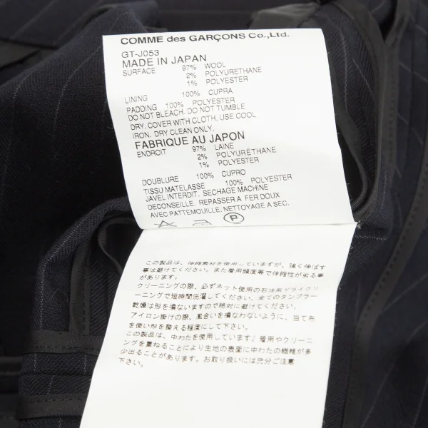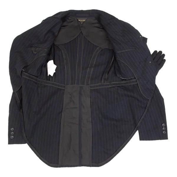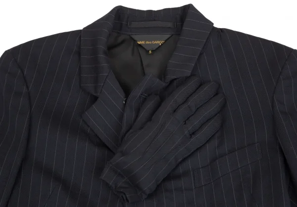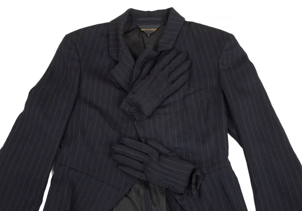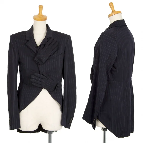 コムデギャルソンCOMME des GARCONS ハンドモチーフストライプモーニングジャケット 紺S