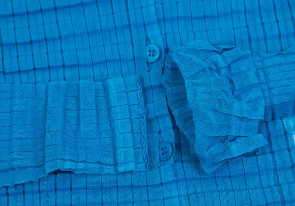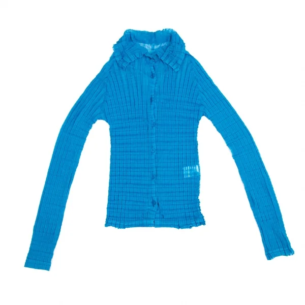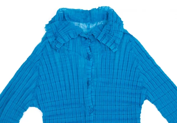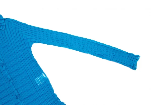 イッセイミヤケ ミーISSEY MIYAKE me ボックスプリーツシースルーシャツ 青Free