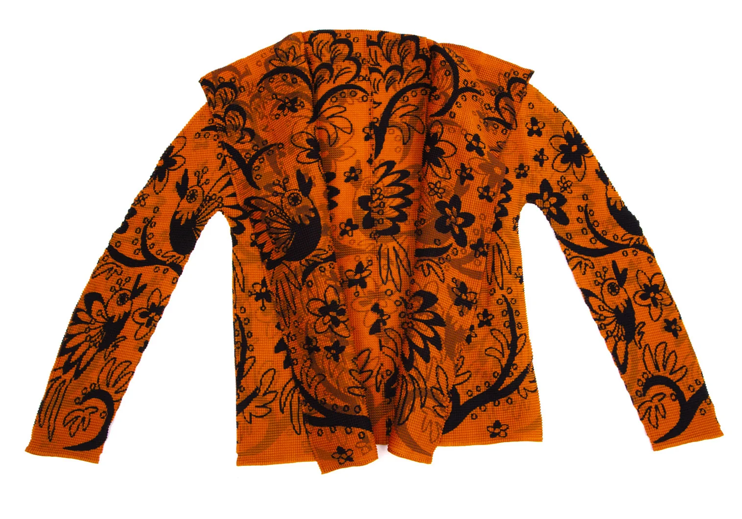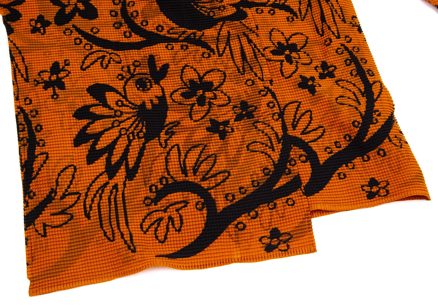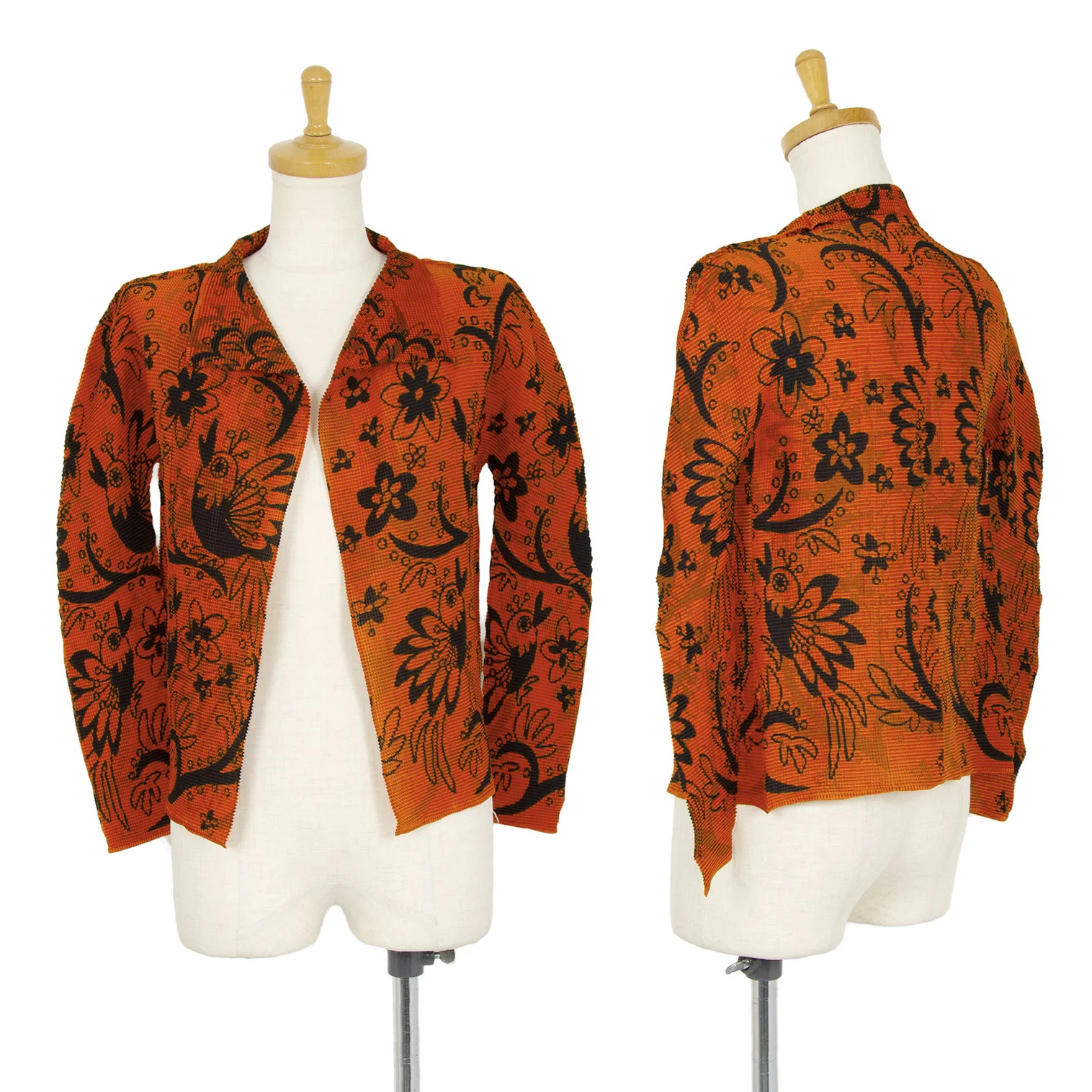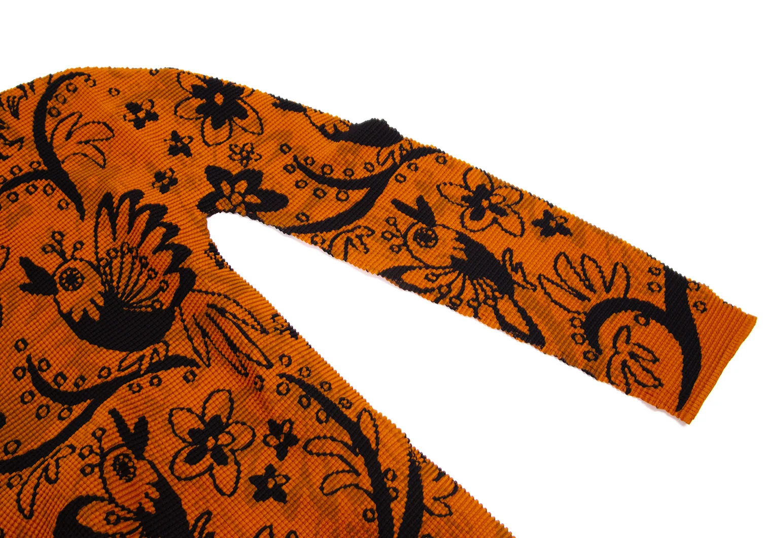 イッセイミヤケ ミーISSEY MIYAKE me バードフラワープリントボタンレスカーディガン オレンジ黒Free
