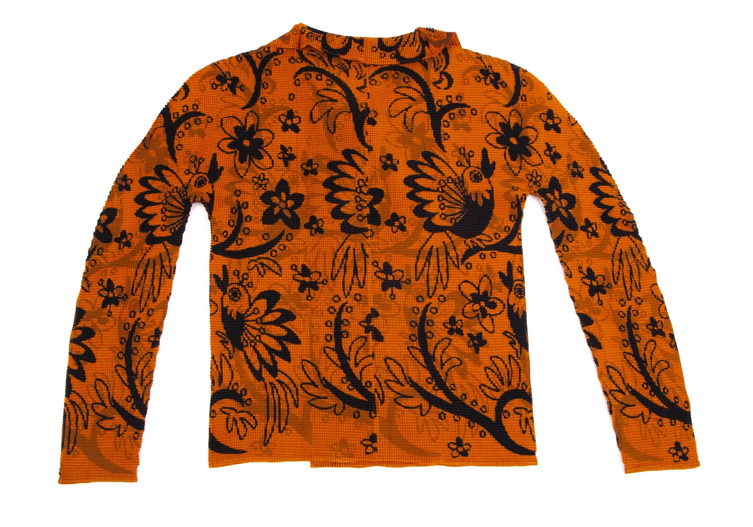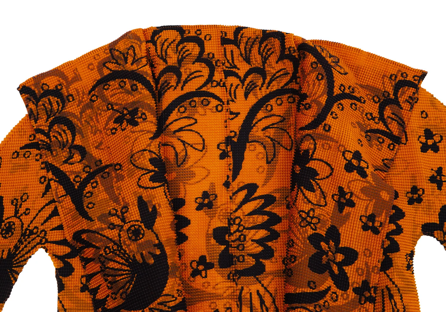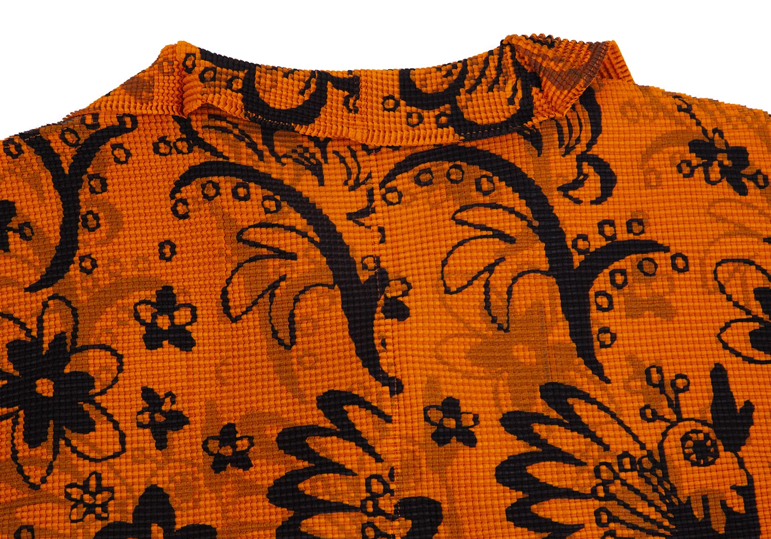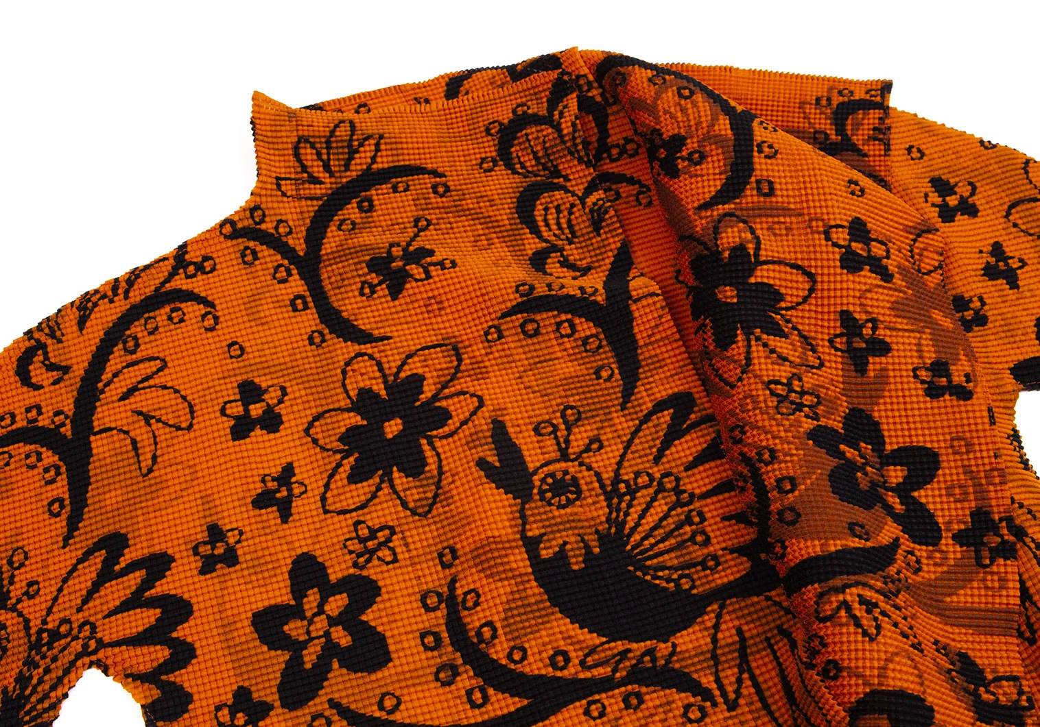 イッセイミヤケ ミーISSEY MIYAKE me バードフラワープリントボタンレスカーディガン オレンジ黒Free