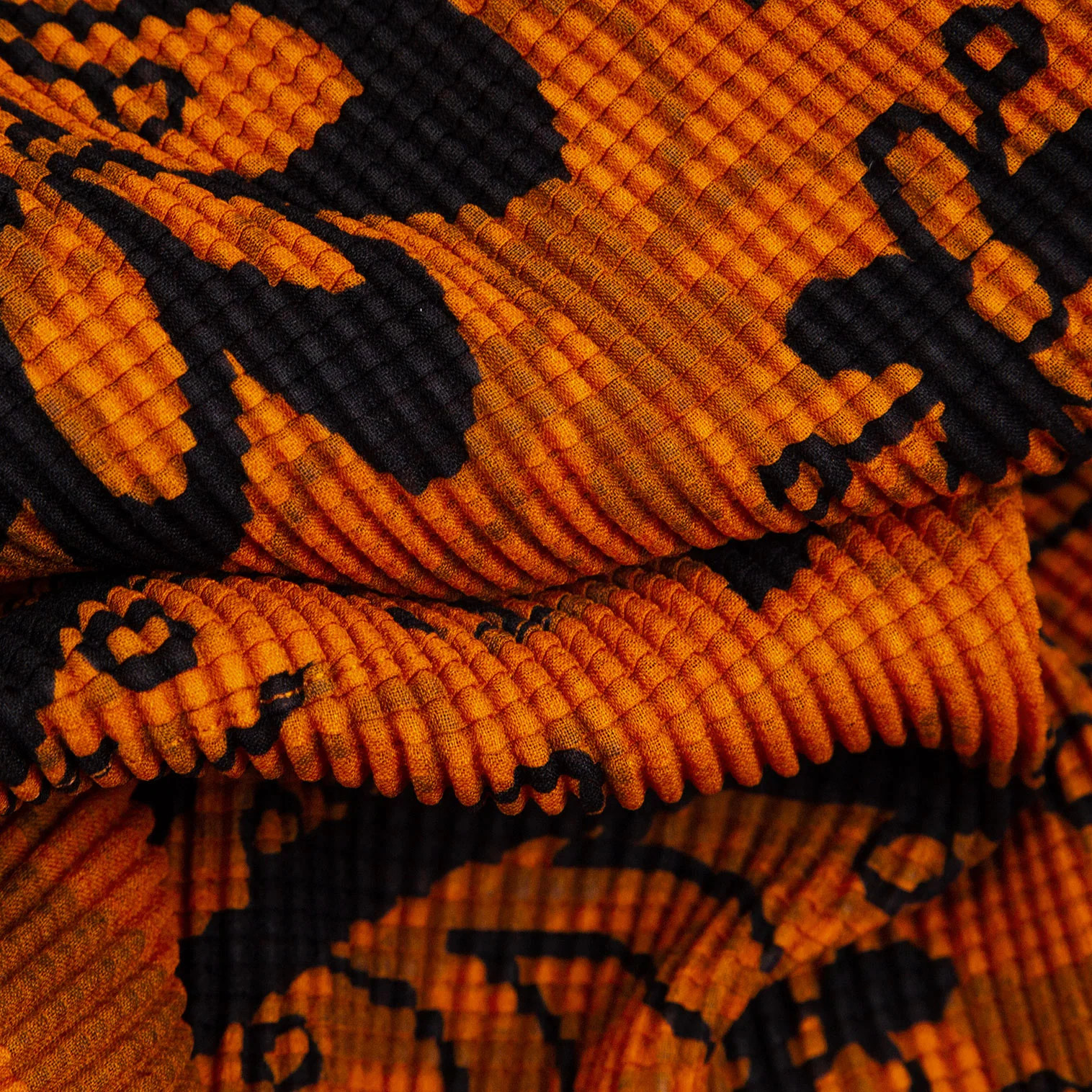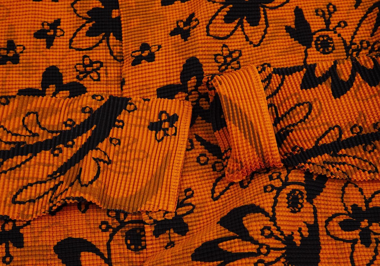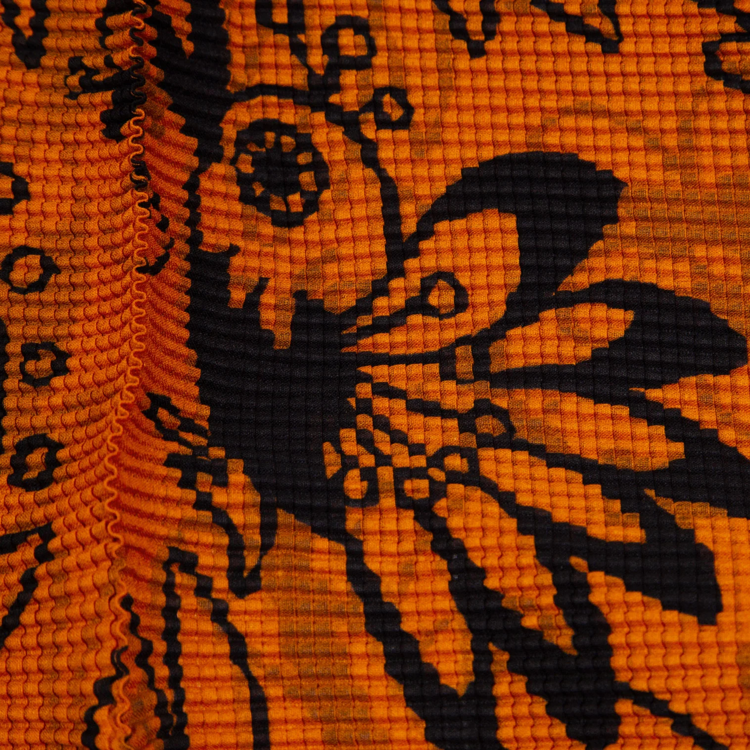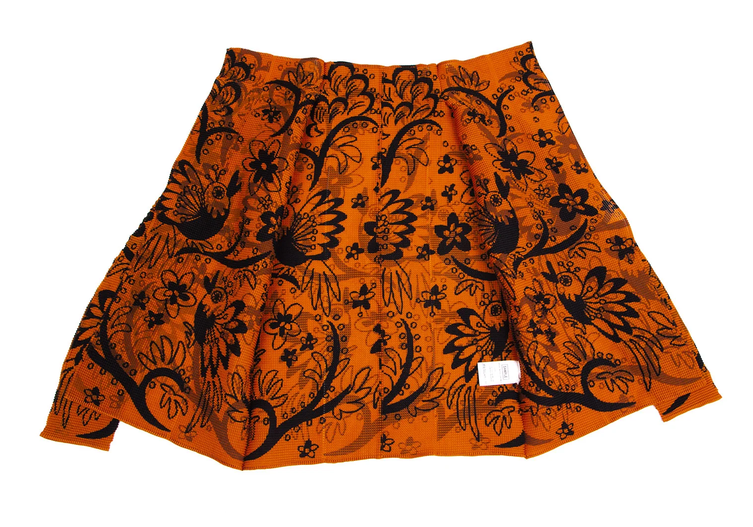 イッセイミヤケ ミーISSEY MIYAKE me バードフラワープリントボタンレスカーディガン オレンジ黒Free