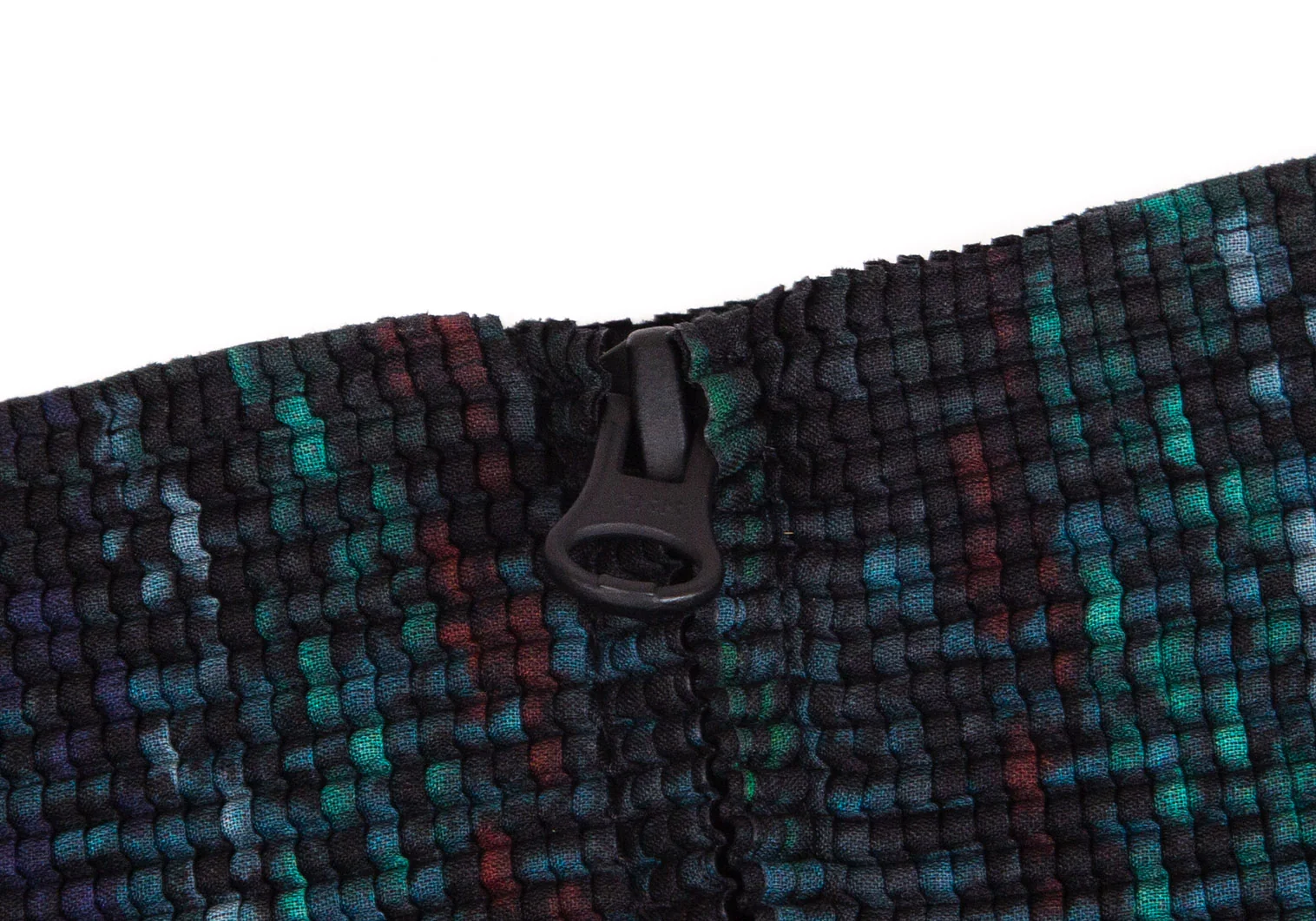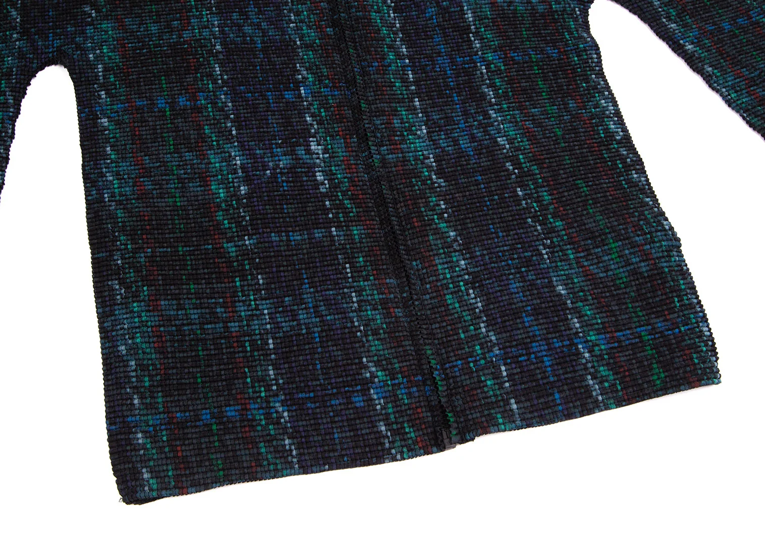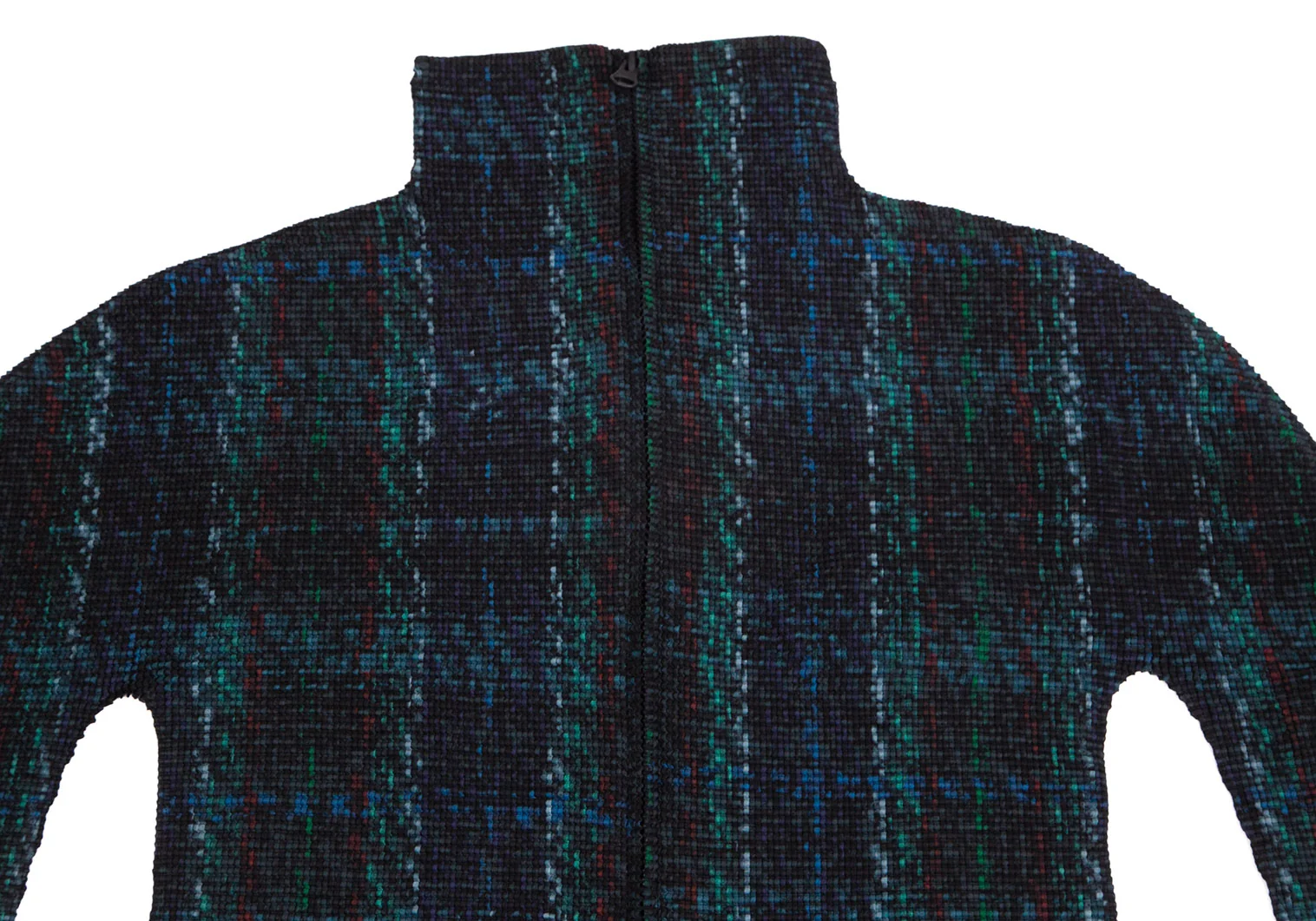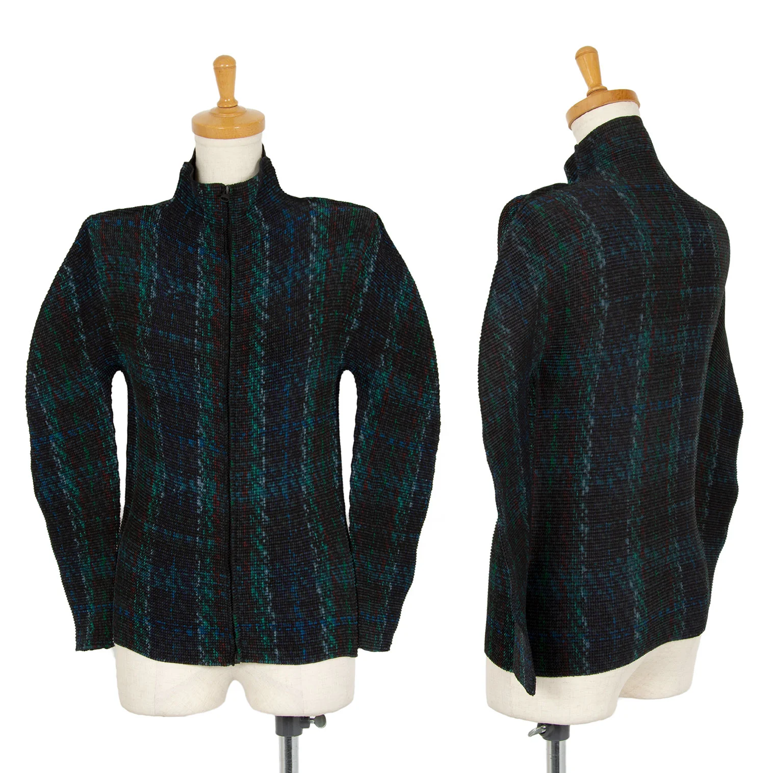 イッセイミヤケ ミーISSEY MIYAKE me チェックプリントボックスプリーツジップアップブルゾン 深緑他Free