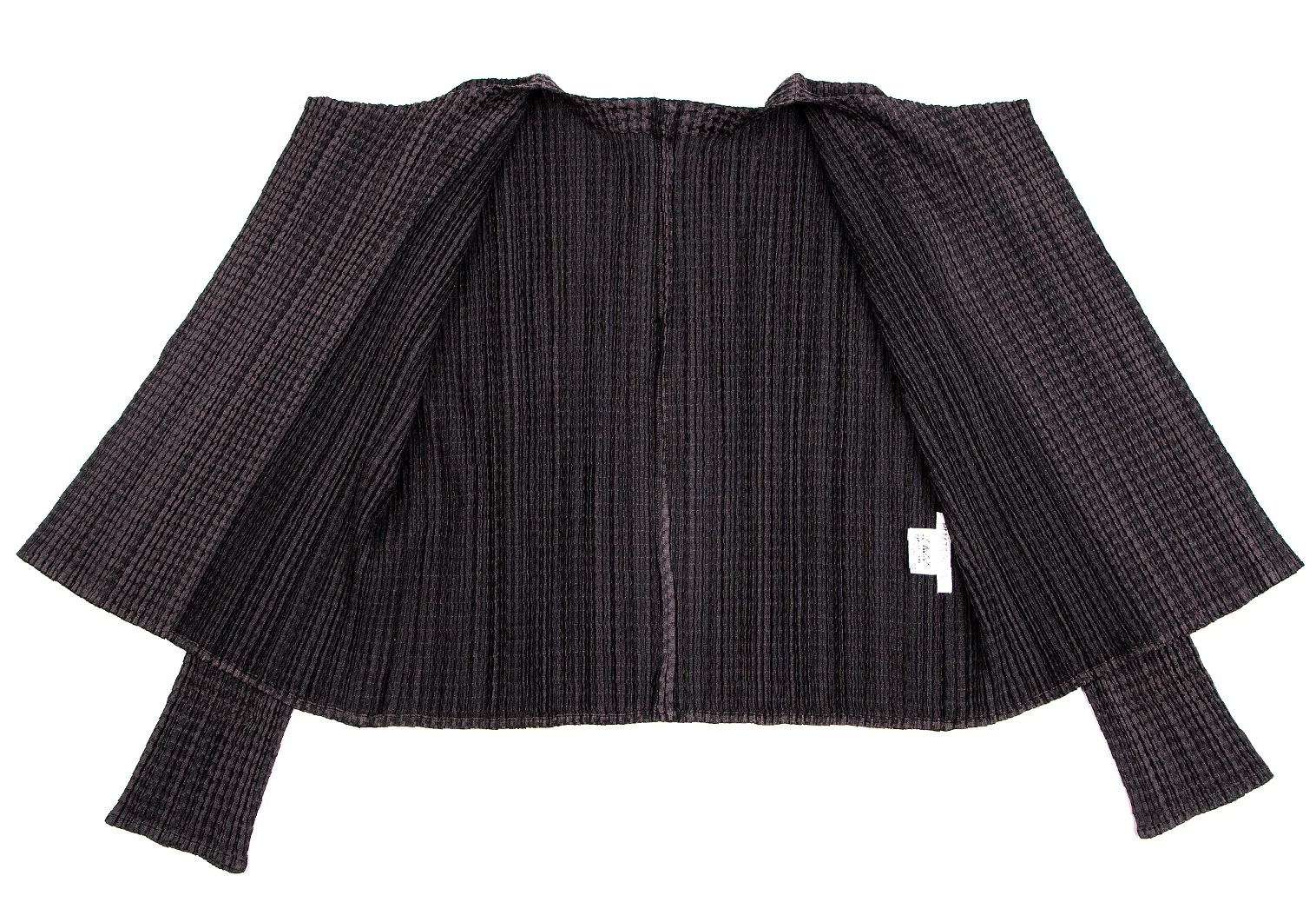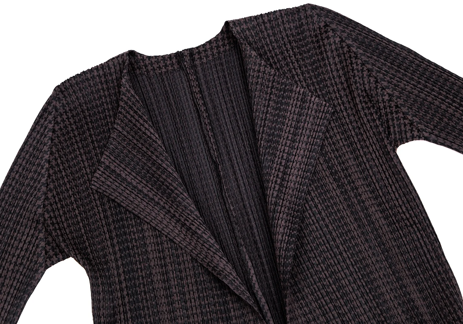プリーツプリーズPLEATS PLEASE ポリレーヨンハウンドトゥースボタンレスカーディガン 茶黒4