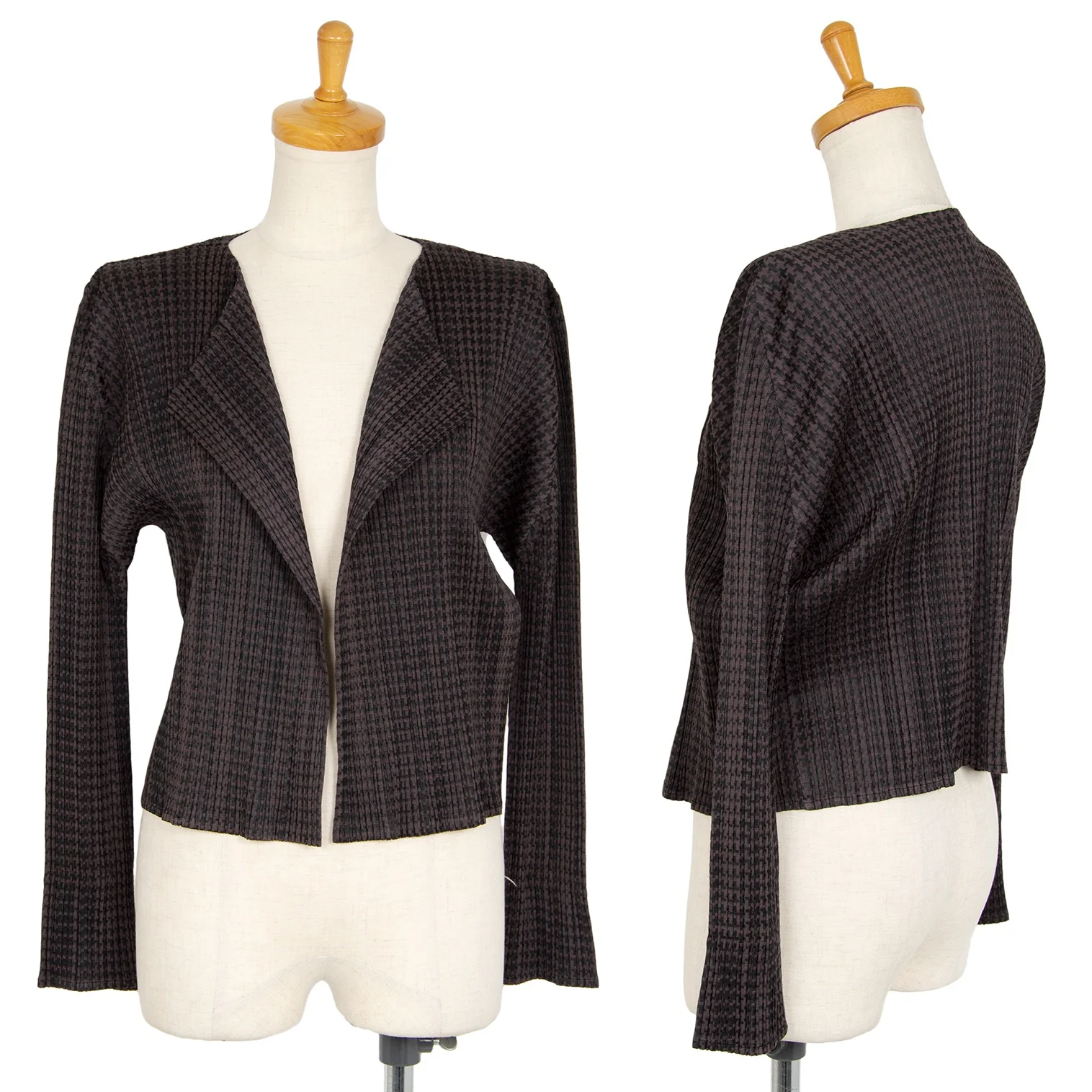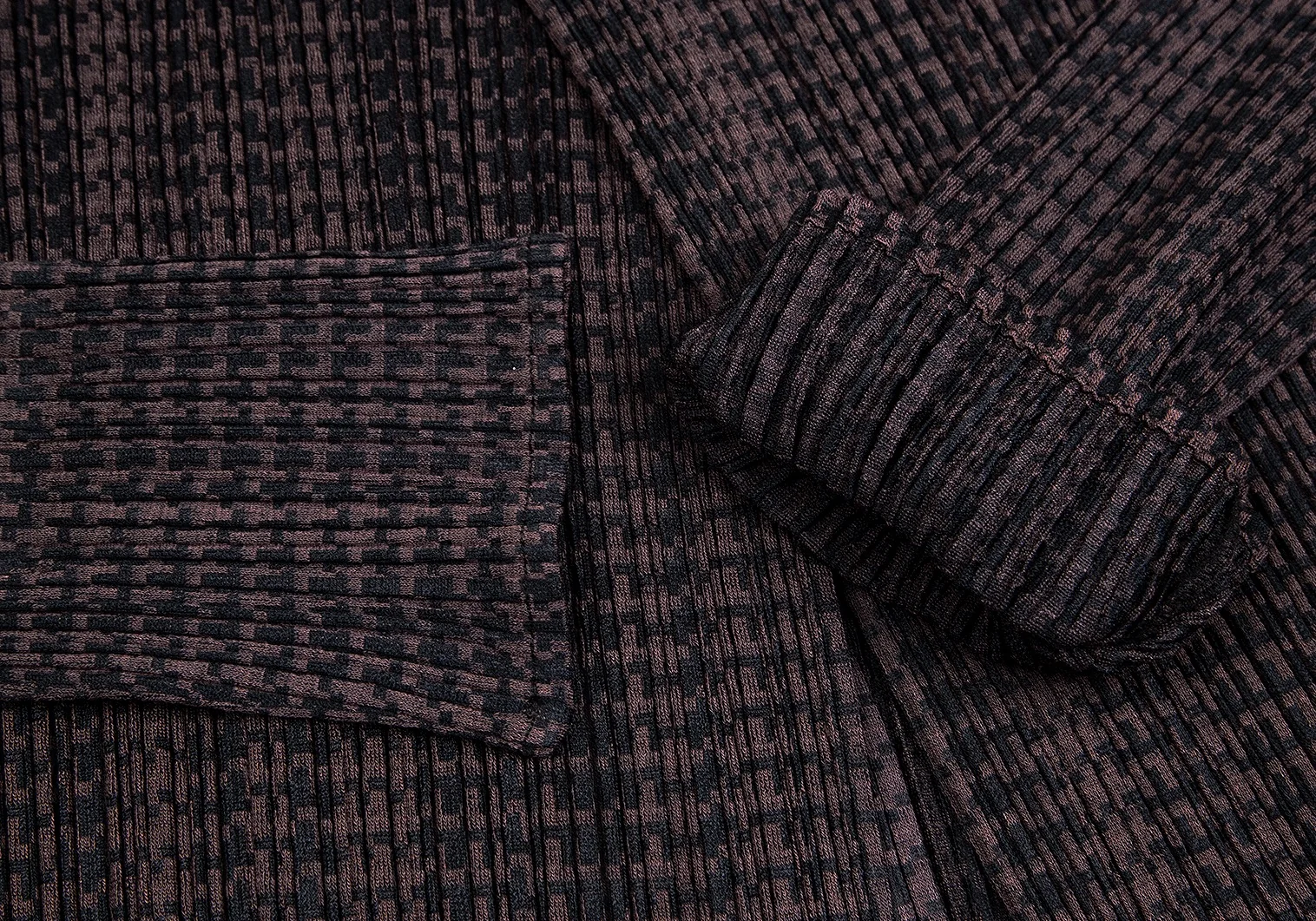 プリーツプリーズPLEATS PLEASE ポリレーヨンハウンドトゥースセットアップ 茶黒4・2