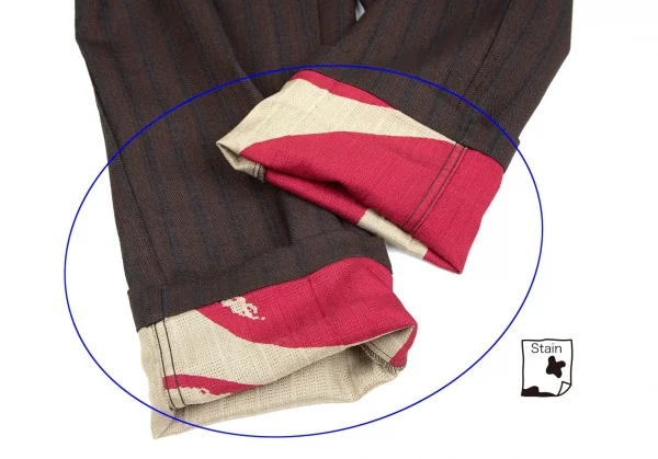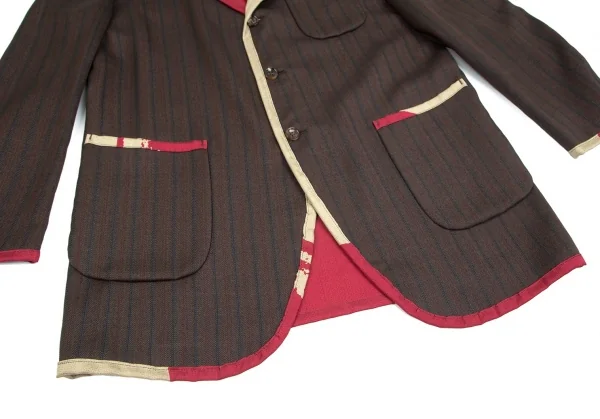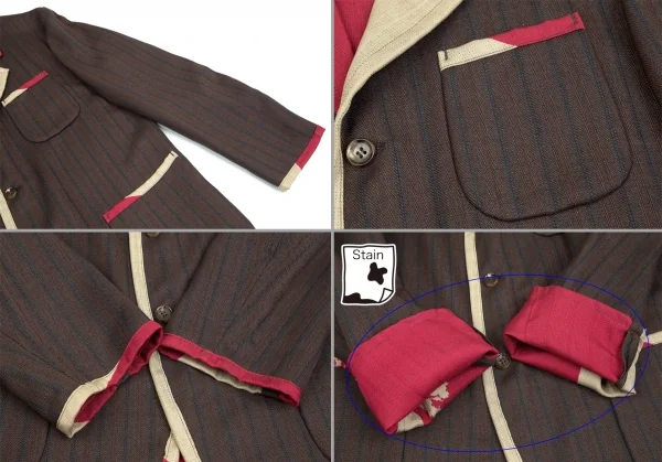 ジャケット:2001S/S コレクション着用アイテムです。首裏に汚れ、袖裏に薄汚れ、裏側全体にシミが多数あります。パンツ:裾裏に薄汚れがあります。(画像参照)。目立ったシミ、汚れ、ほつれ等なくいい状態です。クリーニング済み