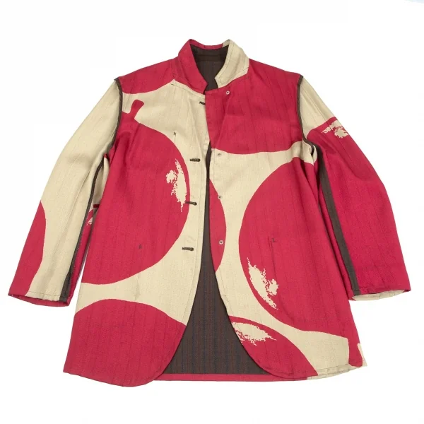 コムデギャルソン オムプリュスCOMME des GARCONS HOMME PLUS 裏アップルプリントヘリンボーンセットアップスーツ 茶赤他M・L