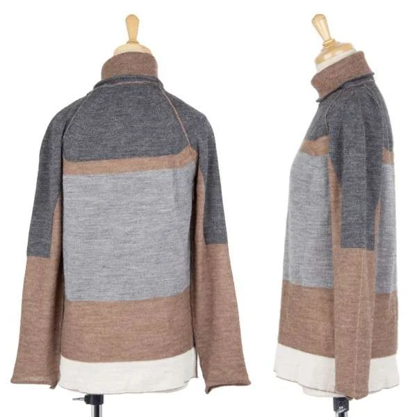 コムデギャルソンCOMME des GARCONS アルパカボーダータートルネックセーター グレー×ベージュ×モカ グレー×茶×モカM位
