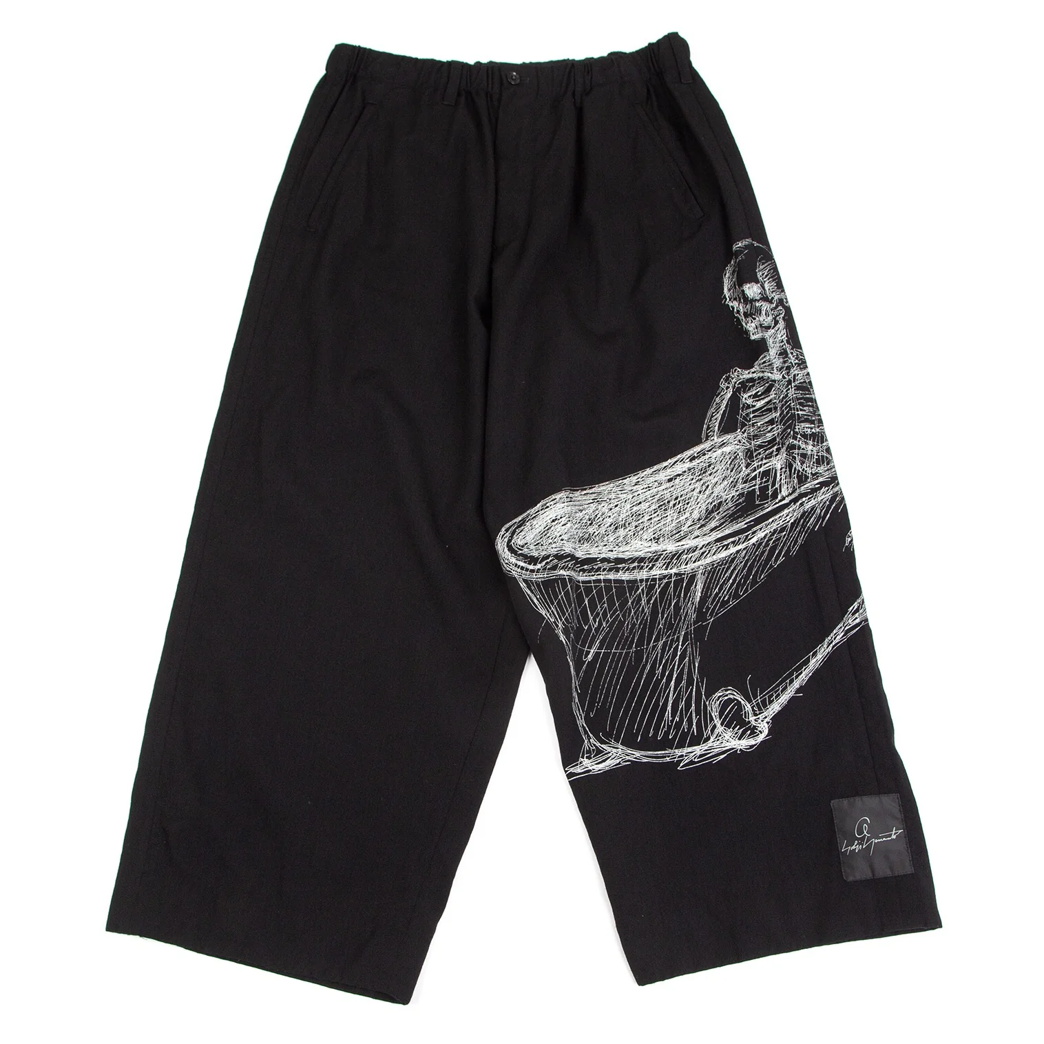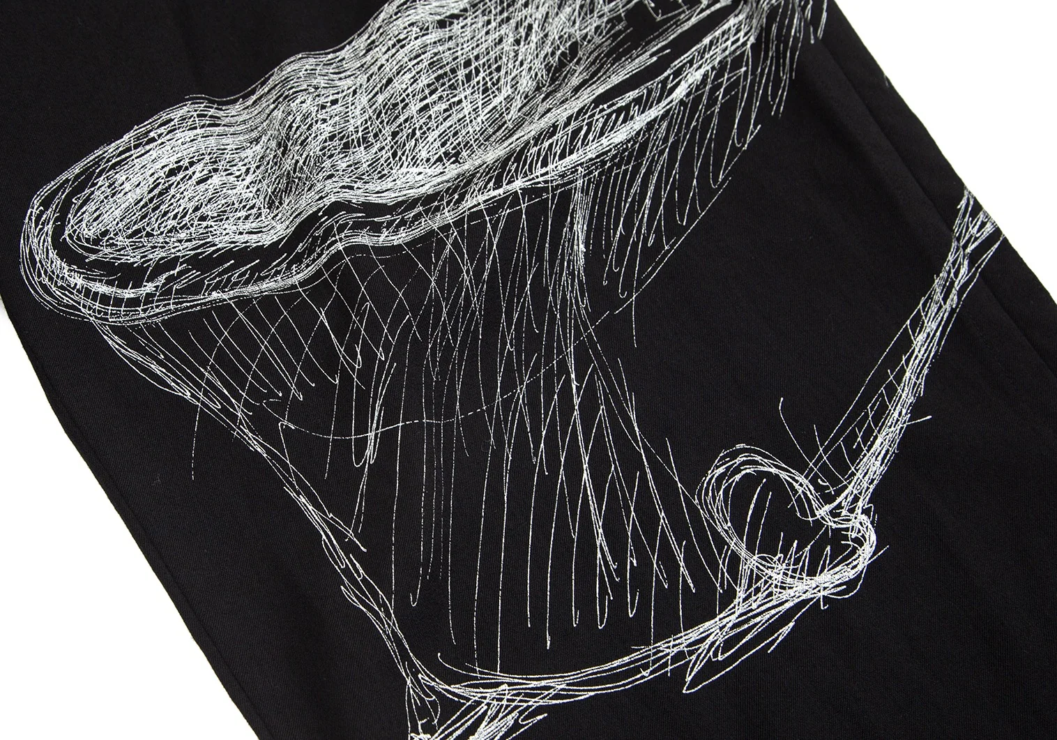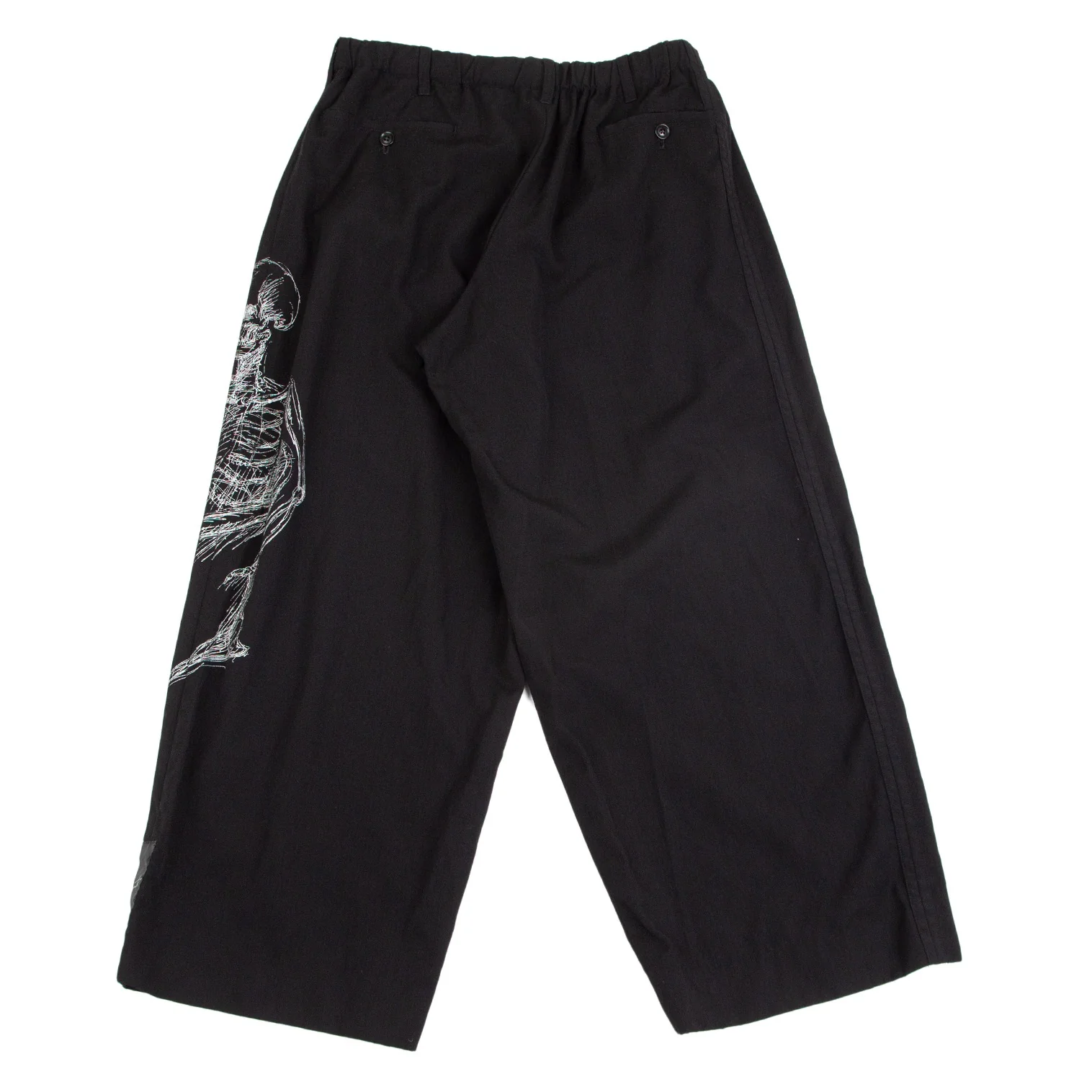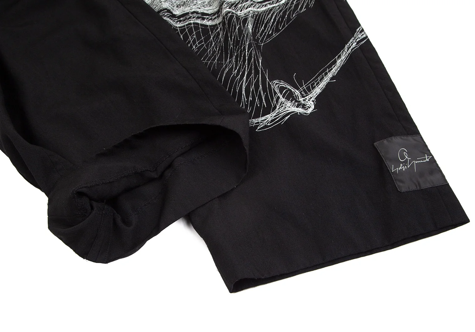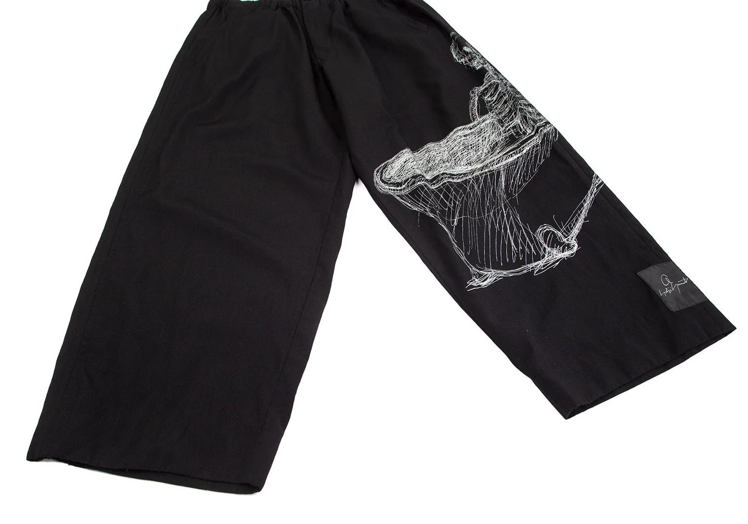 ヨウジヤマモト プールオムYohji Yamamoto POUR HOMME 朝倉優佳ウールギャバスカルドローイングプリントワイドパンツ 黒3