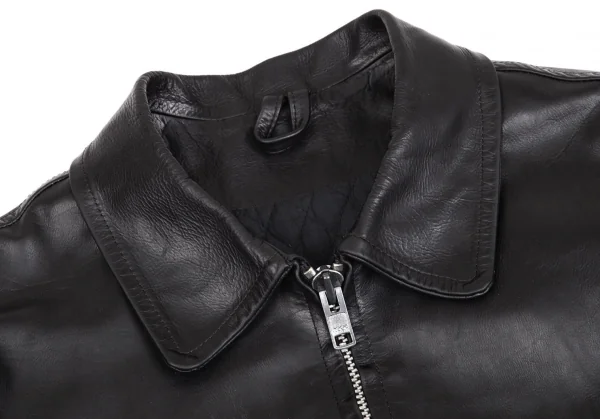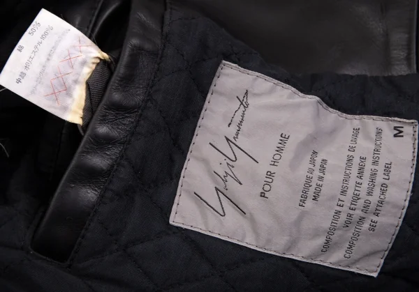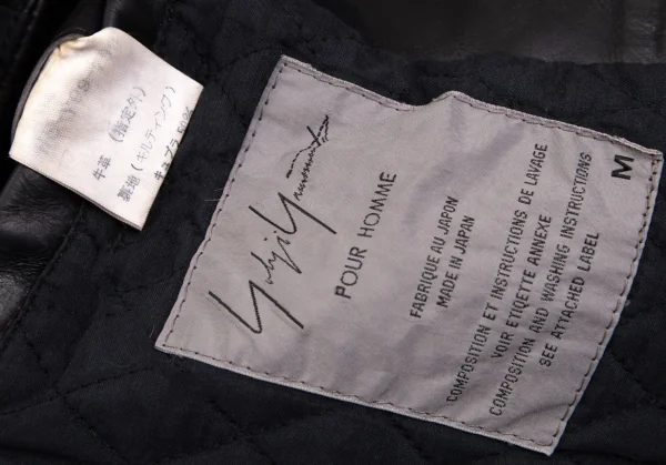 ヨウジヤマモト プールオムYohji Yamamoto POUR HOMMEカウレザー裏キルティング中綿シングルジャケット 黒M