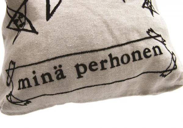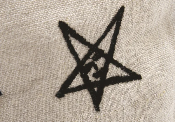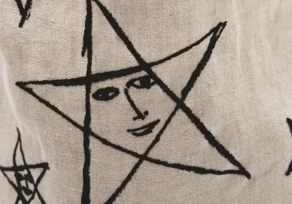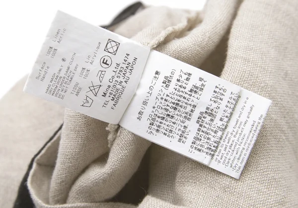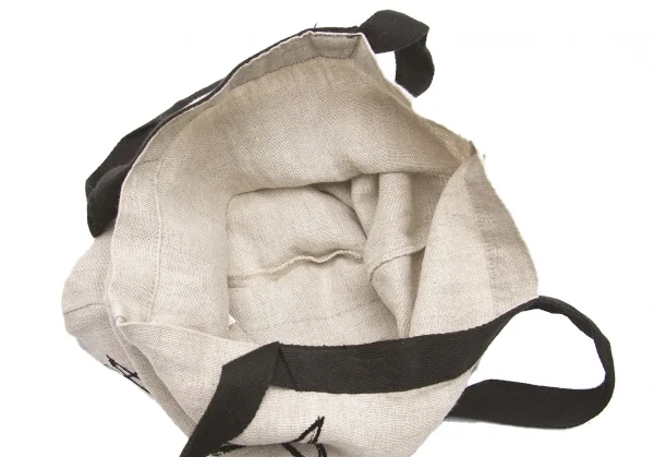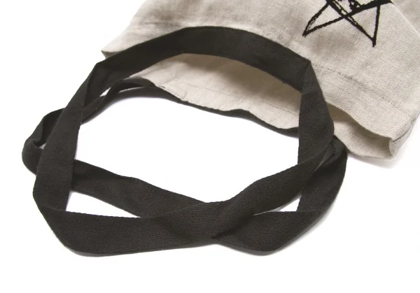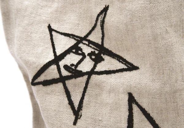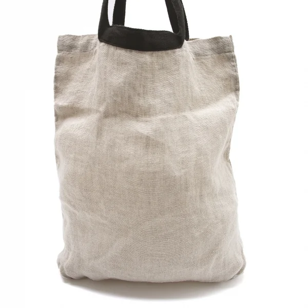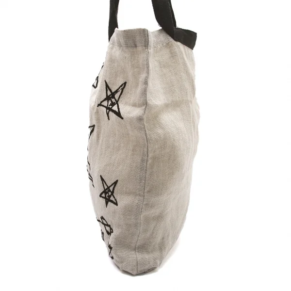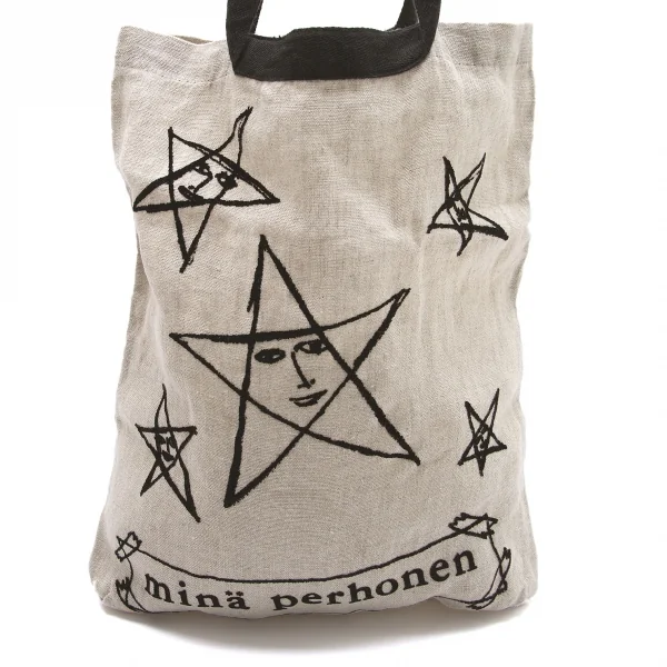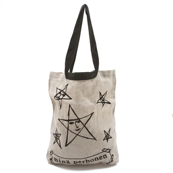 ミナペルホネンmina perhonen リネンスターロゴフロッキープリントトートバッグ ベージュ黒