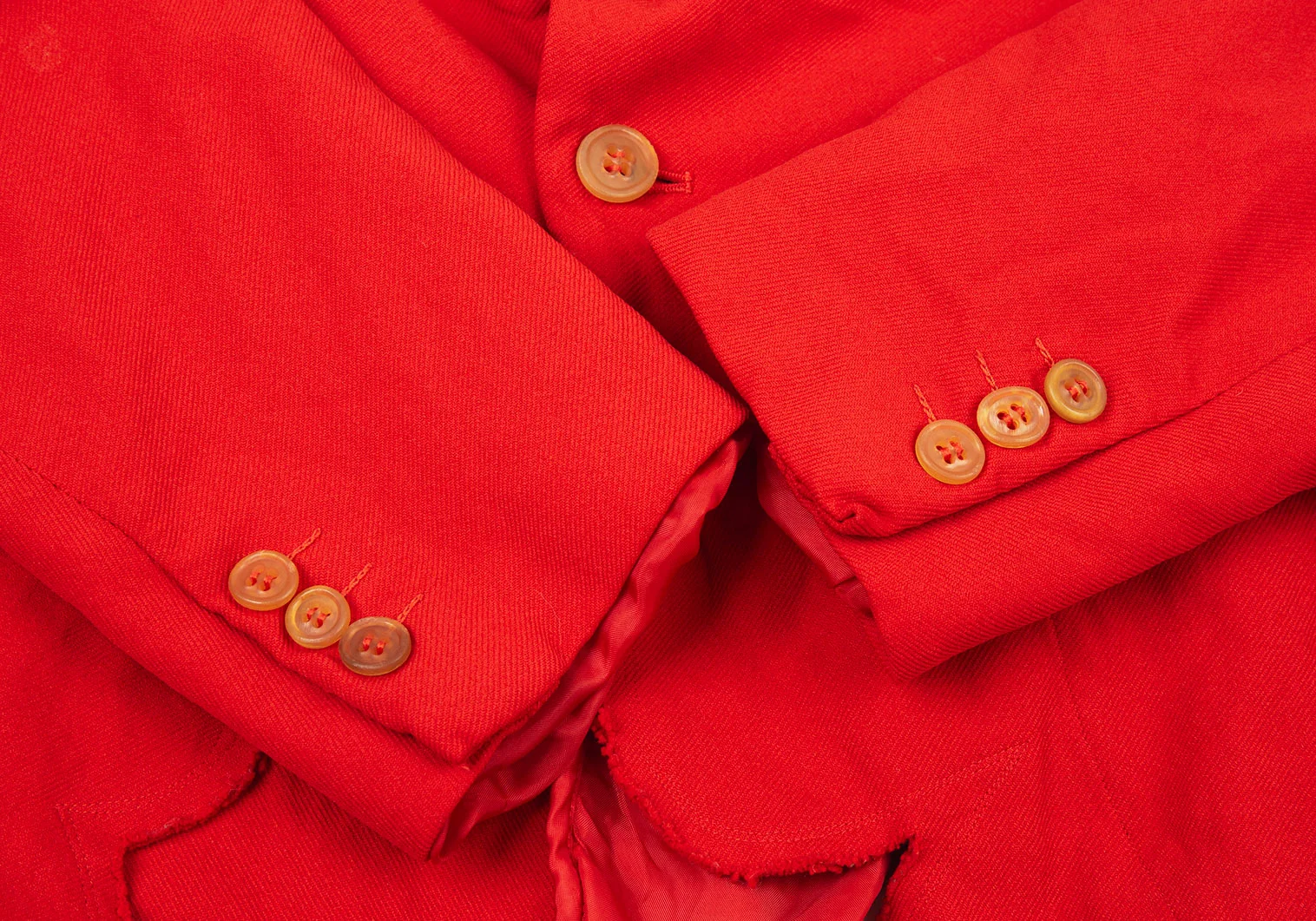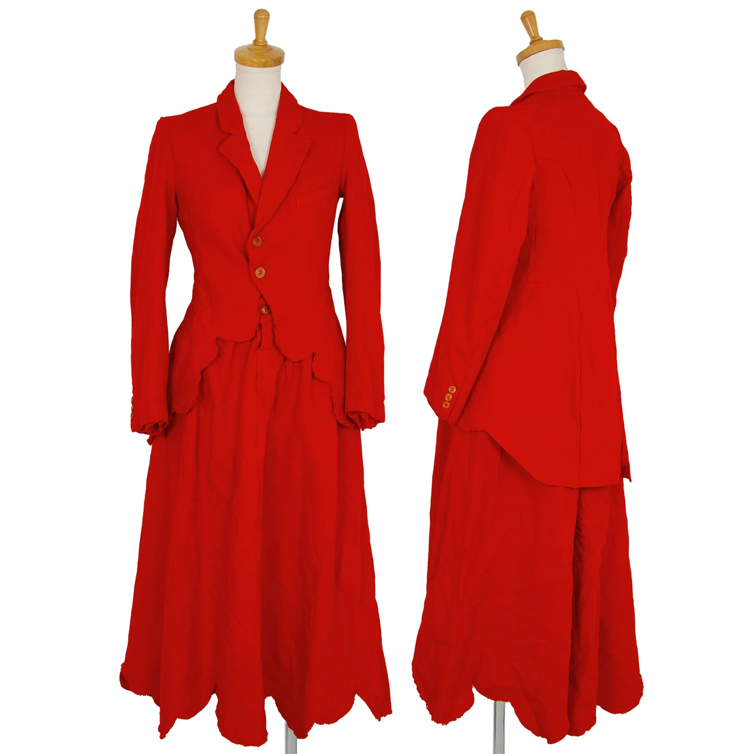 ローブドシャンブル コムデギャルソンrobe de chambre COMME des GARCONS ポリ縮絨裾ラウンドカットデザインセットアップスーツ 赤L・M