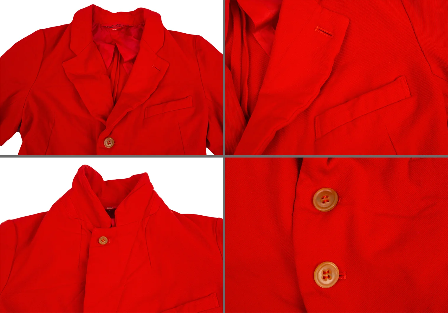 ジャケット:裏地に生地ヨレ、左肩・右袖に汚れがあります。(写真参照)その他に目立ったシミ、汚れ、ほつれ等なくいい状態です。クリーニング済み