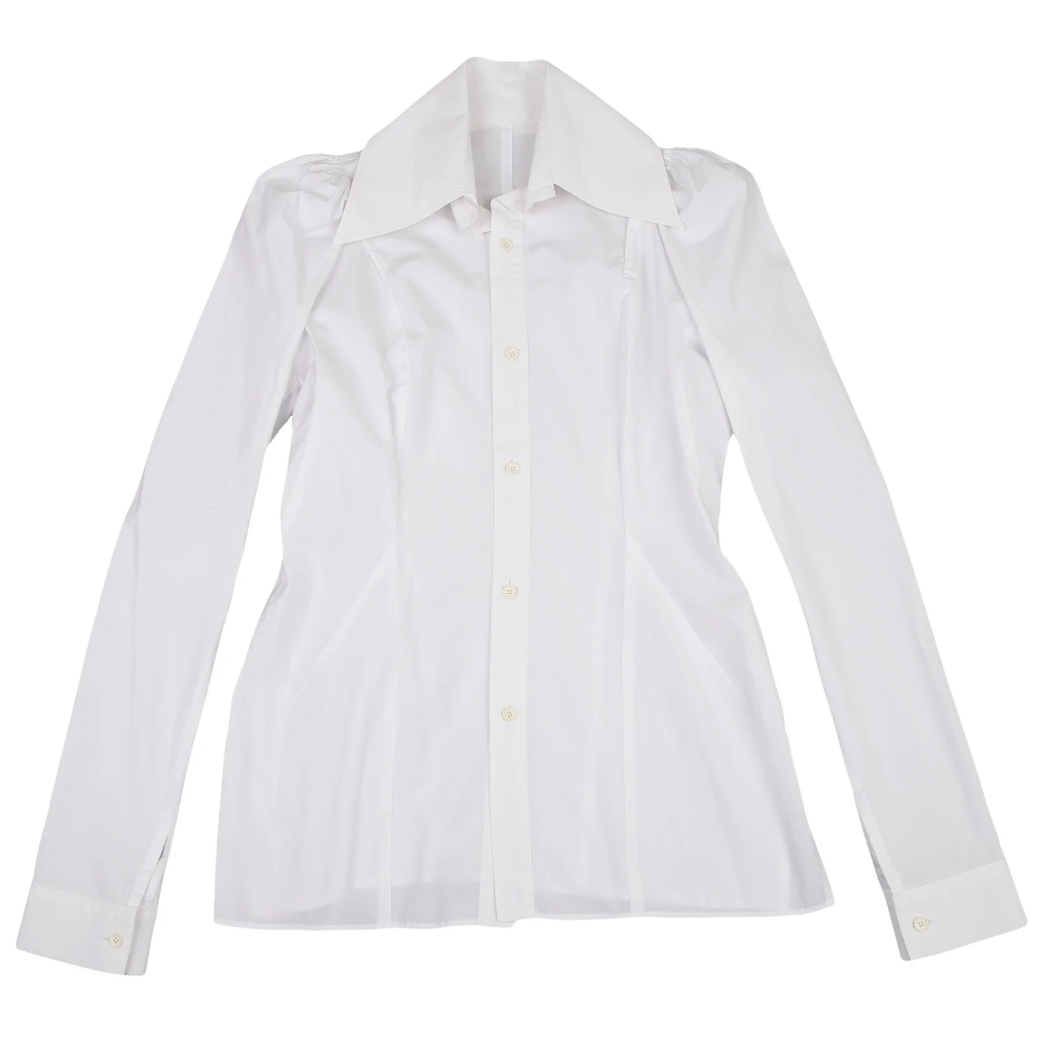 ヨウジヤマモト ファムYohji Yamamoto FEMME コットンブロードギャザースリーブビッグカラーシャツ 白2