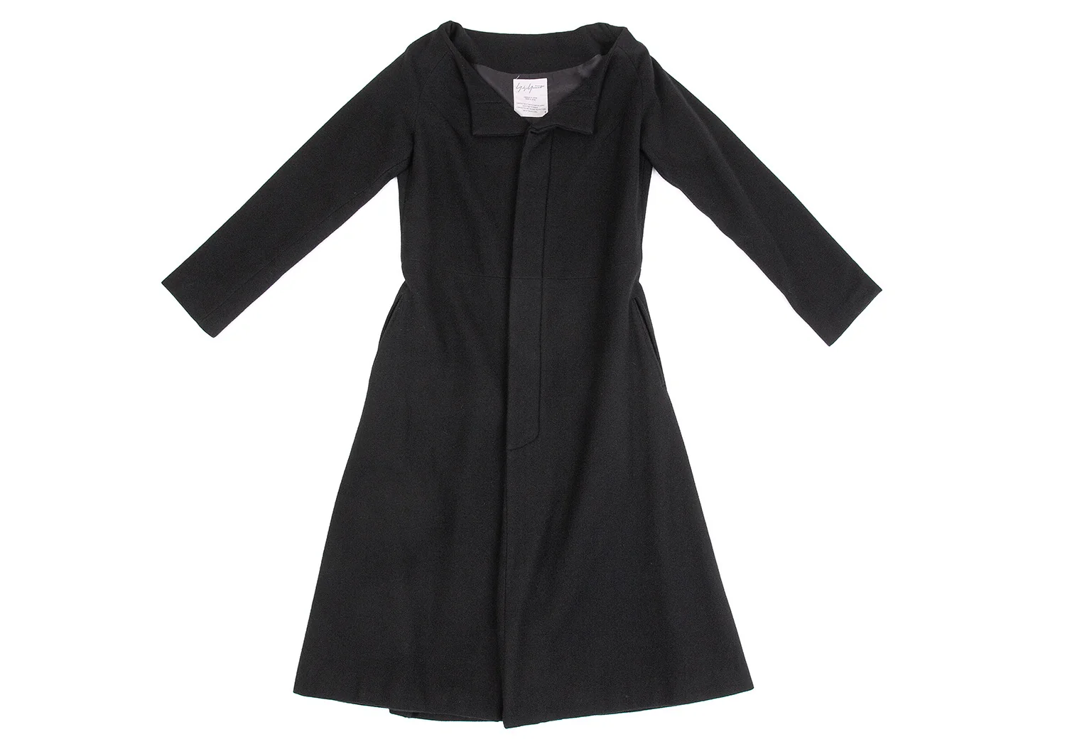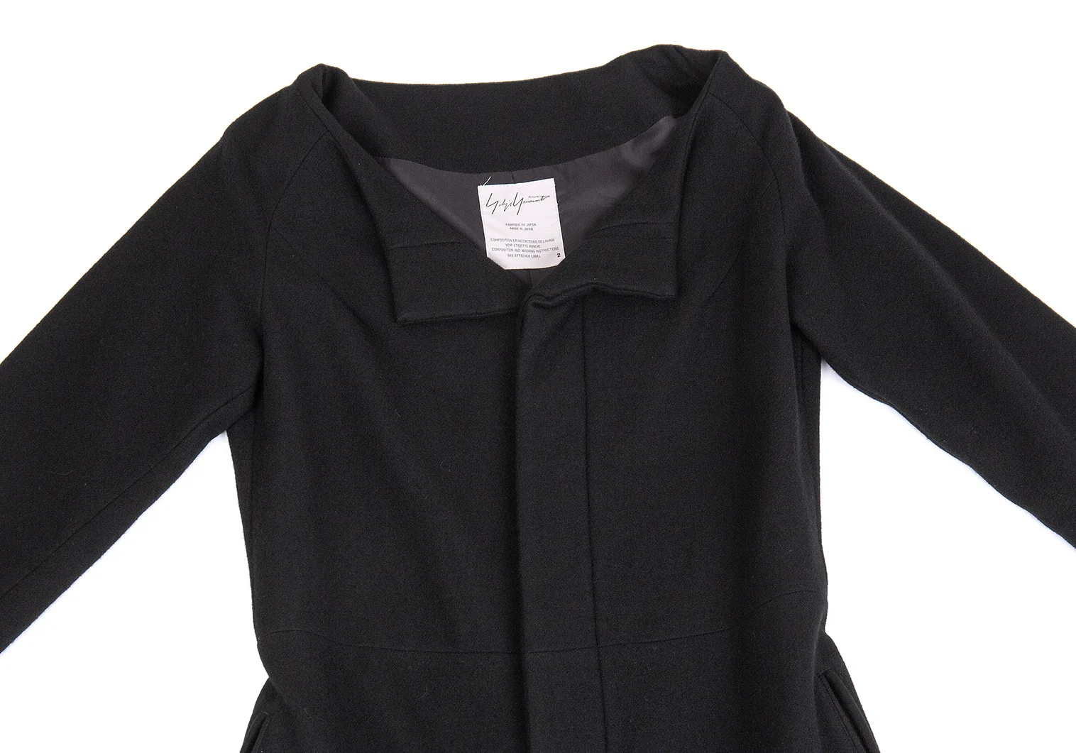 ヨウジヤマモト ファムYohji Yamamoto FEMME ウールカシミヤフライフロントラグランコート 黒2