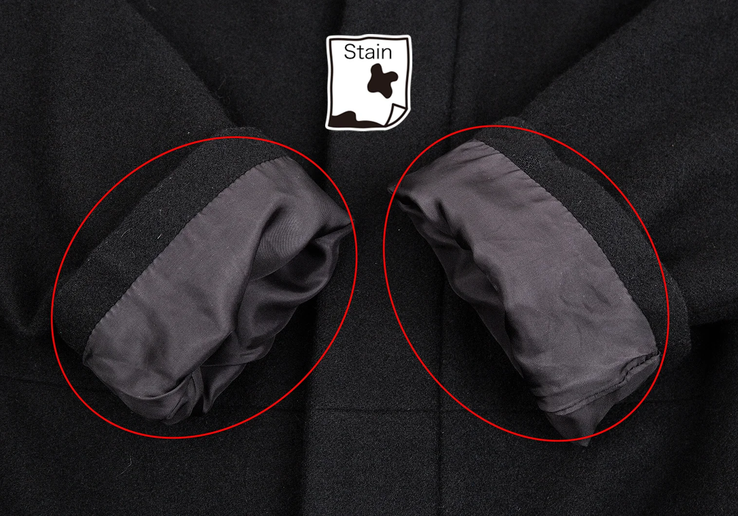 袖裏、裏地に汚れがあります(写真参照)その他目立ったシミ、汚れ、ほつれ等なくいい状態です。クリーニング済み