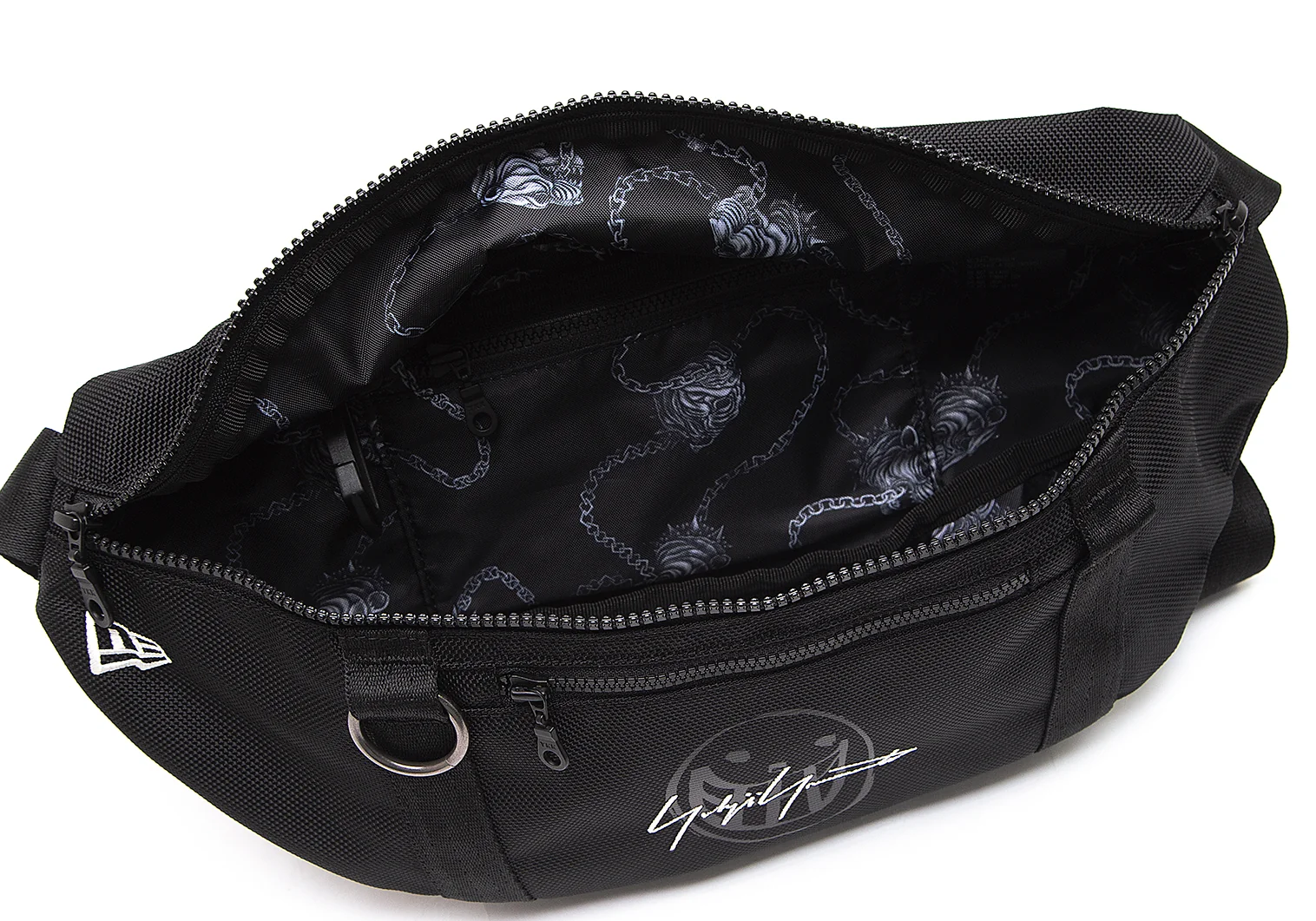 ヨウジヤマモト プールオム×ニューエラYohji Yamamoto POUR HOMME×NEWERA 裏地ブルドッグチェーンロゴ刺繍ナイロンウエストバッグ 黒
