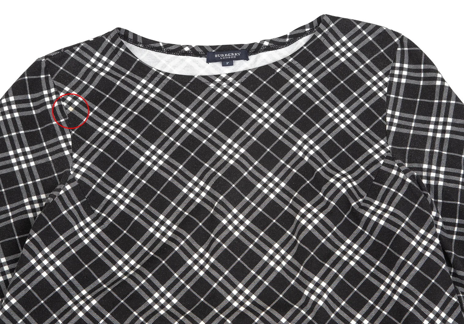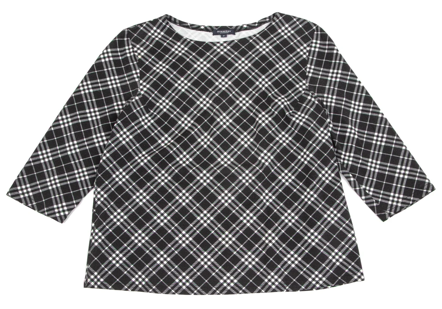 バーバリーBURBERRY LONDON バイアスチェック七分袖ストレッチカットソー 黒 黒白F