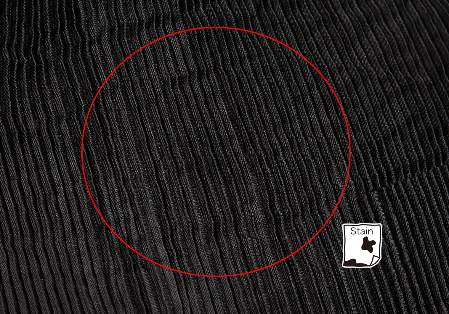 肩丈詰め跡があります。前身頃・裾に薄シミがあります(画像参照)。その他目立ったシミ、汚れ、ほつれ等なくいい状態です。クリーニング済み
