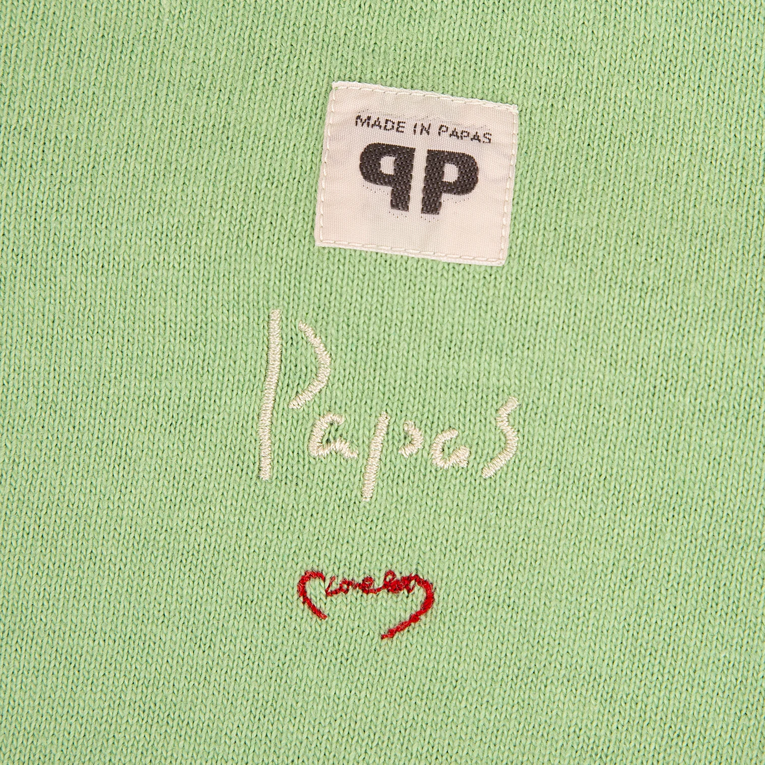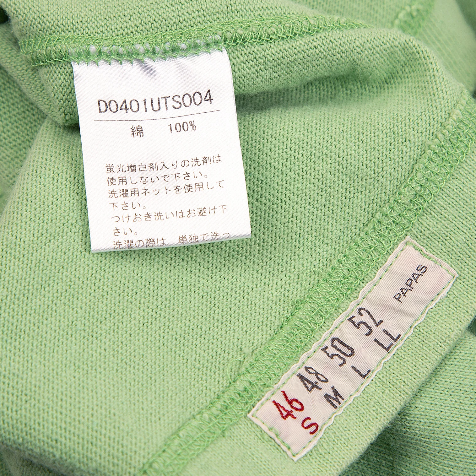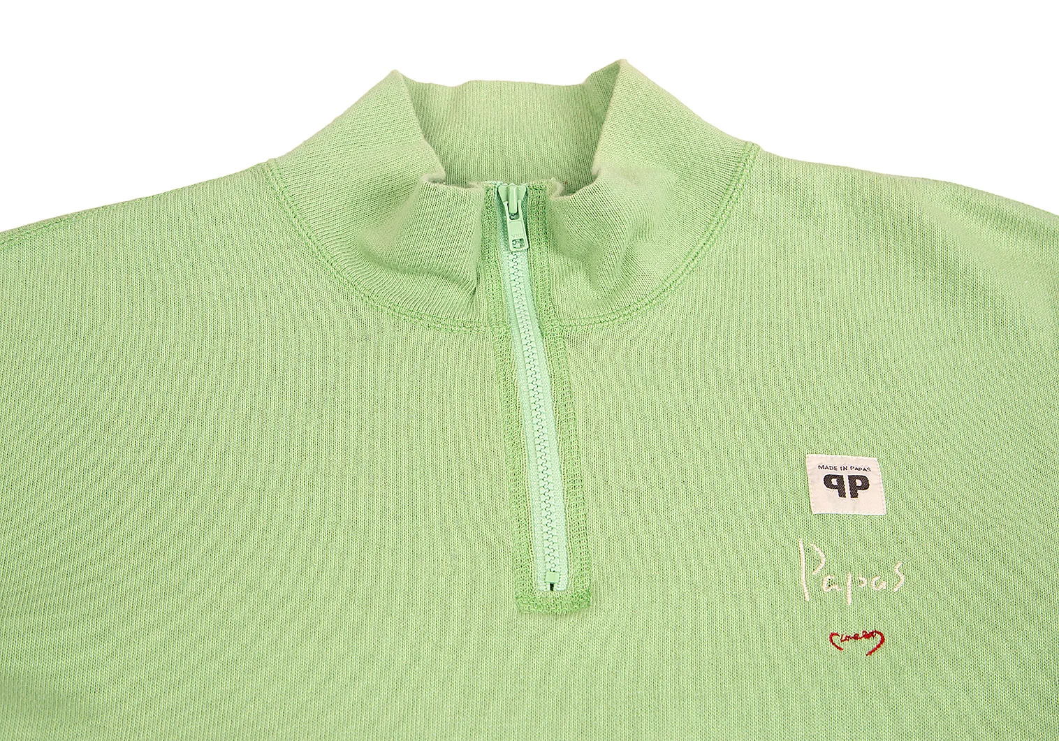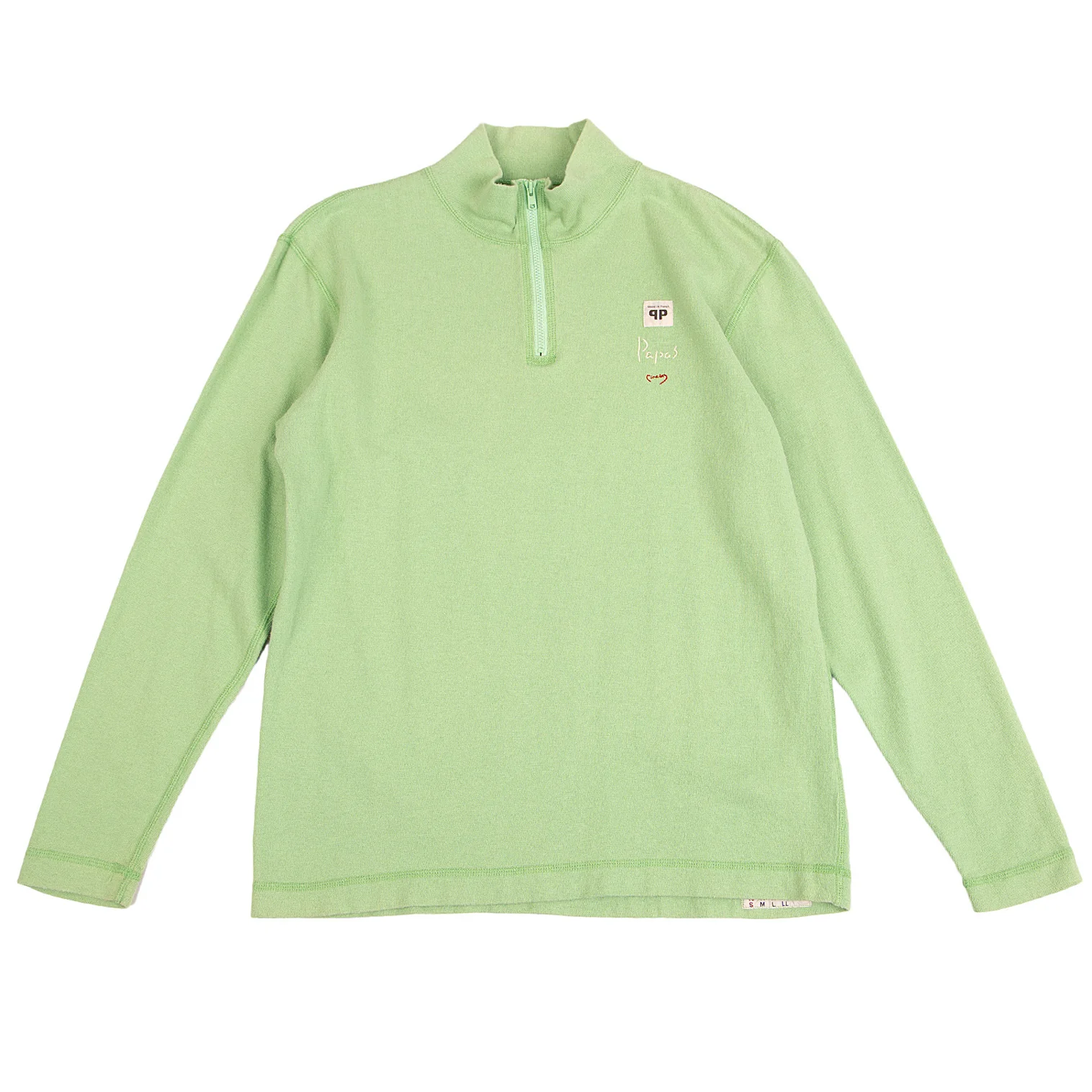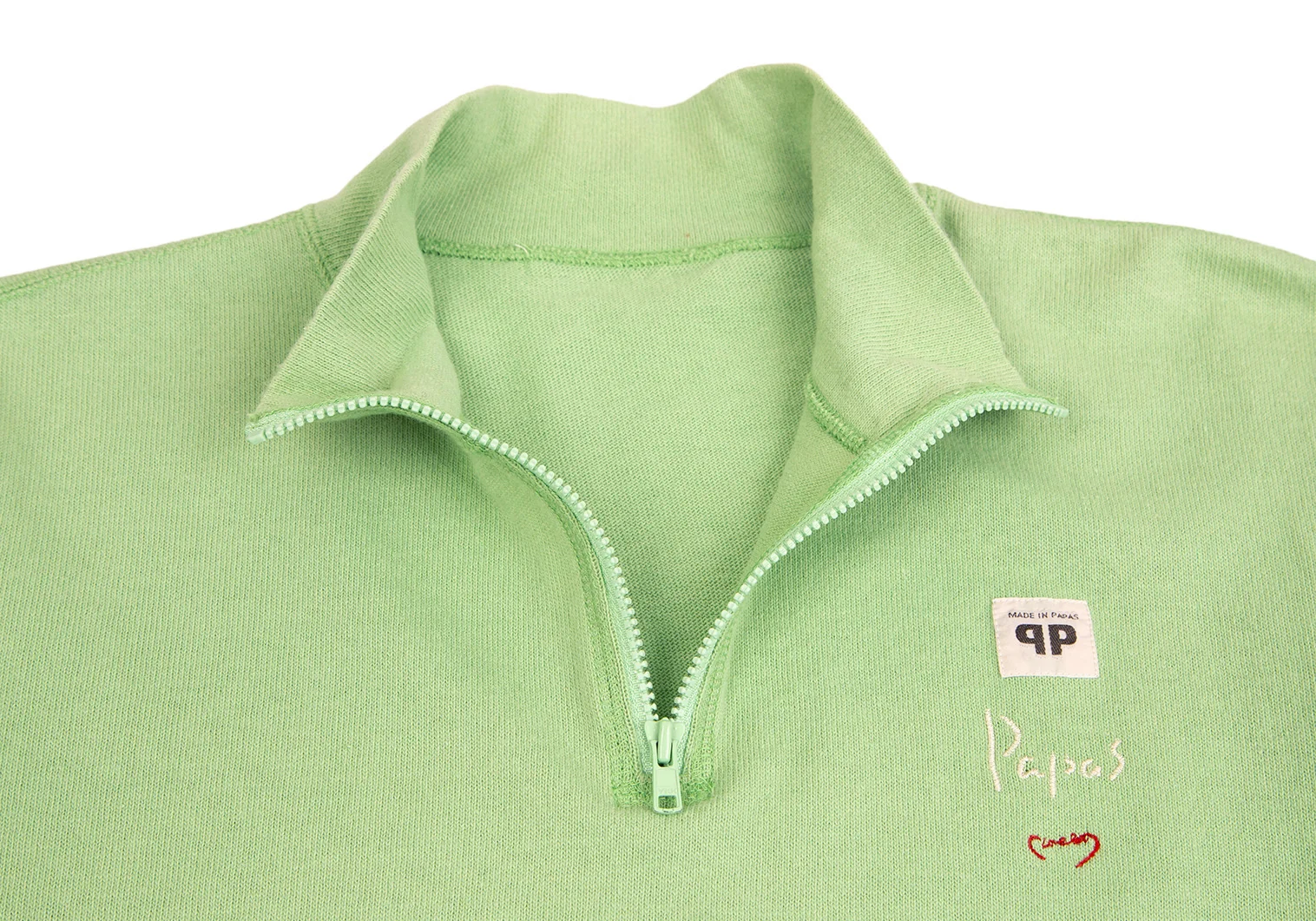パパスPapas コットンロゴ刺繍パッチハーフジップハイネックカットソー ネオングリーン46S