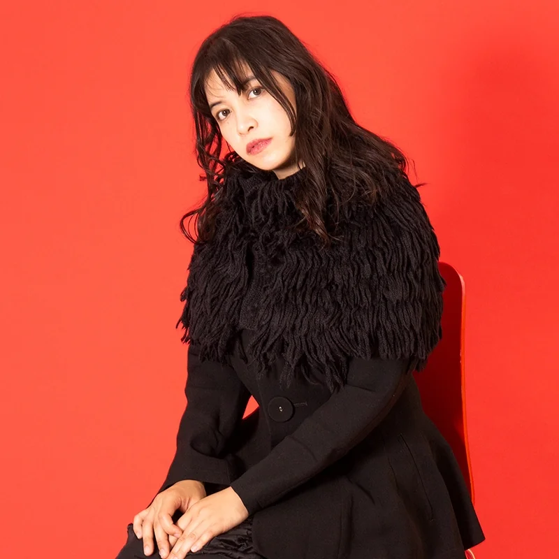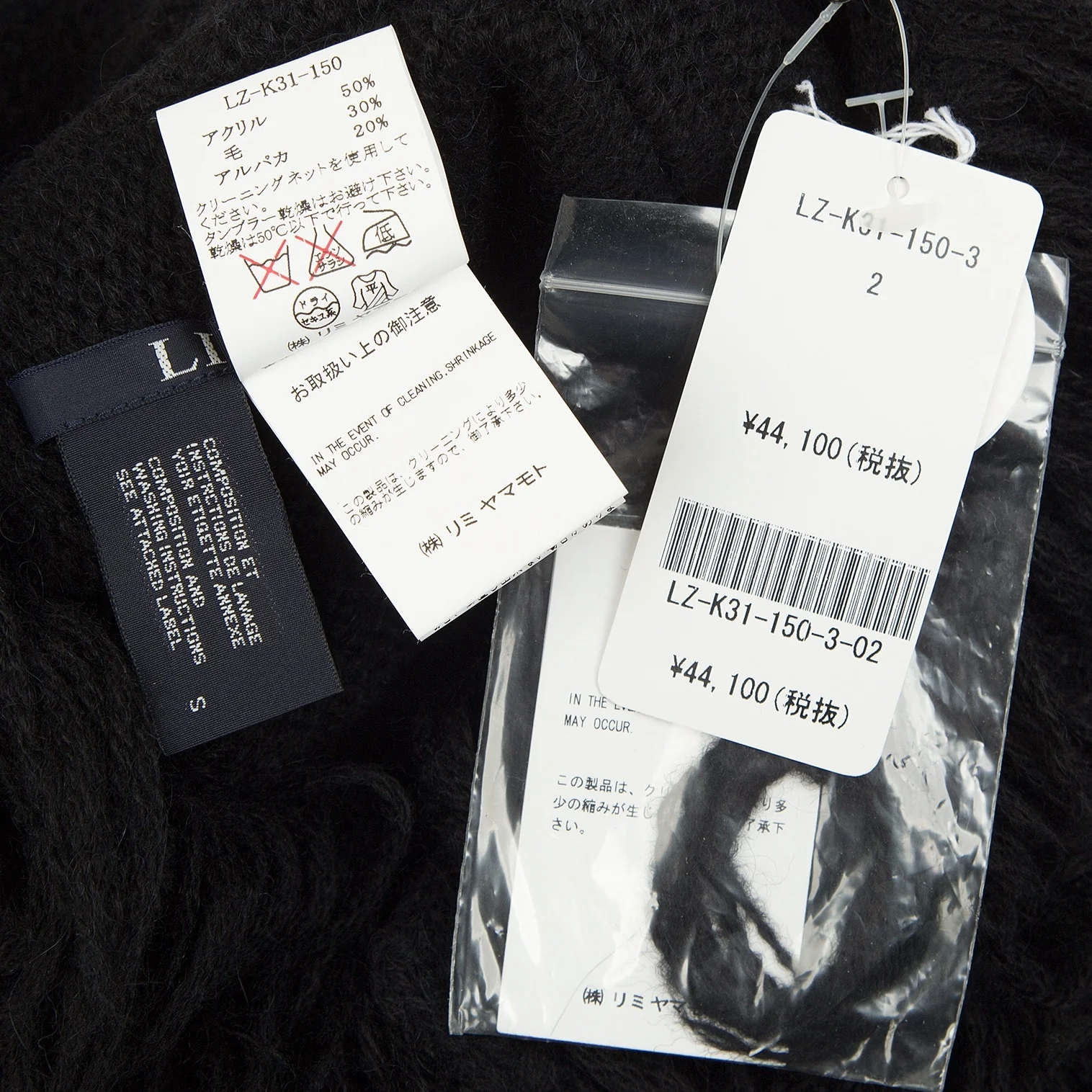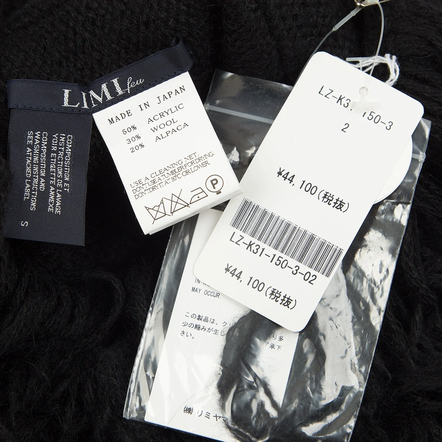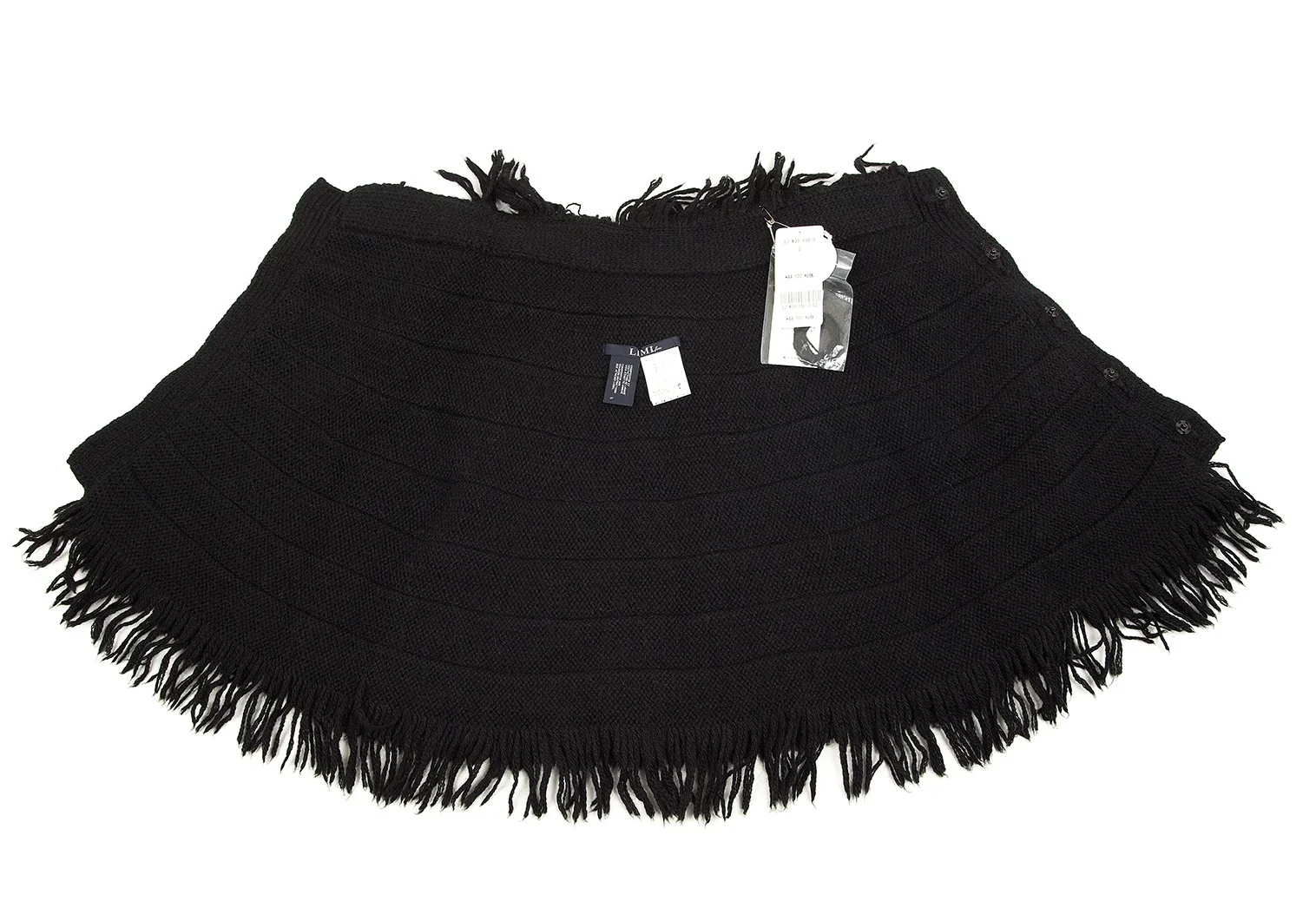 新品!リミフゥLIMI feu アルパカ混フリンジニットケープ 黒S