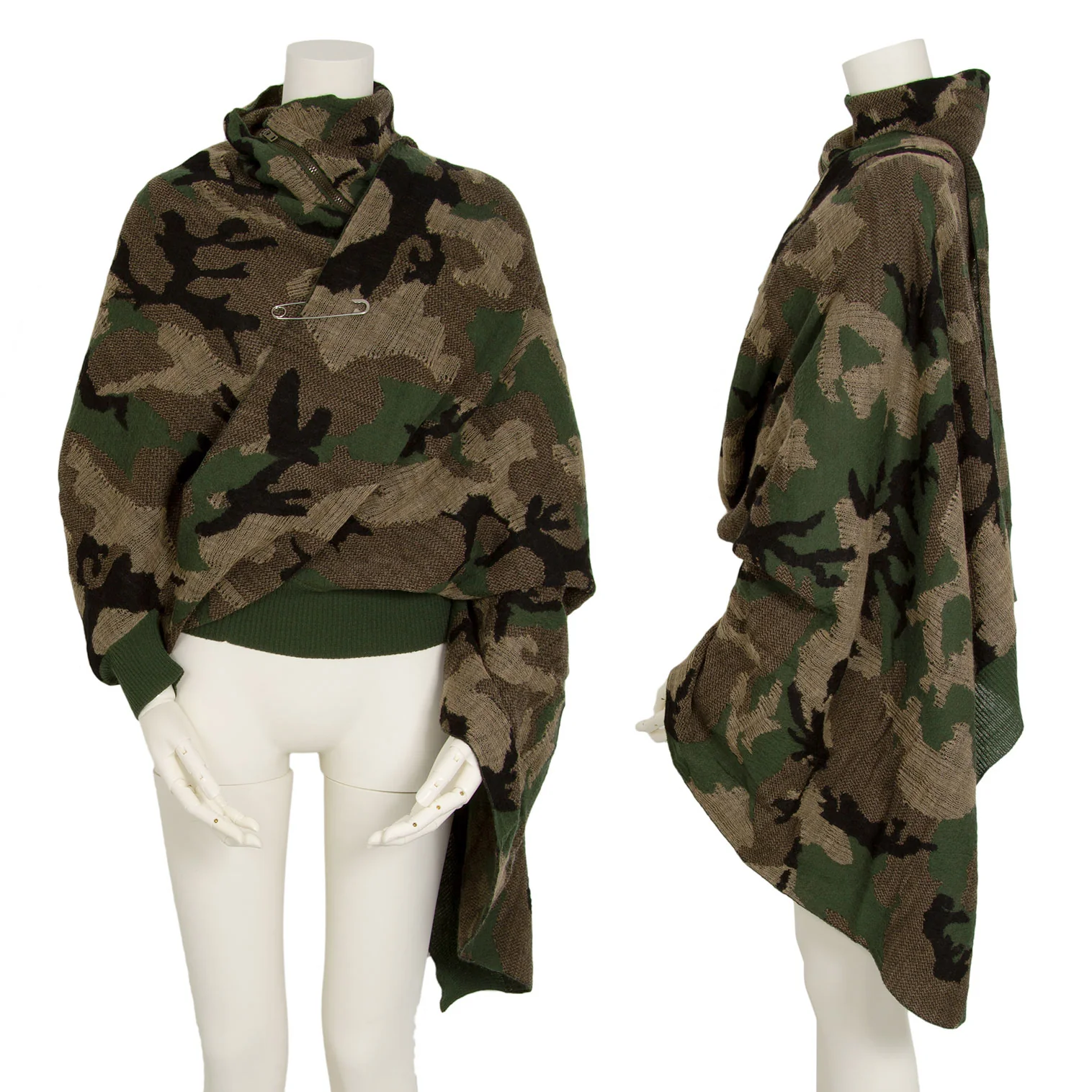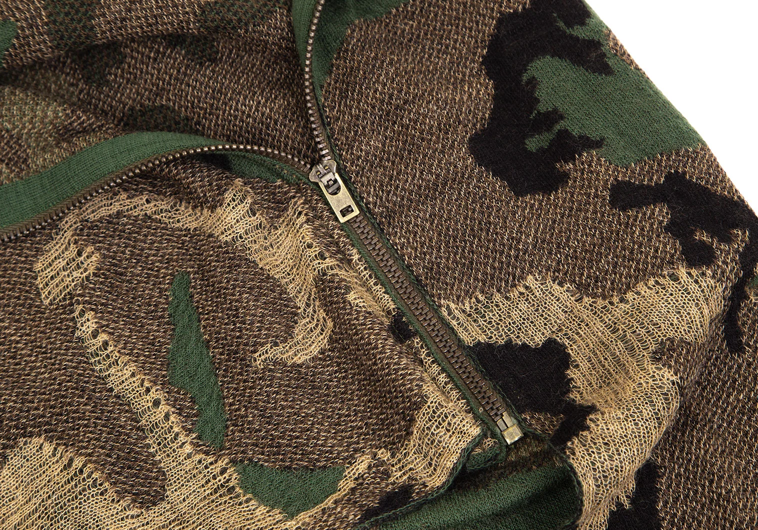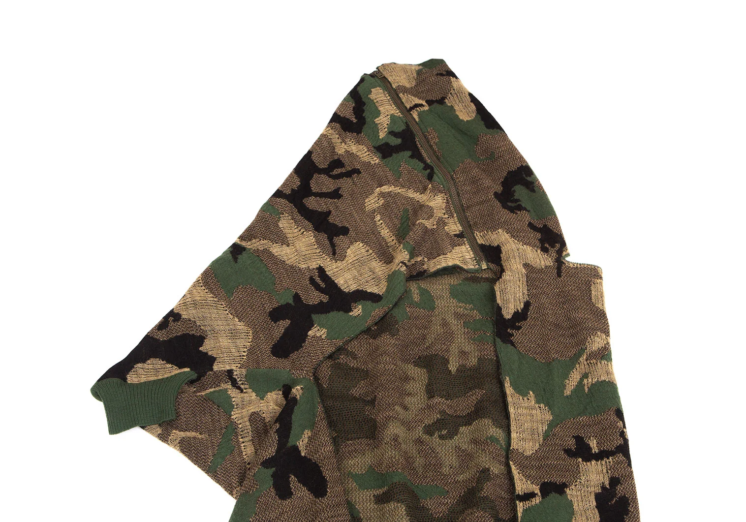 ジュンヤワタナベ コムデギャルソンJUNYA WATANABE COMME des GARCONS迷彩織ラップデザインジップニットトップス 緑黒M