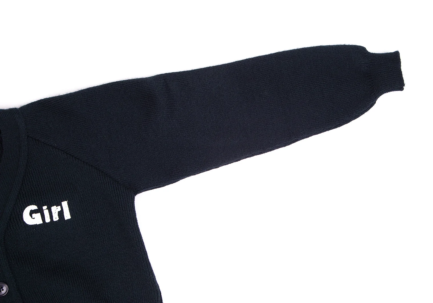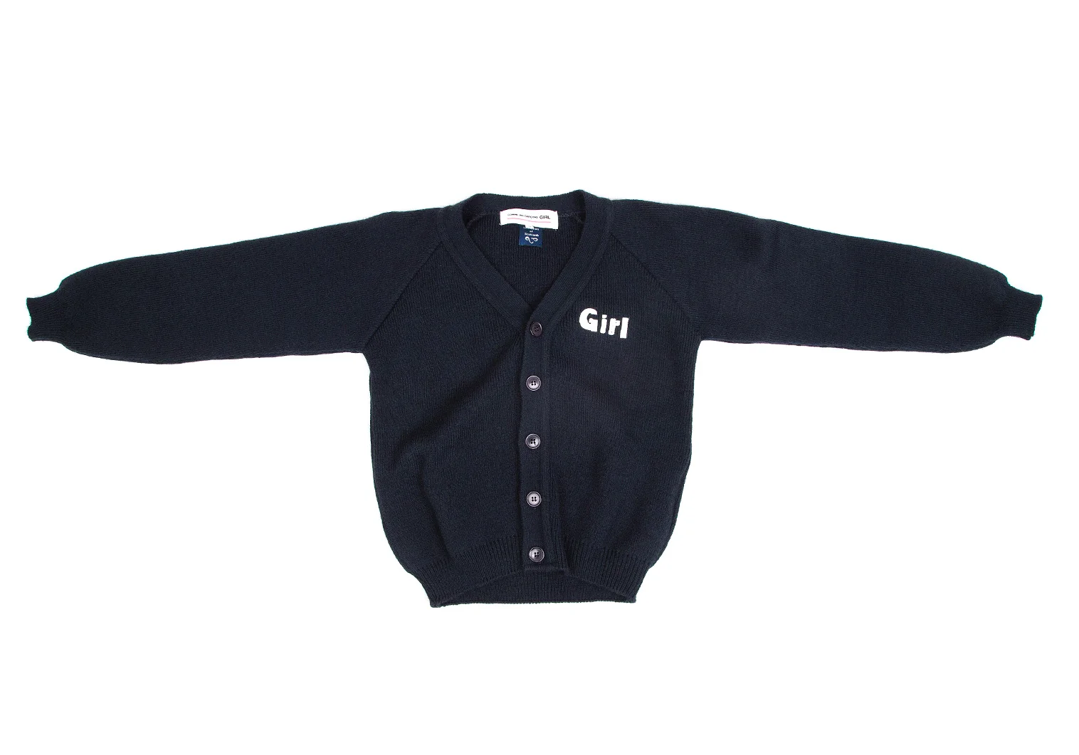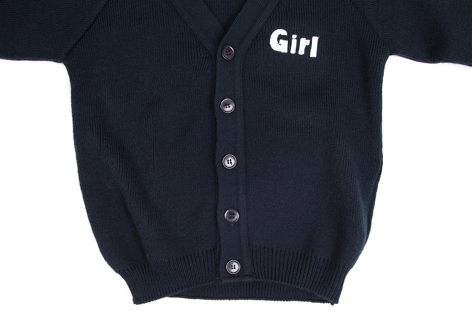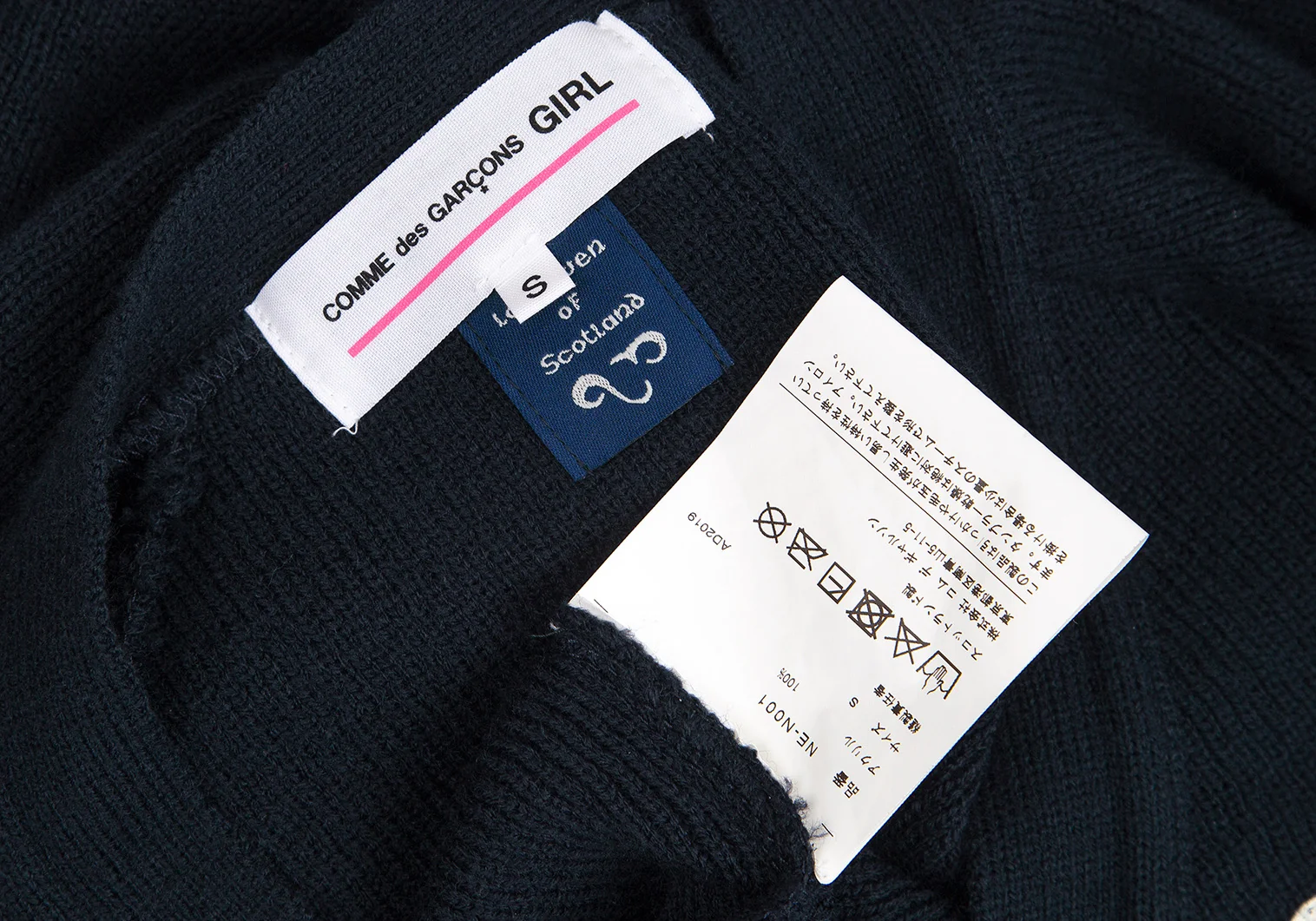 コムデギャルソン ガール×ロックエーベン オブ スコットランドCOMME des GARCONS GIRL×Lochaven Of cotland アクリルガールプリントカーディガン 紺S
