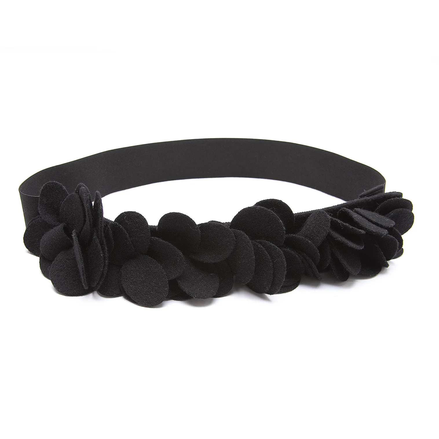 ミュベールMUVEIL フラワーコサージュゴムベルト 黒F