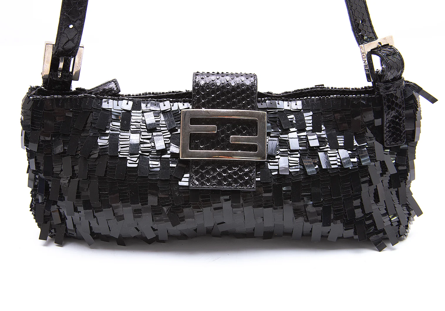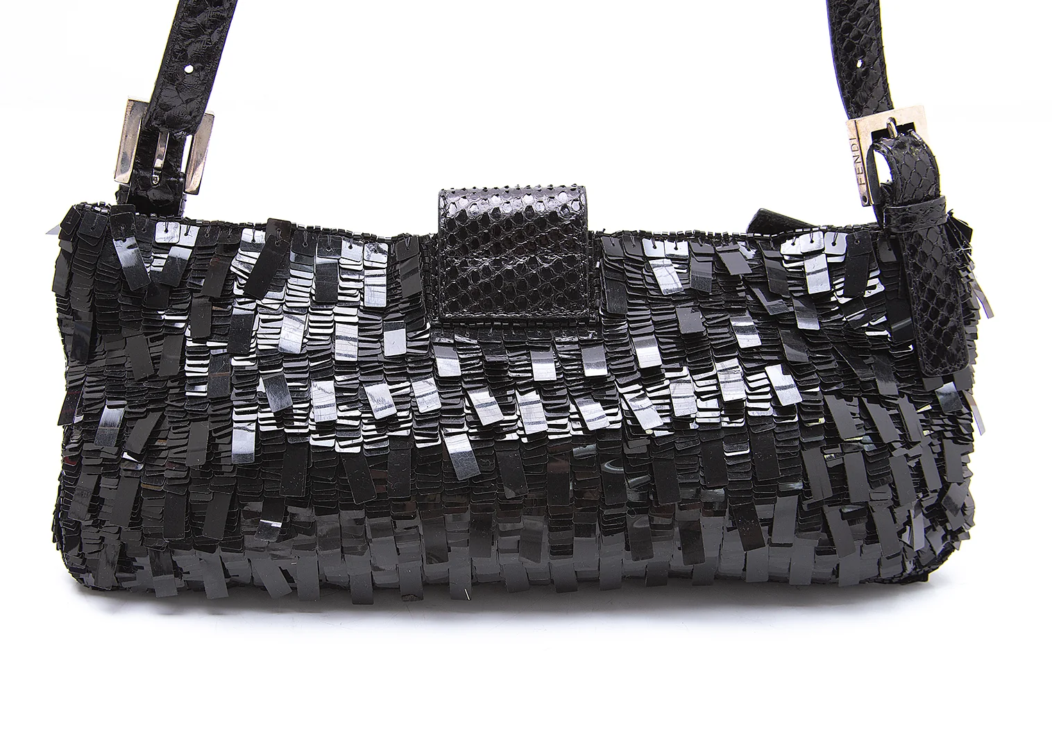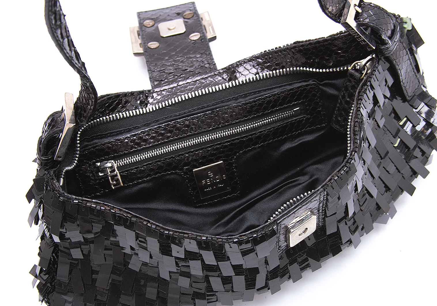 フェンディFENDI マンマバケット テープスパンコールショルダーパーティーバッグ 黒