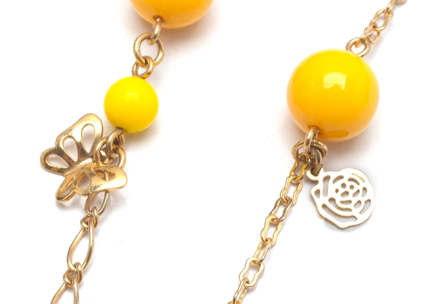 アナスイANNA SUI チェーンビーズネックレス 黄色