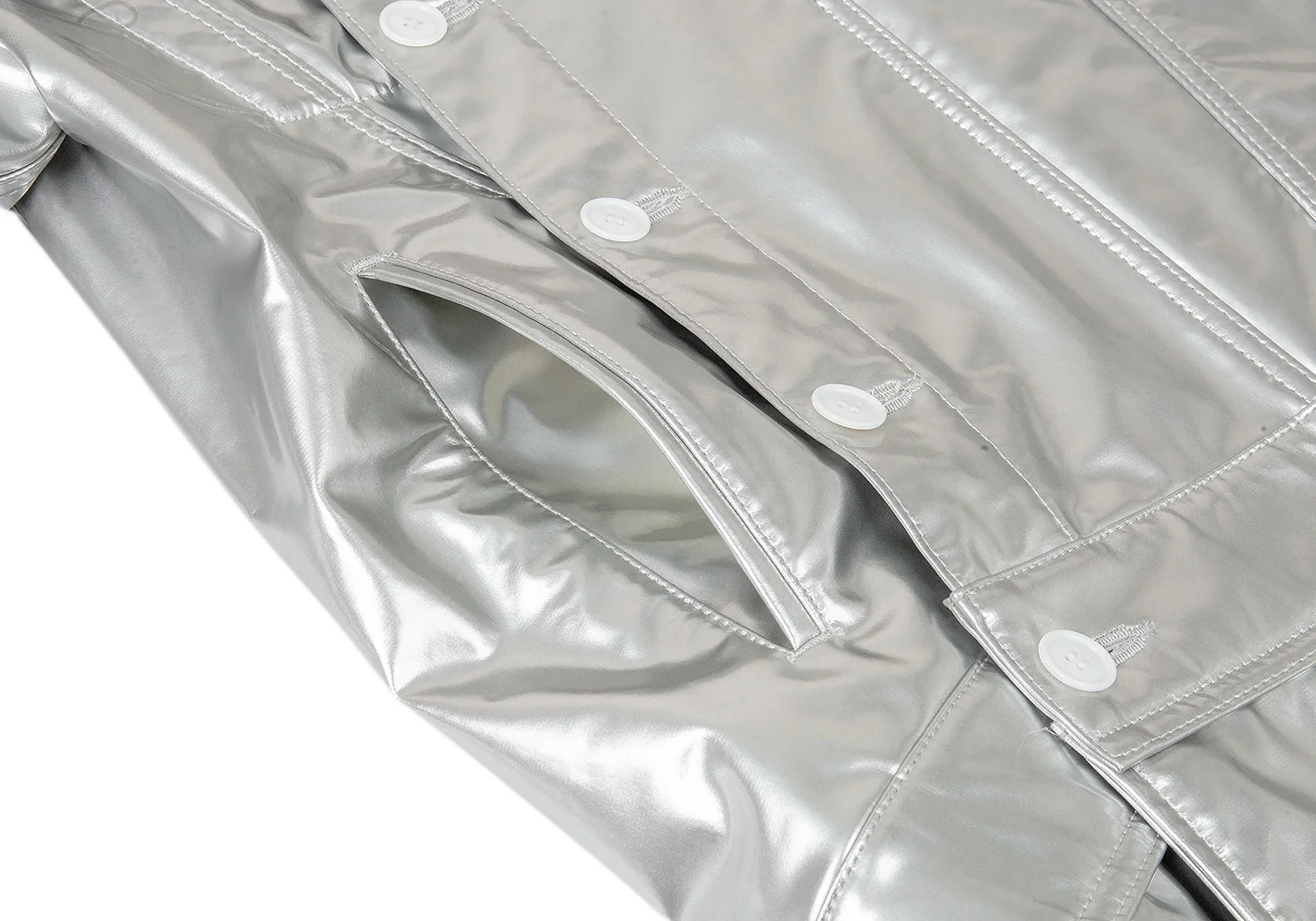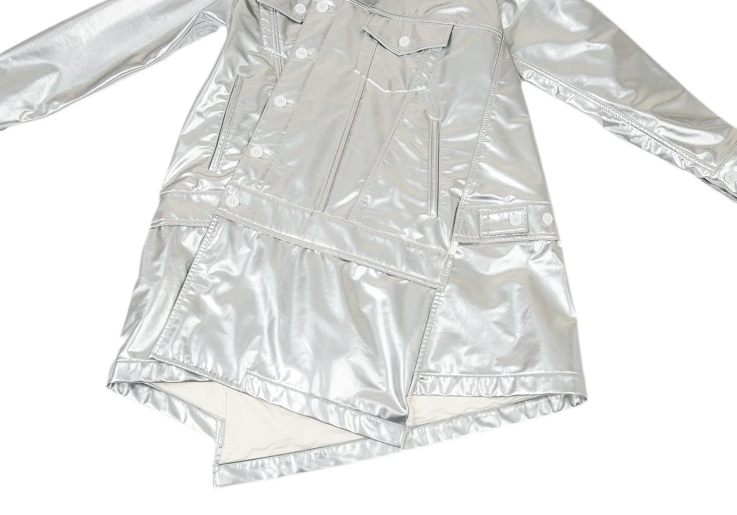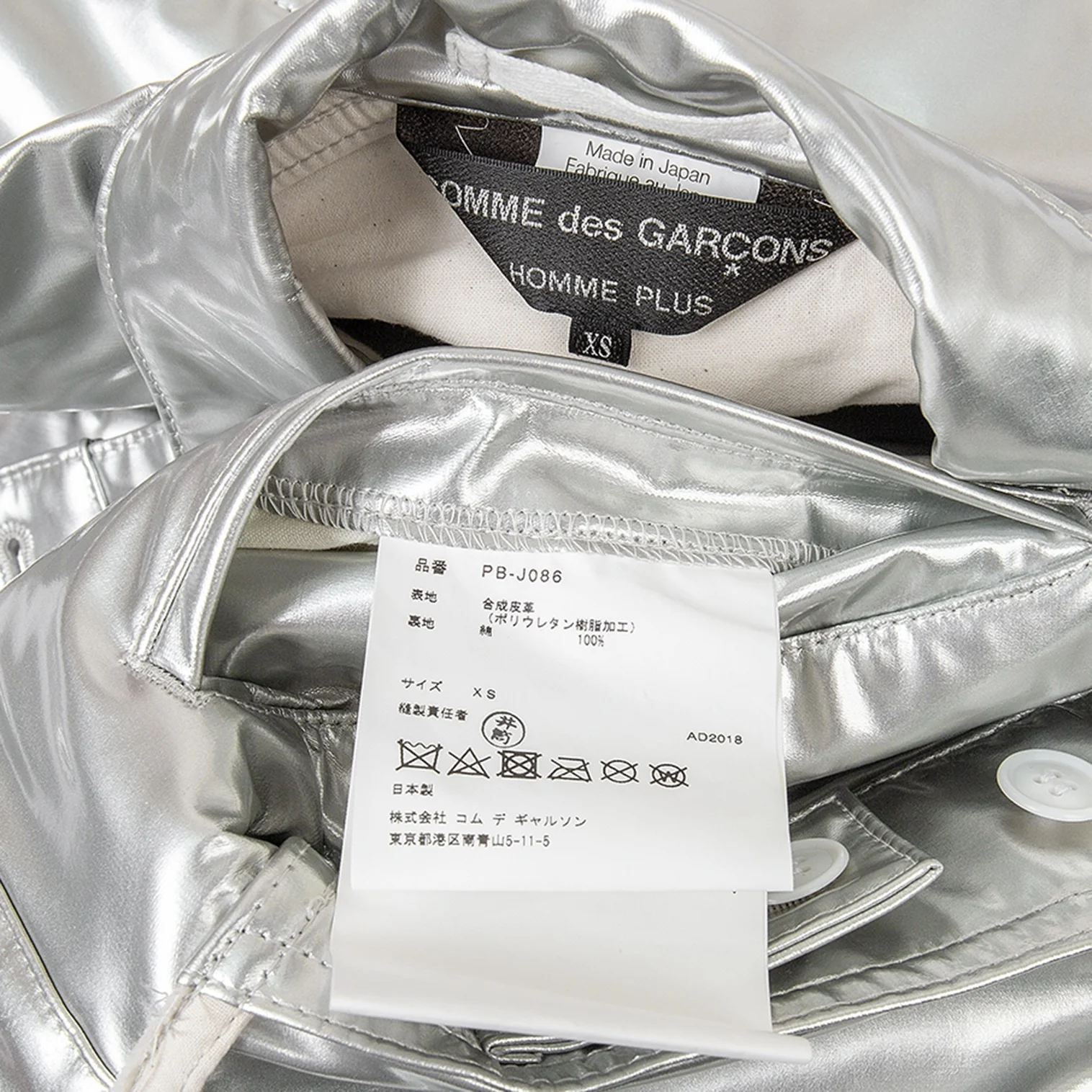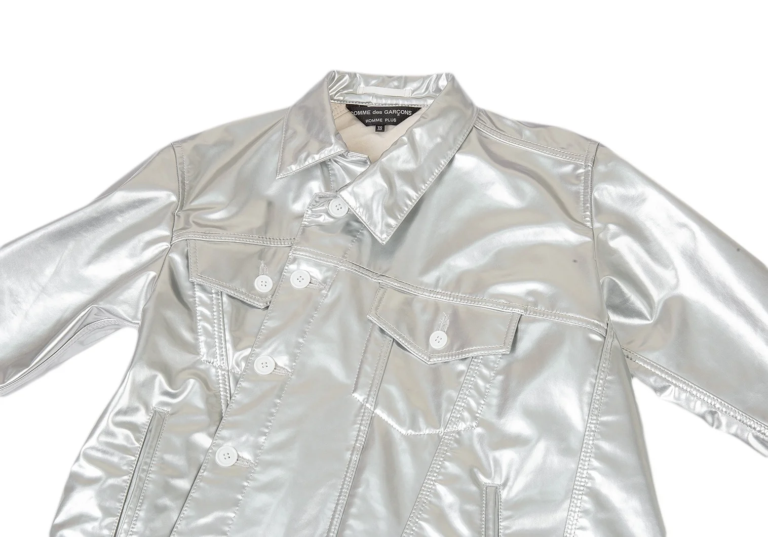 コムデギャルソン オムプリュスCOMME des GARCONS HOMME PLUS メタリックフェイクレザー斜行切替トラッカージャケット シルバーXS